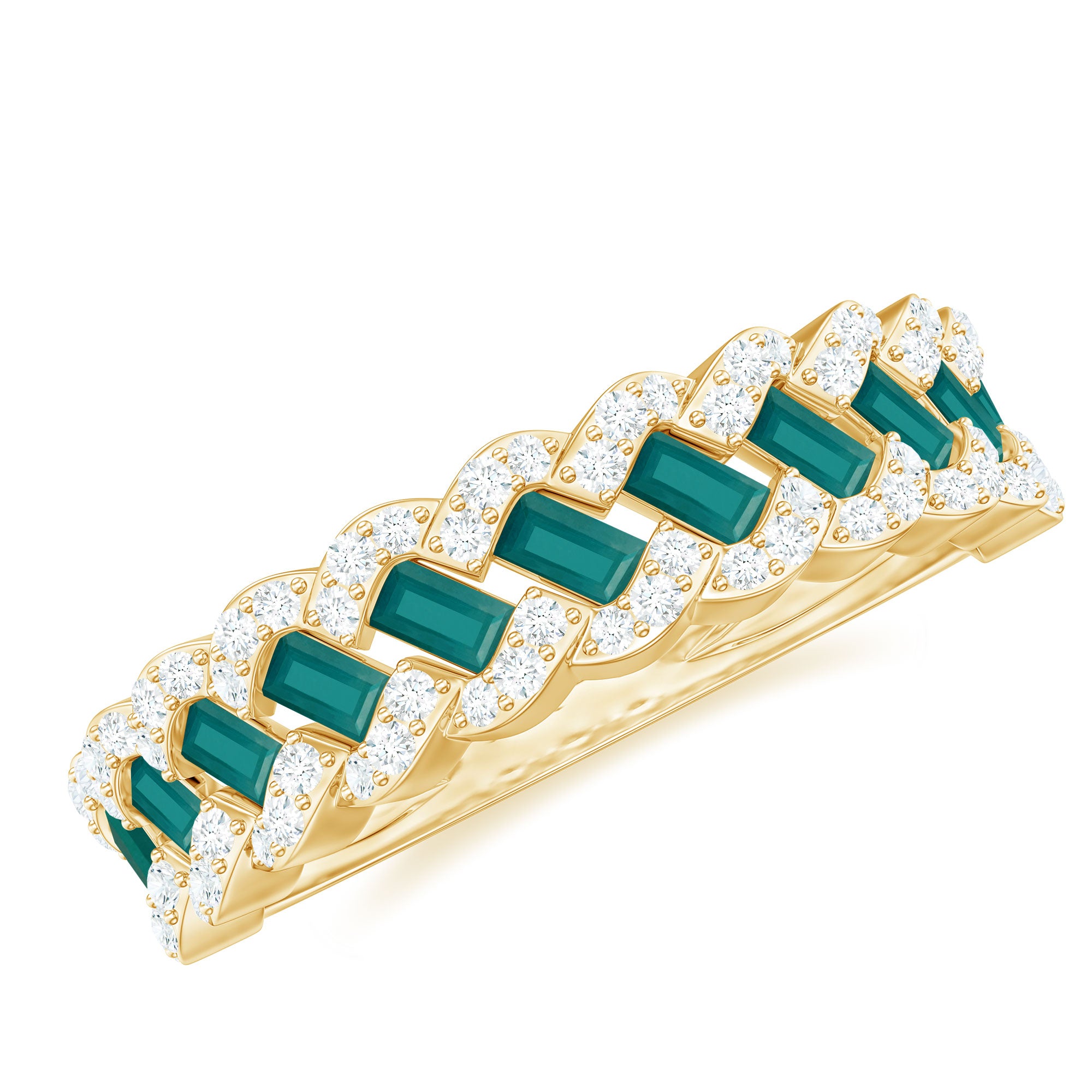 Baguette Emerald and Diamond Braided Half Eternity Band Ring