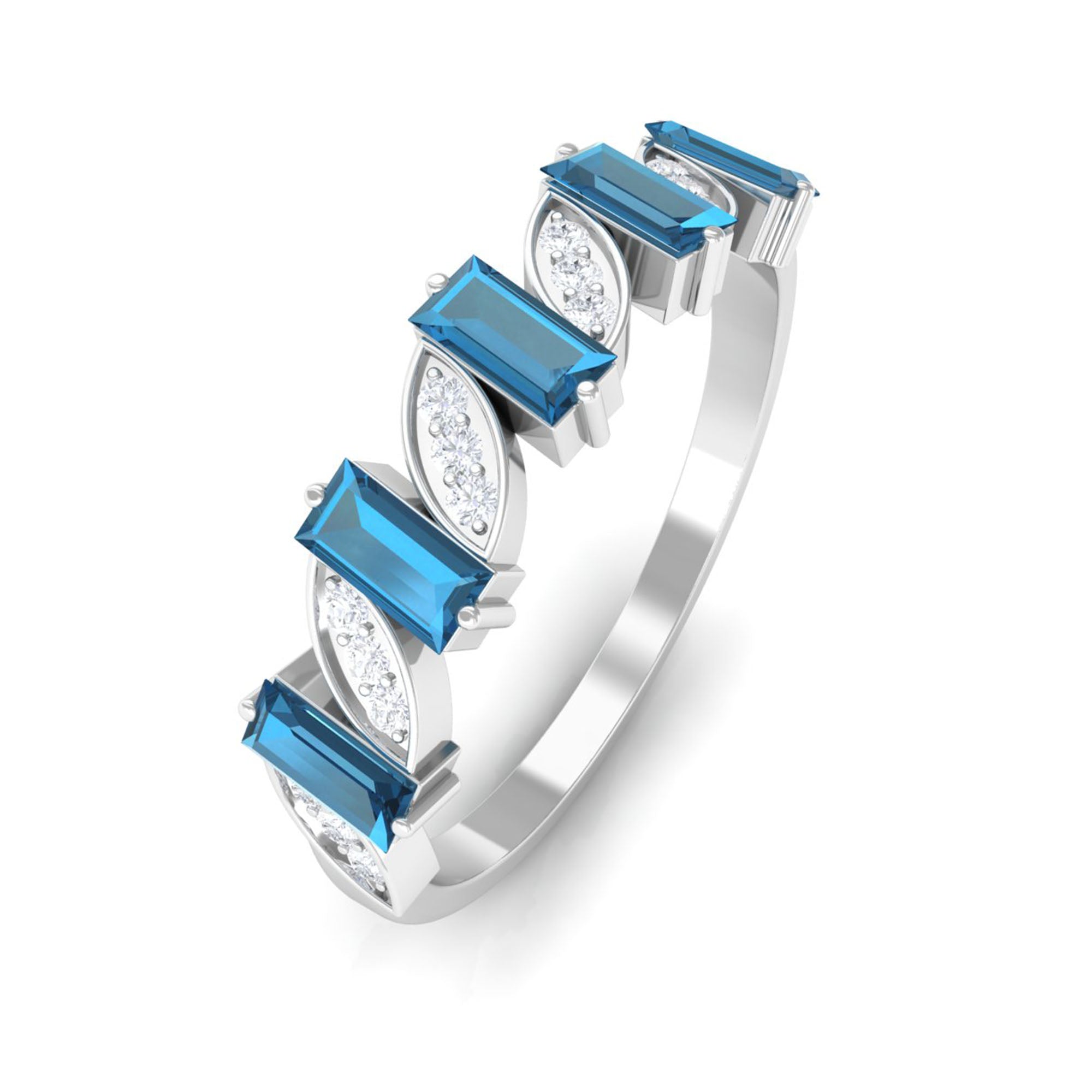 Baguette London Blue Topaz and Diamond Designer Eternity Band