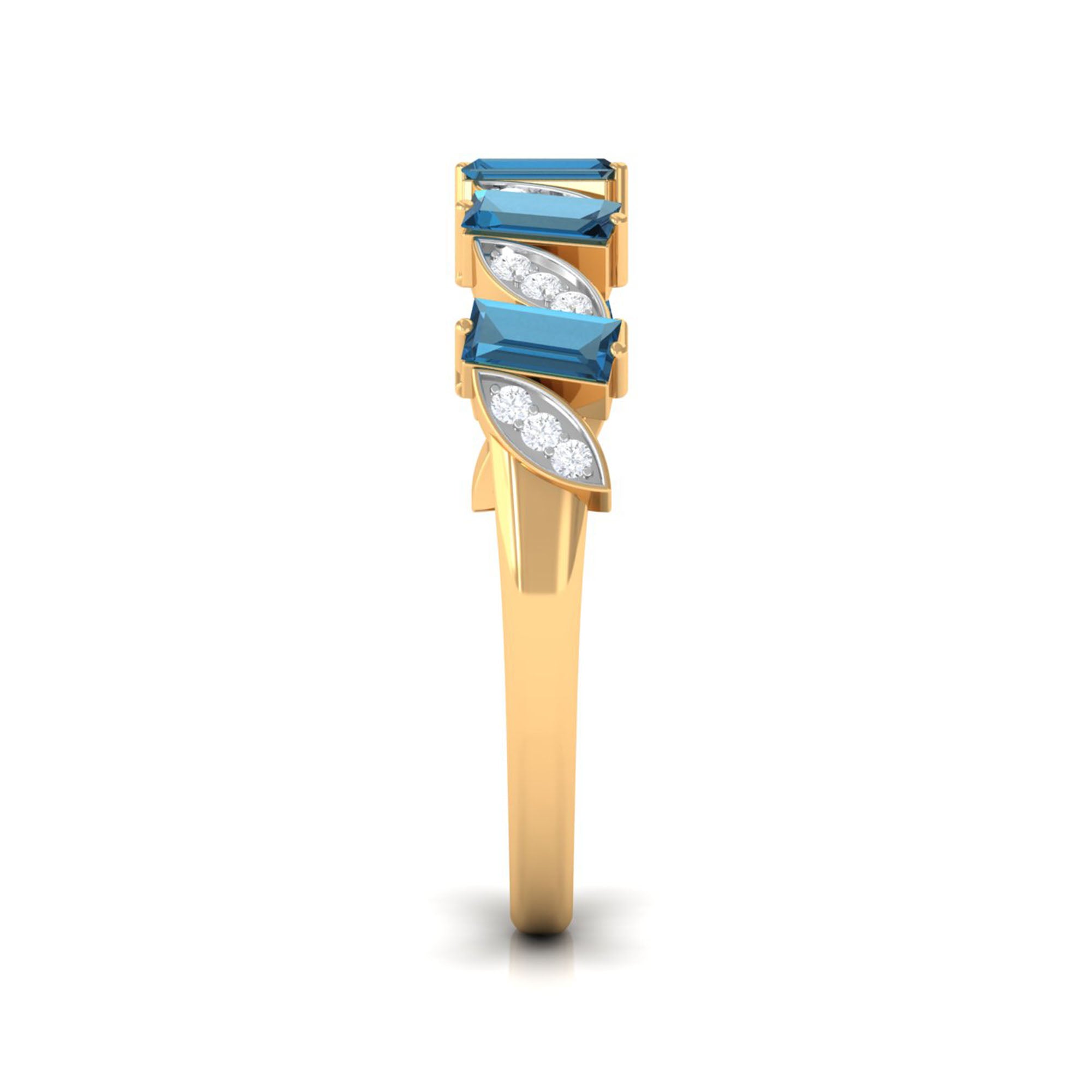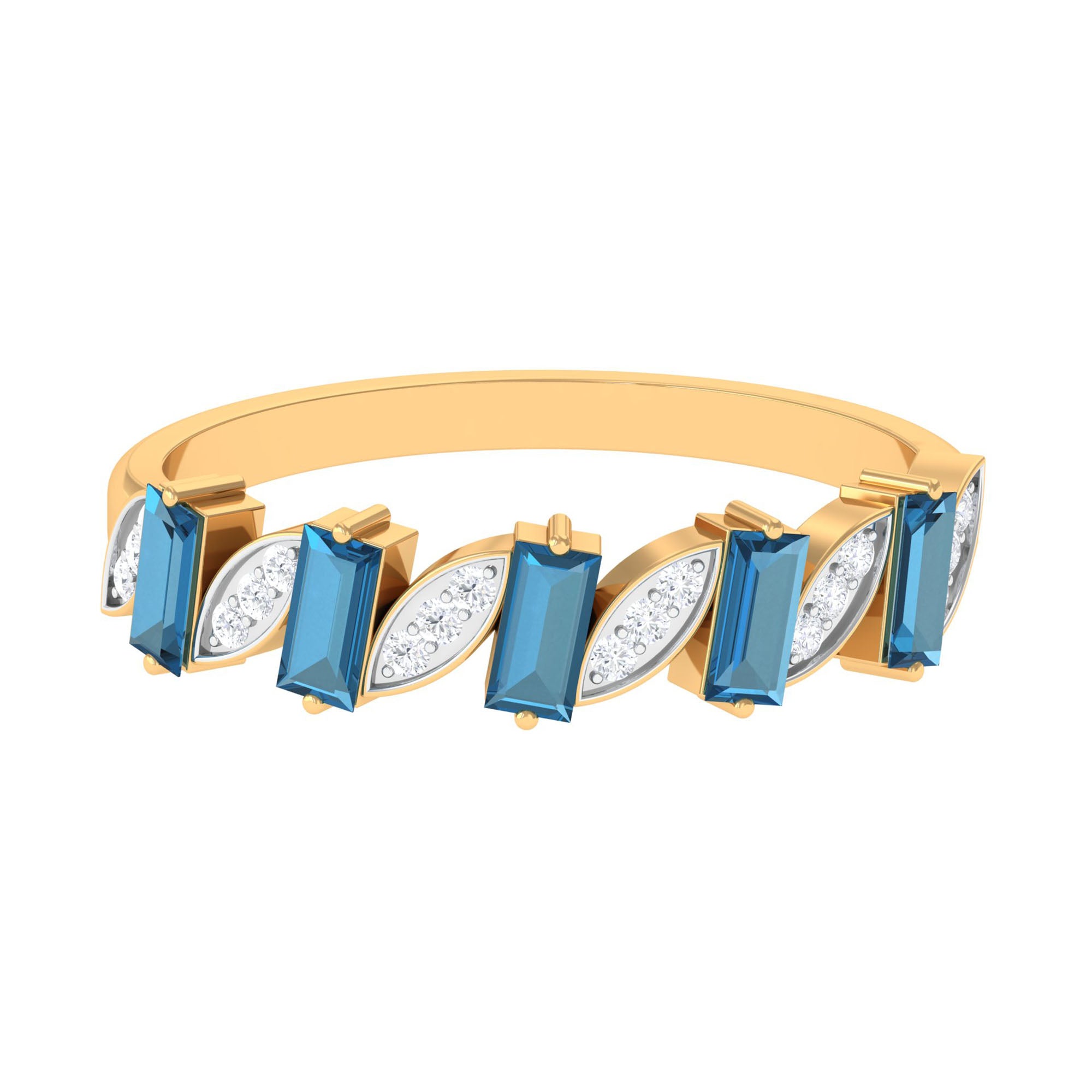 Enhance your daily style with a touch of sophistication through this exquisitely designed Blue Topaz Eternity Ring. Crafted to be both understated and striking, it showcases a refined arrangement of baguette cut london blue topaz and round diamond stones (set in a marquise frame) in an alternating pattern. Each stone is meticulously set in a secure prong setting, providing the Wide Eternity Ring with a sleek and polished appearance. The striking contrast between the bold blue topaz and the shimmering diamonds imparts a timeless and distinctive quality. This Half Eternity Band is an excellent option for stacking or wearing on its own. It offers a comfortable fit on the finger and complements both casual and formal attire. Whether you are going to work or attending a special event, this London Blue Topaz Ring brings just the right touch of elegance. It also serves as a thoughtful gift, particularly for individuals born in a December month. Whether you are treating yourself or searching for a meaningful present, this ring is a beautiful way to honor style, strength, and cherished moments. Designed with care and precision by Rosec Jewels, it is a piece to cherish every day.