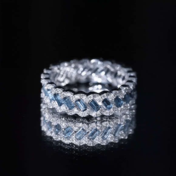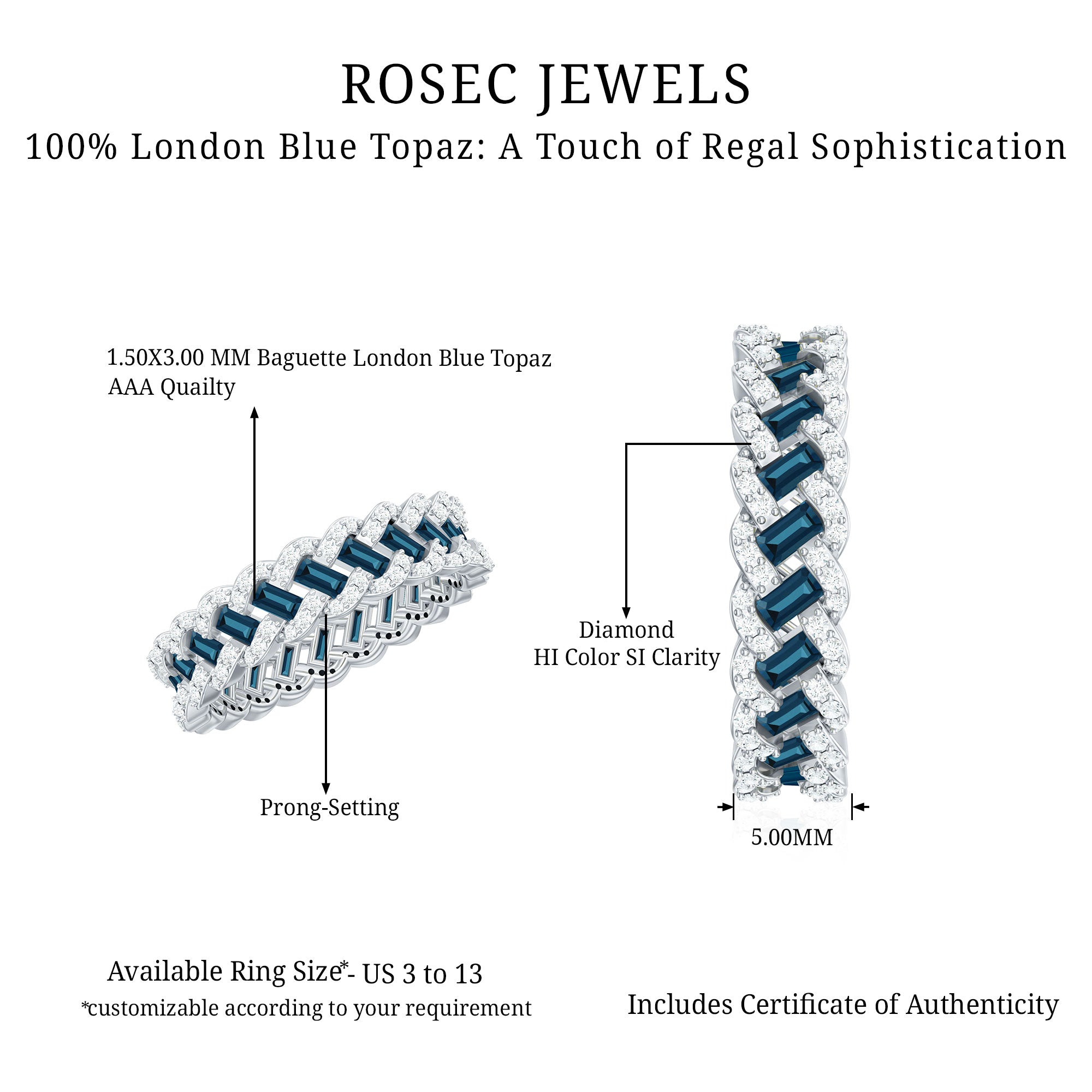 Baguette London Blue Topaz Full Eternity Band with Diamond