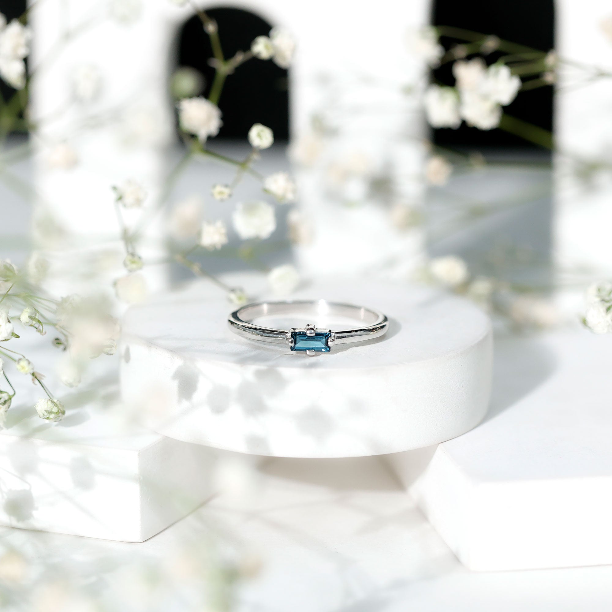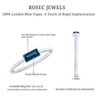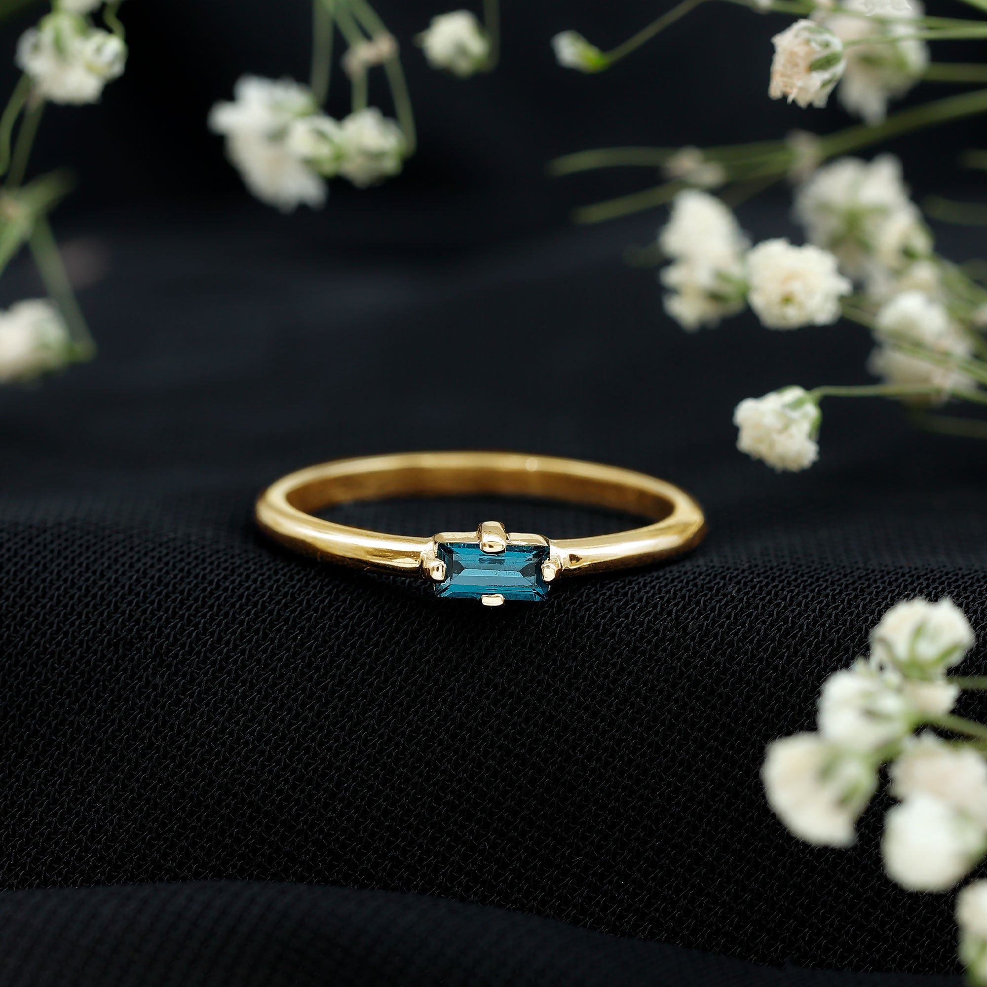 This elegant London Blue Topaz Ring is a remarkable piece that seamlessly merges modern design with classic sophistication. The eye-catching Baguette Cut London Blue Topaz is set in a Prong Setting, highlighting its rich, deep blue color and radiating an aura of grace. This Promise Ring for Her showcases a vibrant blue shade that imparts a feeling of tranquility and elegance. It amplifies the overall brilliance while ensuring that the exquisite AAA Quality Blue Topaz remains the focal point. Whether worn solo for a sleek appearance or stacked with other rings for a striking effect, this December Birthstone Ring is ideal for any event. This elegant London Blue Topaz Promise Ring serves as a symbol of profound commitment and enduring love, designed to embody the essence of a significant promise. The sleek and understated band enhances the ring’s appeal, making it suitable for everyday wear. Its minimalist design renders the Baguette Cut Blue Topaz Ring adaptable enough to be worn on any occasion, whether celebrating a special milestone, making a promise, or simply adding a touch of sophistication to daily life. Offered in a range of sizes to guarantee the ideal fit, this Dainty Promise Ring comes in a chic jewelry box, ready for gifting or safekeeping. This purchase includes a certificate of gemstone quality, ensuring confidence in the authenticity and craftsmanship of the piece. Its timeless elegance and considerate design make it a significant addition to any jewelry collection, symbolizing a bond that endures forever.