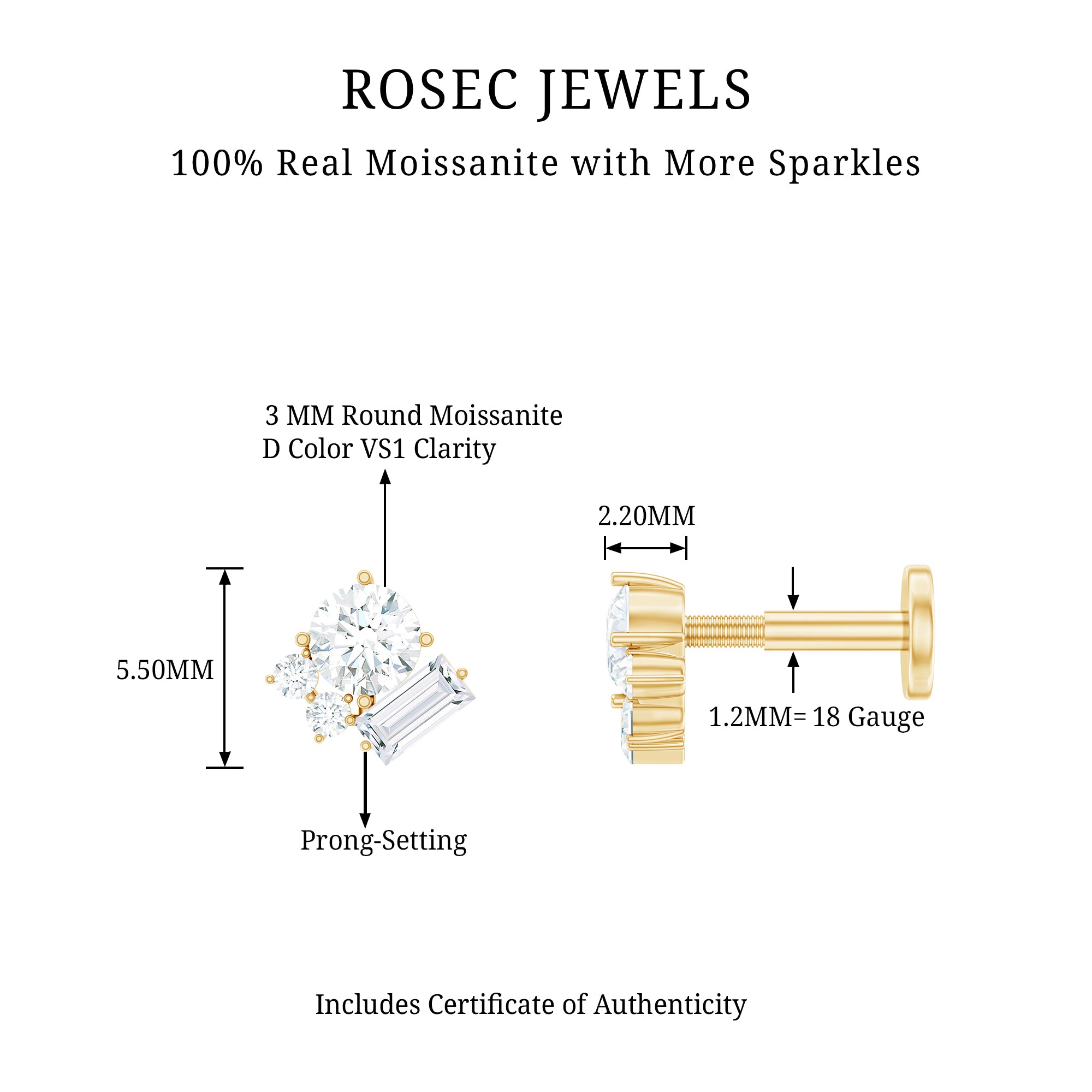 Grab this alluring Moissanite Cluster Tragus Earring embellished with Baguette and Round Cut Moissanite Cluster secured in Prong Setting. You can style this Moissanite Earring on your Helix, Cartilage, Tragus, Conch, or Upper Lobe Piercing. Simple yet elegant, this Piercing Earring is a perfect gift for your loved one.