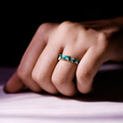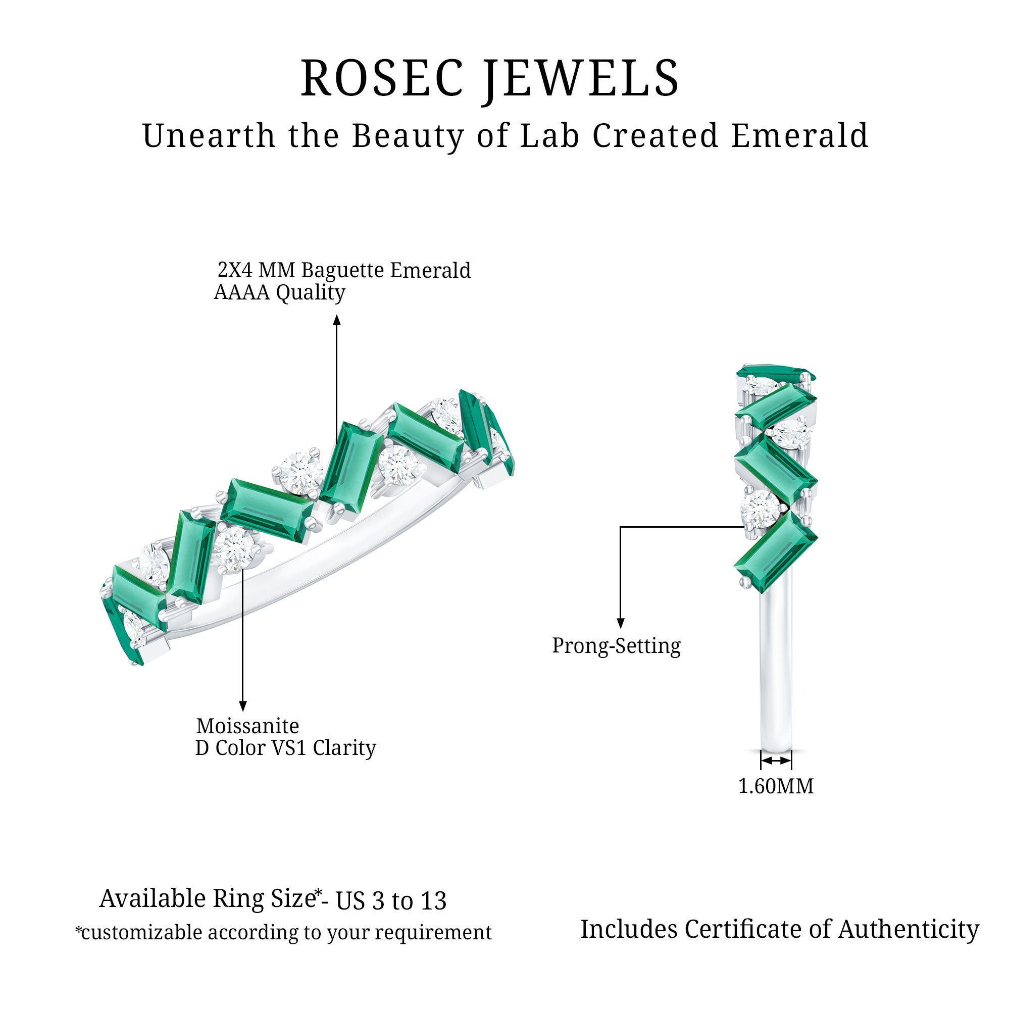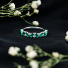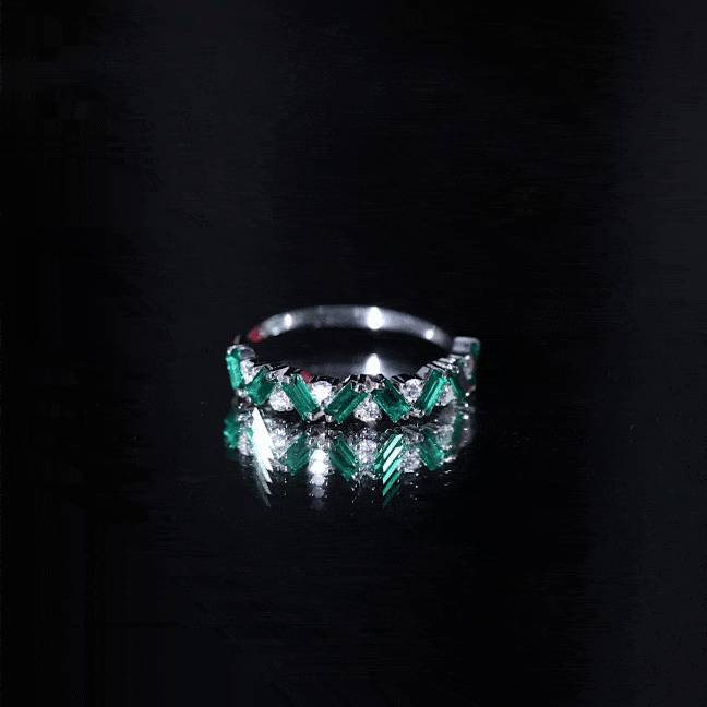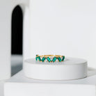 Enchant beholders with the mesmerizing allure of this Lab Grown Emerald Wedding Band adorning your hand. It showcases an alluring design, featuring meticulously arranged Baguette shape Lab Created Emerald Gemstones and round shape moissanite stones in a captivating zigzag pattern, securely held by prong setting. Let this Half Eternity Ring serve as a symbol of your deep affection and appreciation for your cherished one, allowing its elegant design to express your feelings in a unique and enchanting way. Perfect as a wedding band, anniversary ring, or a meaningful gift, this Emerald Eternity Band is a true symbol of devotion and elegance. It can be worn alone as a statement piece or paired with an engagement ring for a complete and sophisticated bridal set. With its rich color and graceful detailing, this Zig Zag Wedding Band is not only a piece of fine jewelry but also a reminder of enduring love and cherished memories that shine bright for years to come.