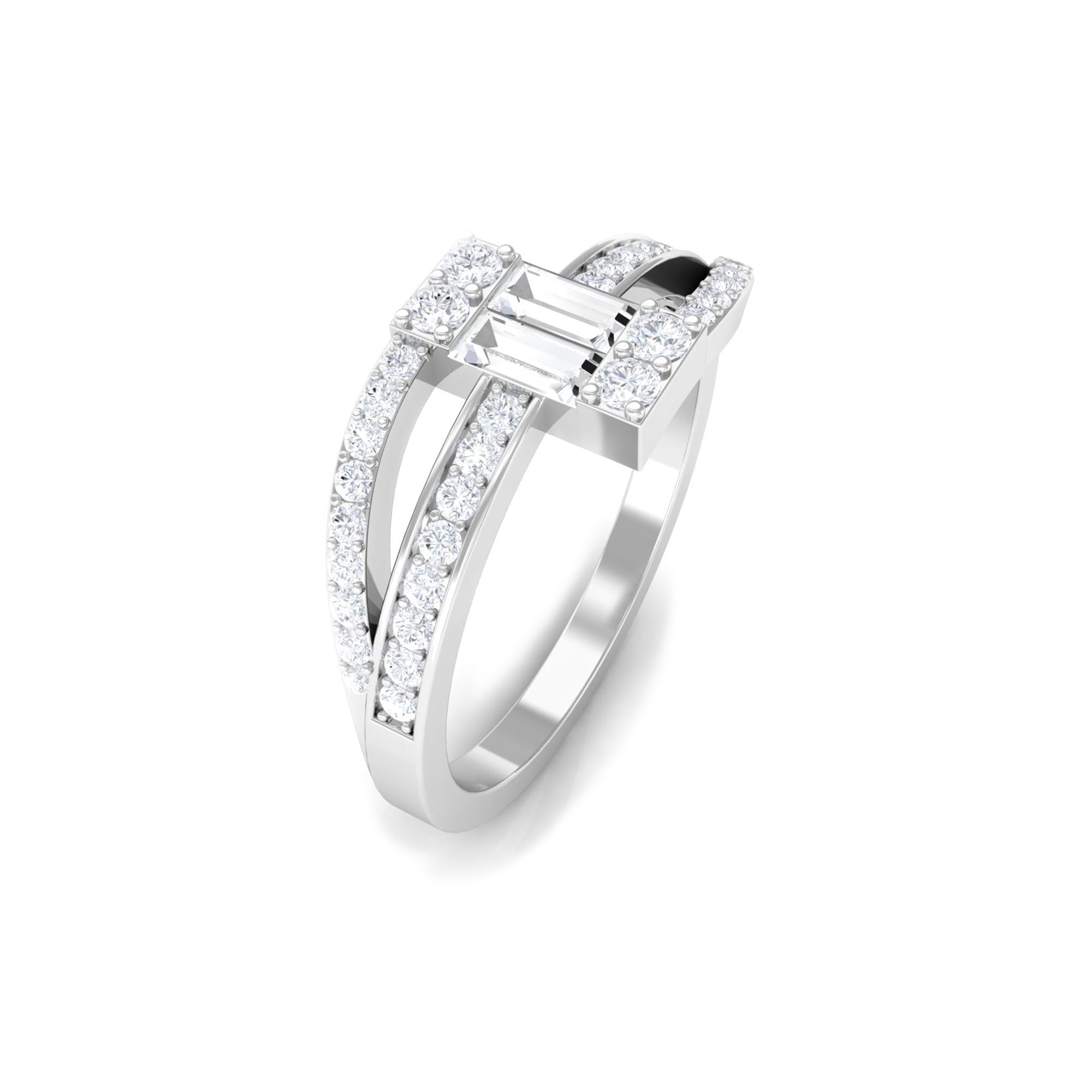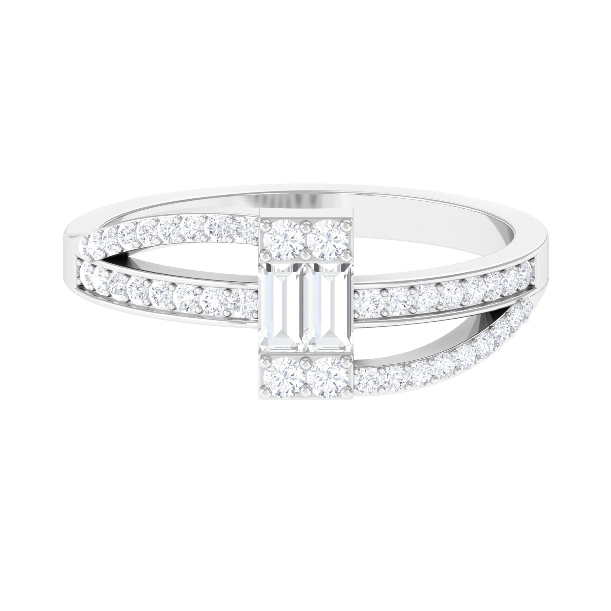 Baguette Shape Natural Diamond Bypass Engagement Ring