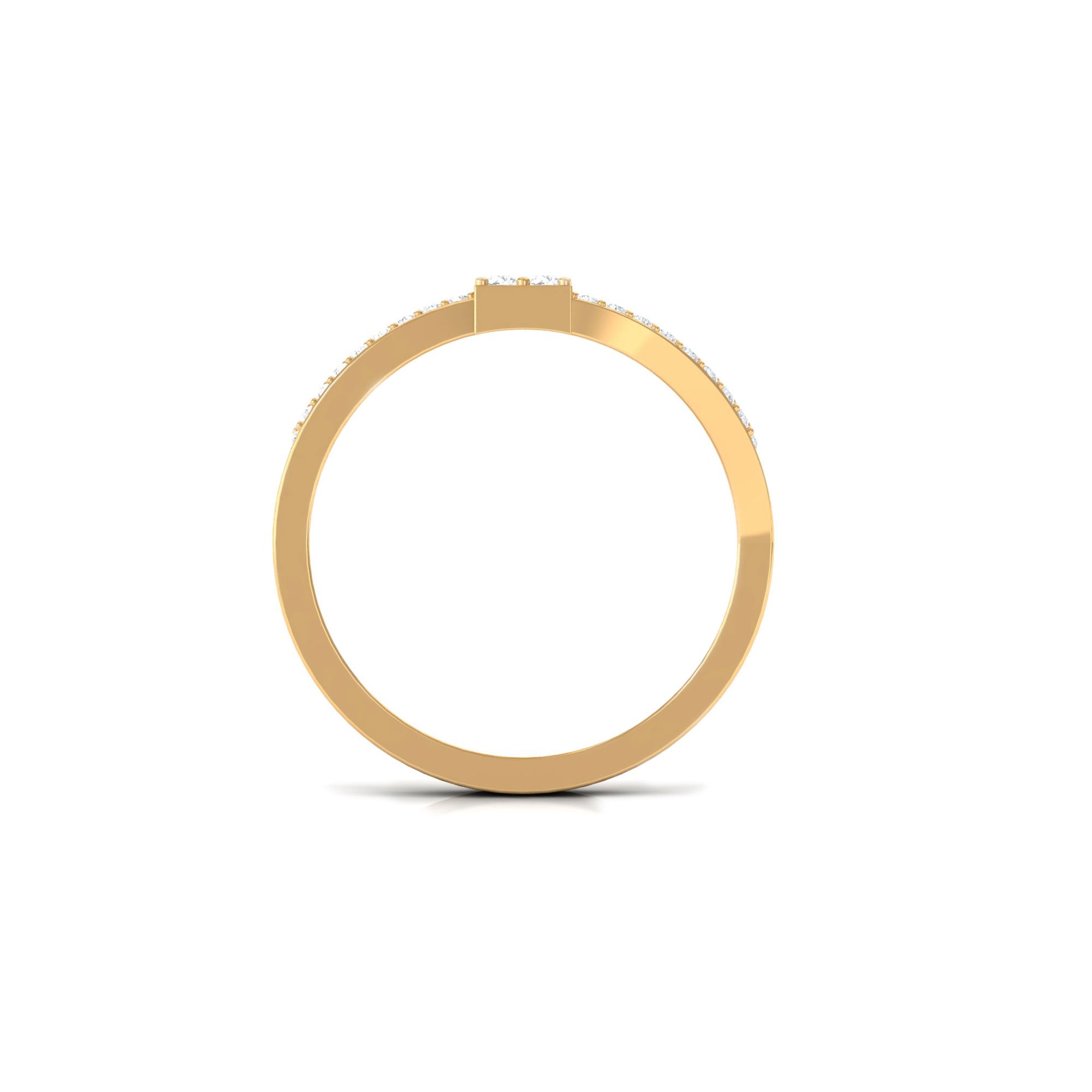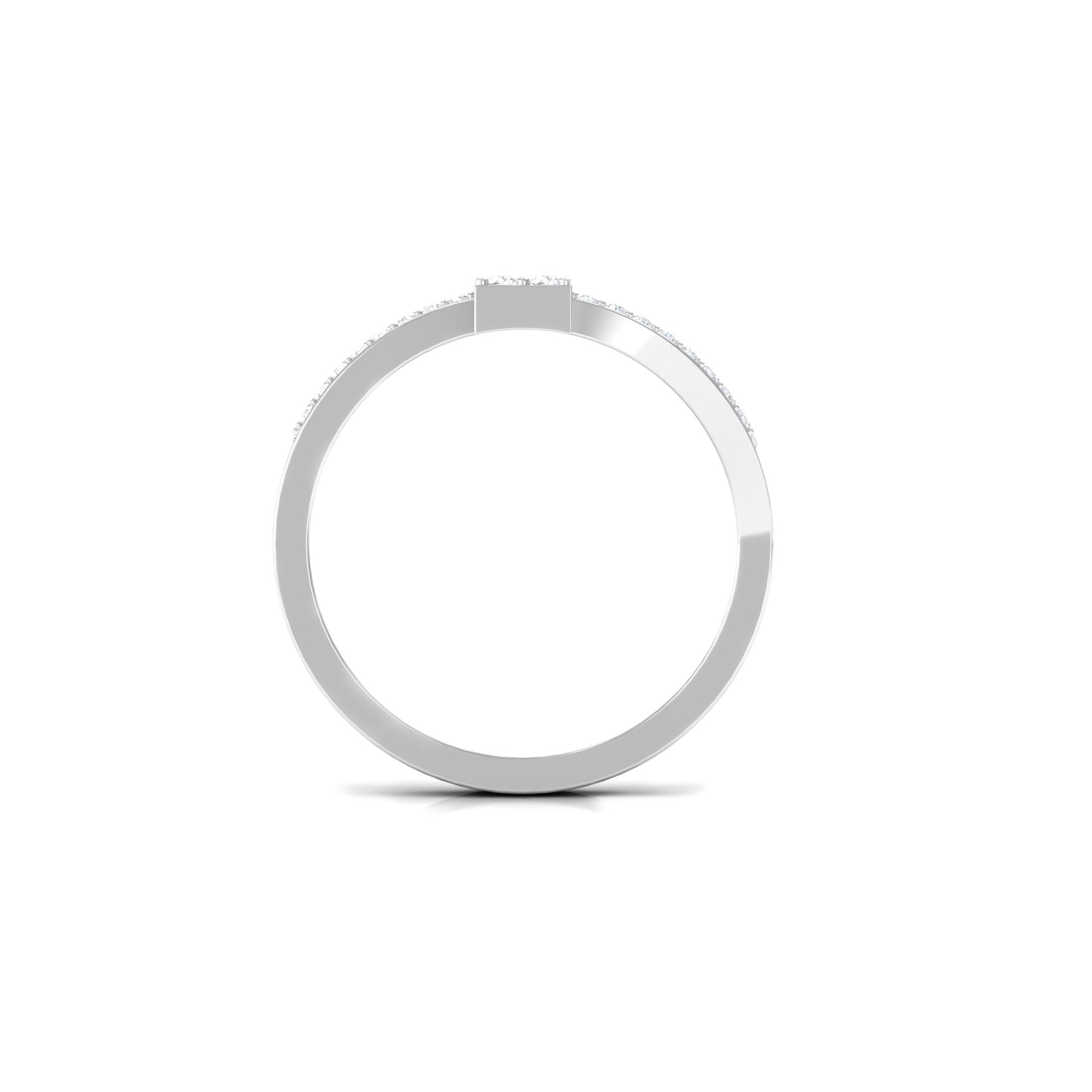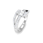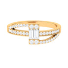 This baguette shape natural diamond bypass engagement ring is a timeless embrace of love. With its sleek and elegant design, it is a perfect symbol of the enduring bond between two souls. The ring features a 2X4 MM baguette-shaped diamond surrounded by small sparkling diamonds encrusted over a bypass shank. This bypass setting allows the diamonds to shine in all their glory, while the band hugs the finger with a comfortable and secure fit. This ring is a perfect choice for the modern woman who appreciates classic style with a touch of glamour.