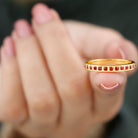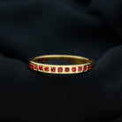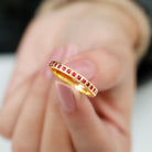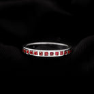 Feel yourself adorned with this extraordinary beautiful Jewelry Piece. The Beautiful Half Eternity Ring is embellished with Tiny round shape Ruby Gemstones in Bar Setting studded on the Half Part of Ring.