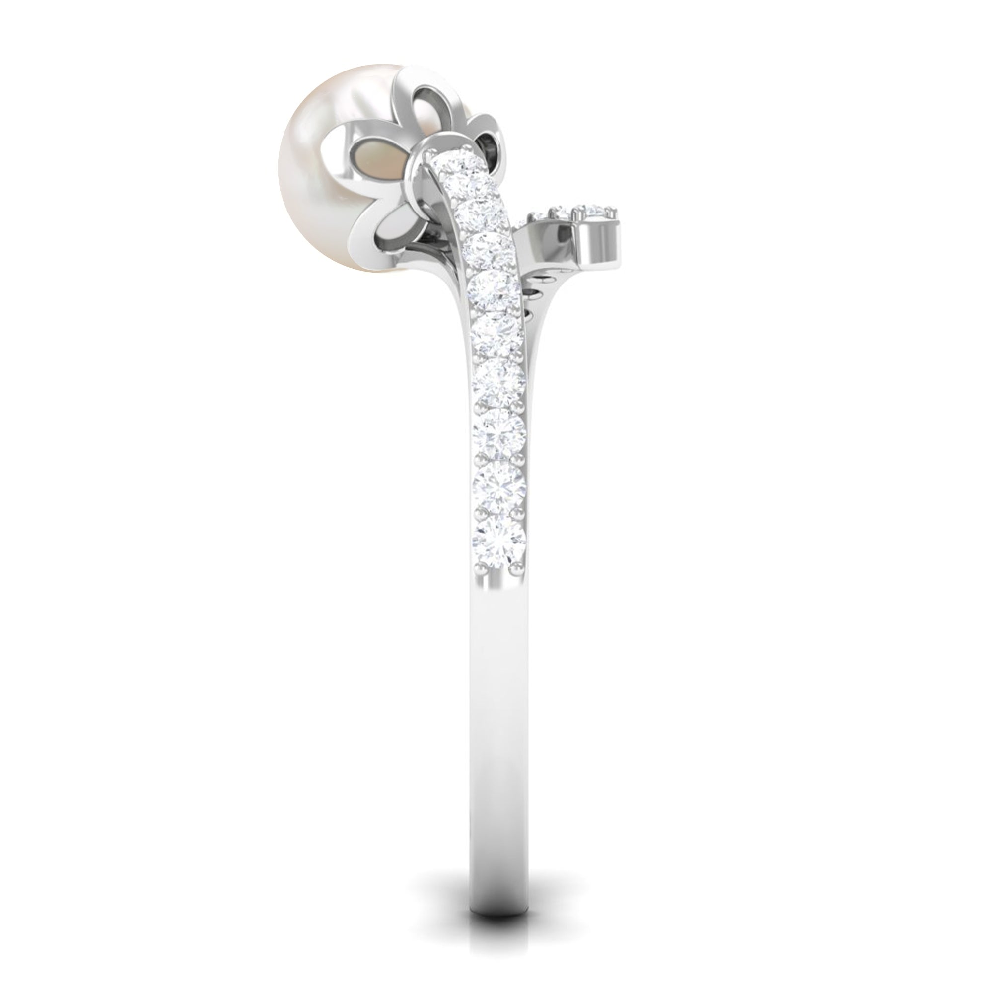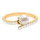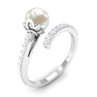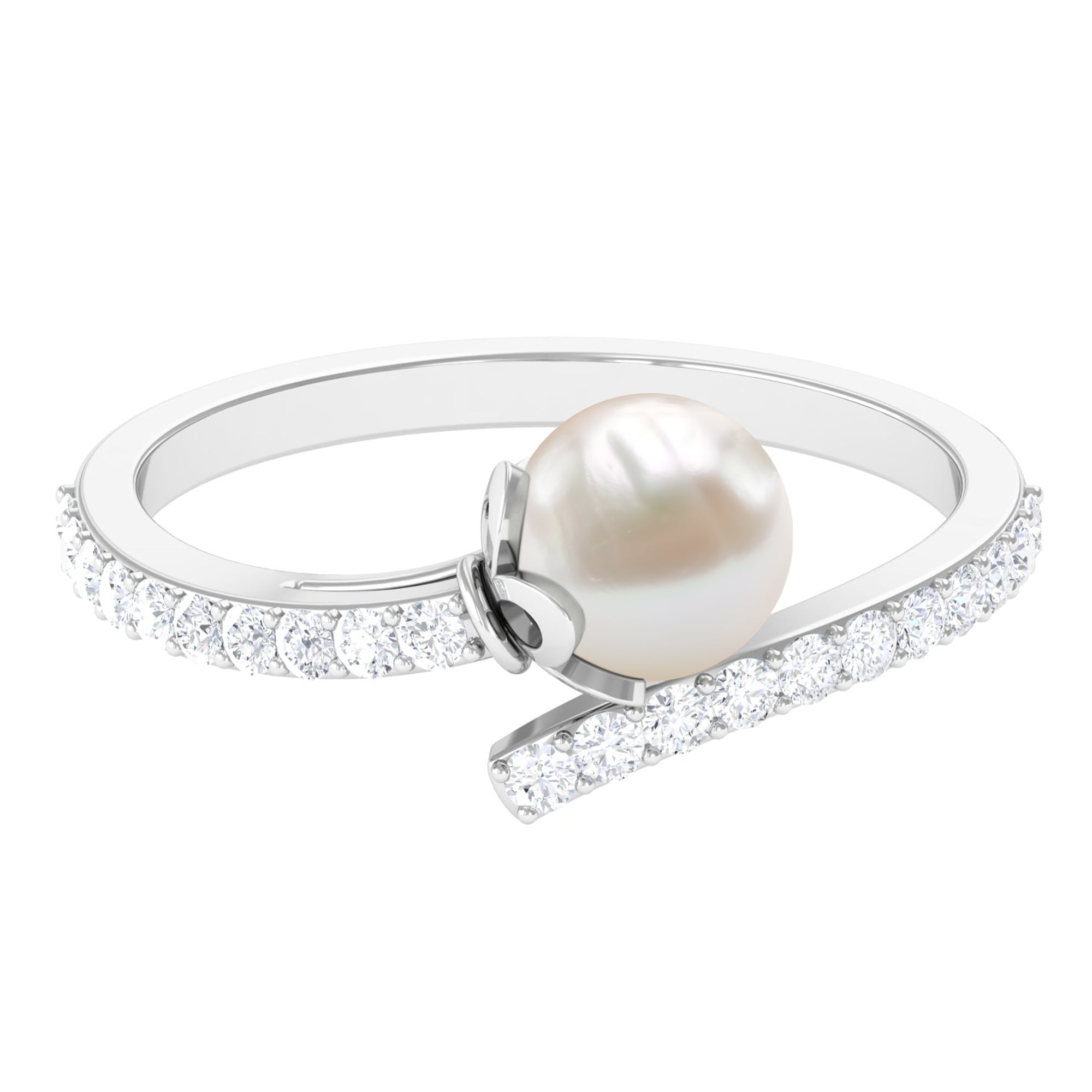 Bead Set Freshwater Pearl Minimal Wrap Ring with Diamond