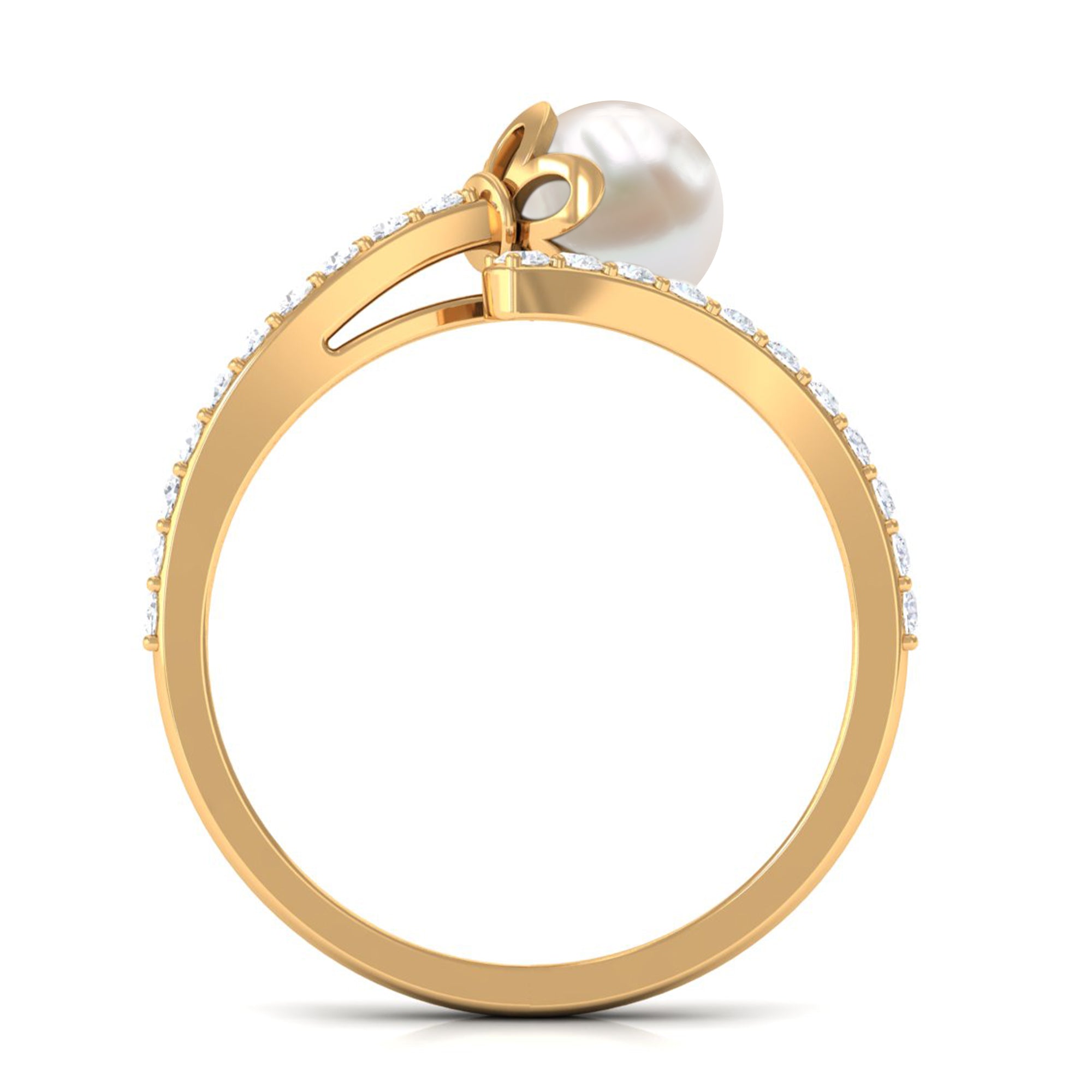 Make your loved one feel the unconditional love while presenting our Freshwater Pearl and Diamond Wrap Ring. It embellished with Round Shape Freshwater Pearl with Round Diamond set as side stones. This Minimal Wrap Ring is composed in Gold to offer it a charming flair.