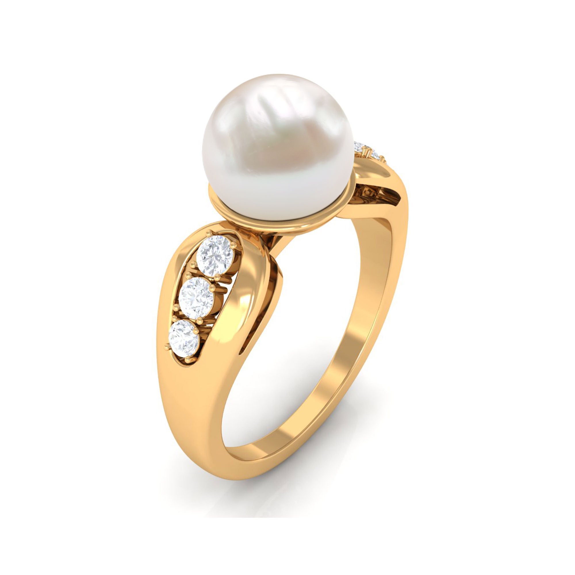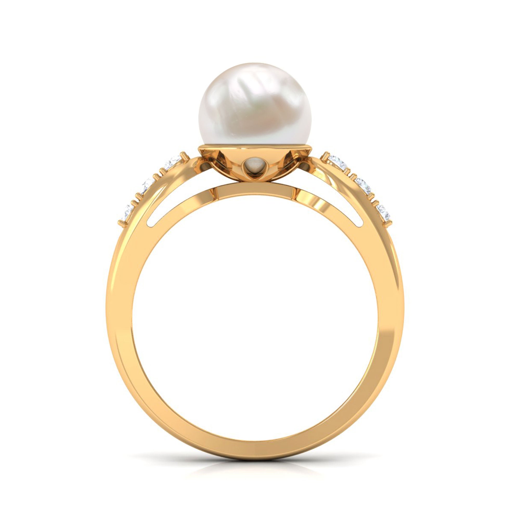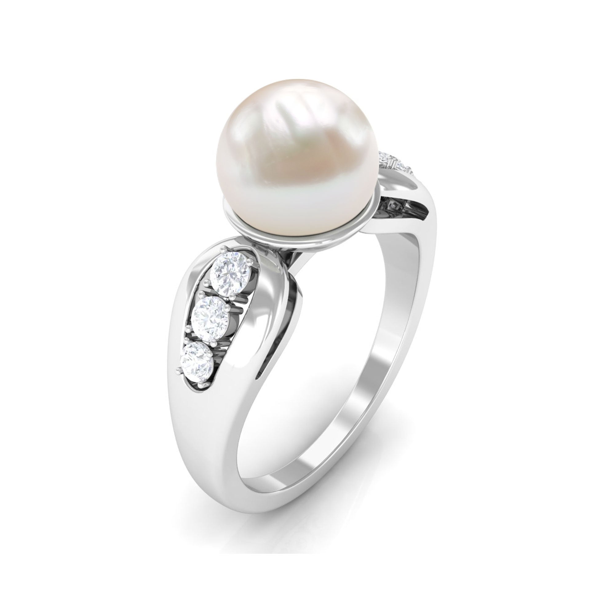 Bead Set Freshwater Pearl Solitaire Ring with Diamond Side Stones