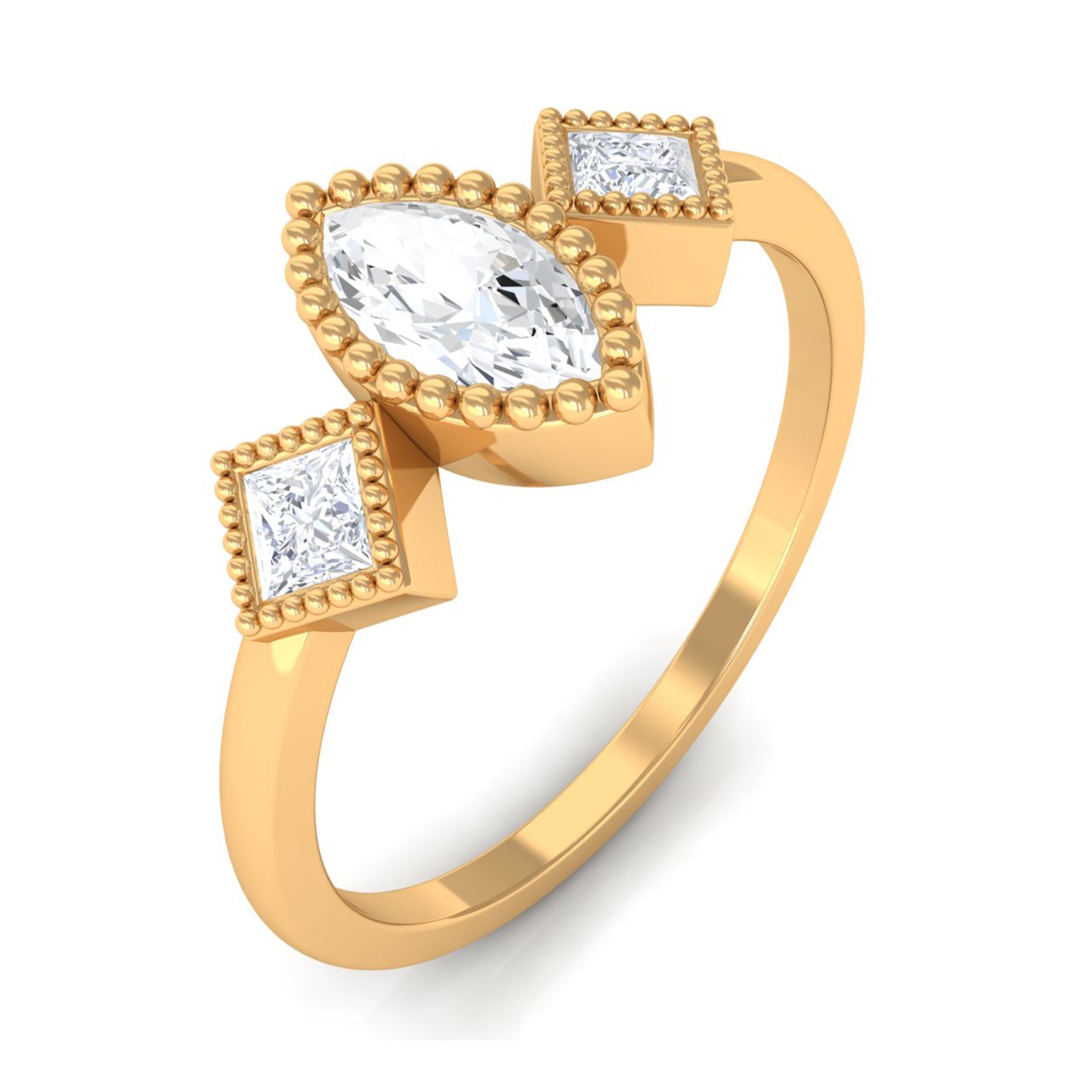 Beaded Bezel Set Zircon Three Stone Engagement Ring