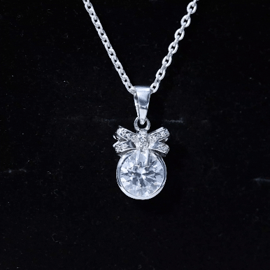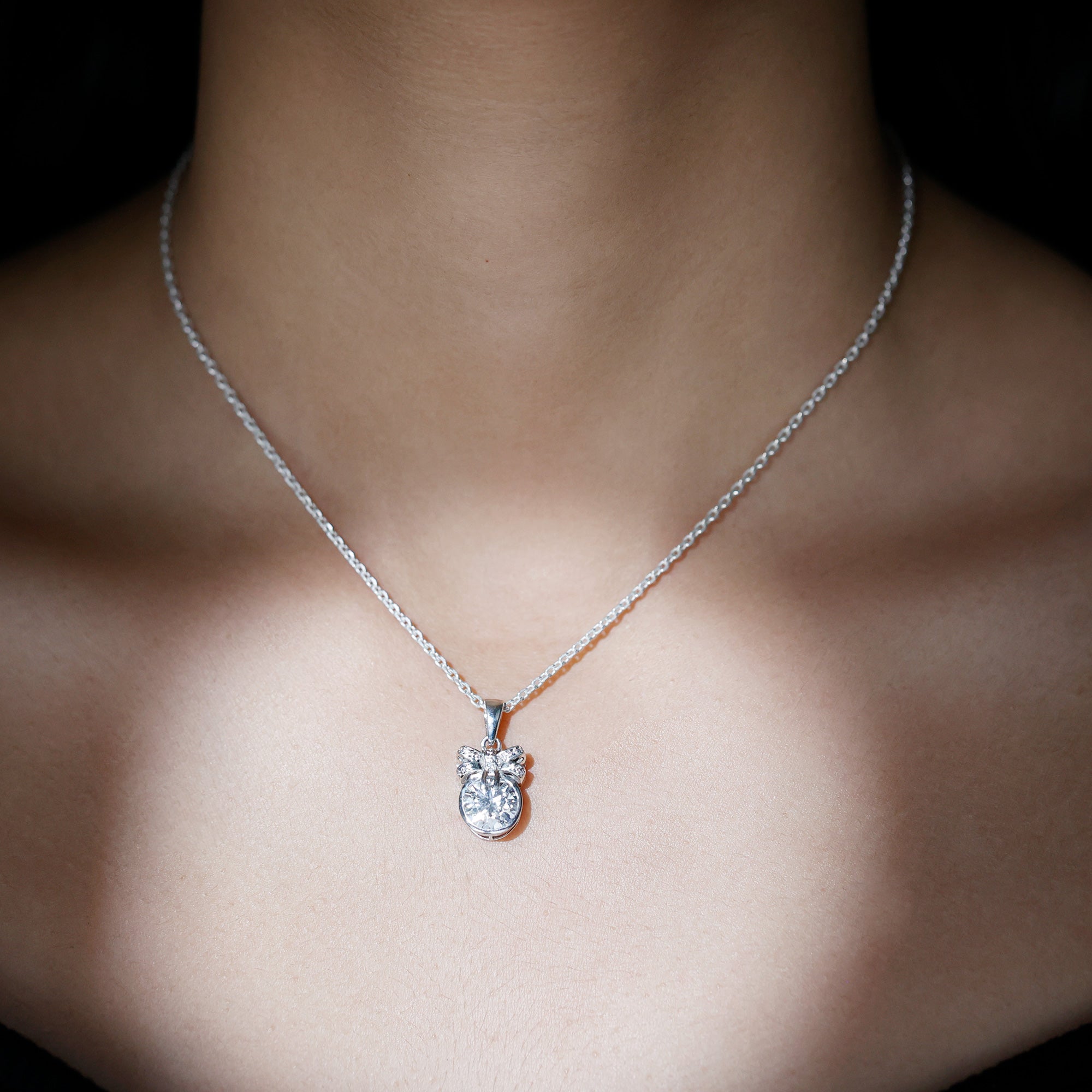 Bezel Set 2 CT Moissanite Solitaire Pendant with Bow
