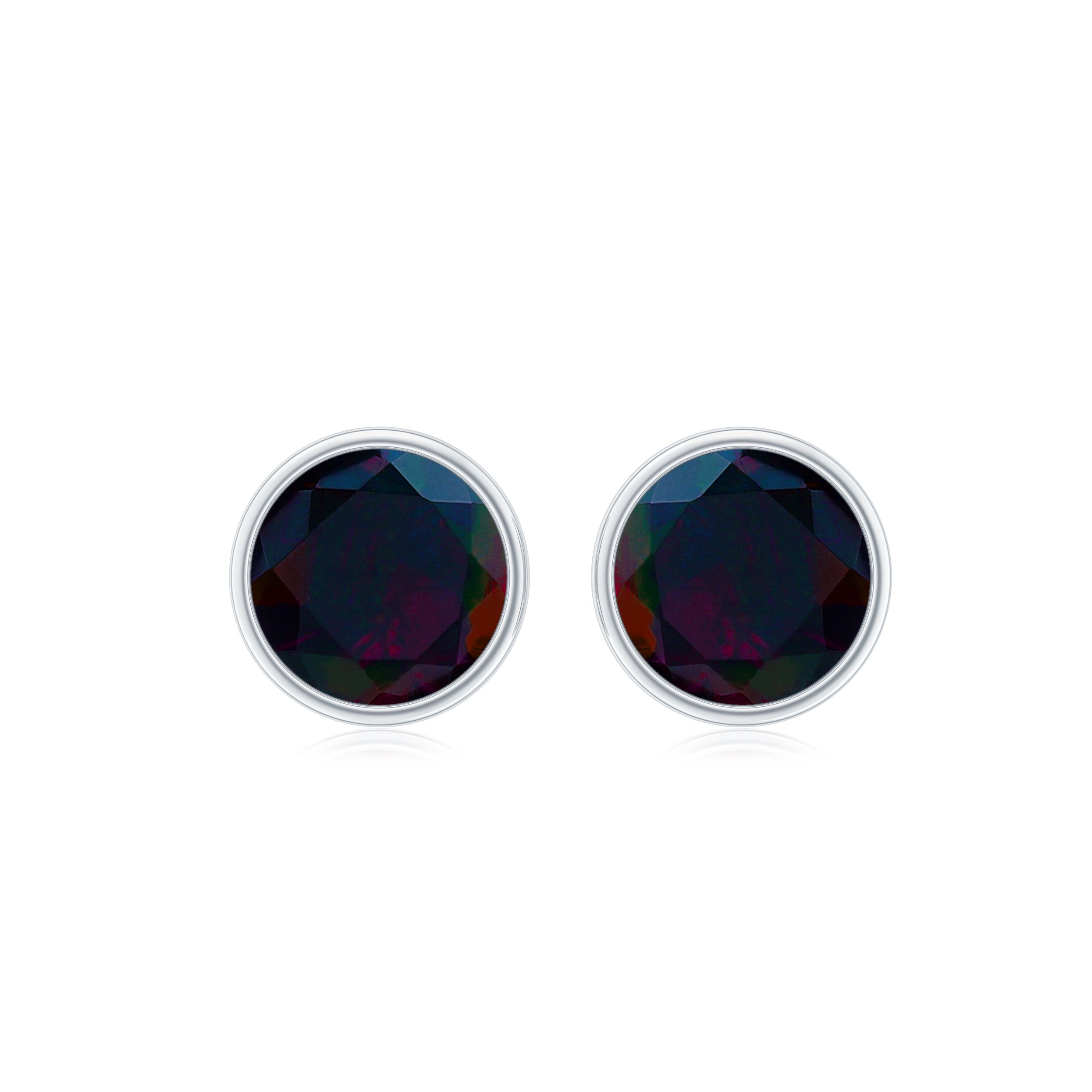 Bezel Set 6mm Black Opal Stud Earrings with Certificate