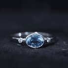Celebrate love and commitment with this beautifully designed Aquamarine Engagement Ring. At the center of the ring is a stunning 6X8MM oval cut aquamarine, set horizontally in a modern east west style. On both sides of the center stone, round diamonds are placed carefully in bezel setting. These diamonds add a gentle sparkle that highlights the aquamarine. The bezel setting not only enhances the clean design but also keeps the stones secure for everyday wear. Crafted from high-quality metal, this East West Engagement Ring is designed for lasting beauty and comfort. The band and balanced setting make it easy to wear all day. Its simple yet stylish design makes it suitable for both everyday elegance and special moments. This Aquamarine and Diamond Ring is a meaningful choice for proposals, anniversaries, or milestones. With its modern east-west style and timeless charm, it is a March Birthstone Ring she will treasure forever.