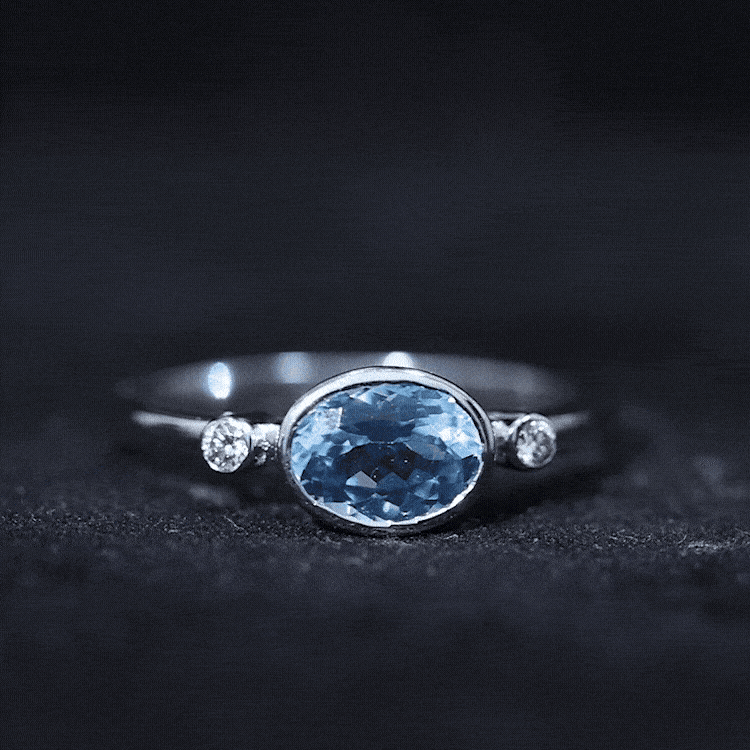 Bezel Set Aquamarine and Diamond East West Engagement Ring
