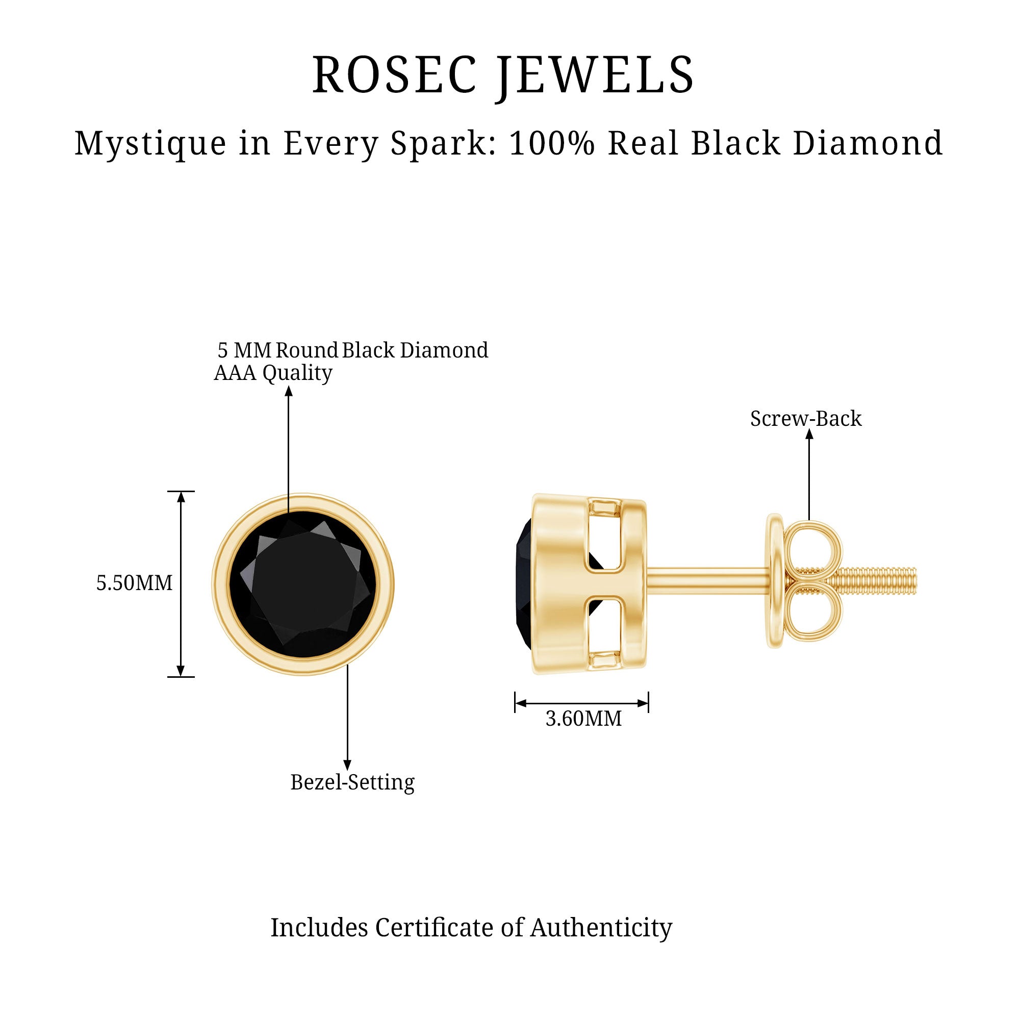 Adorn your ears with these Solitaire Stud Earrings which are truly an embodiment of timeless elegance. Featuring 5 MM Round cut Black Diamond exquisitely set in bezel setting, making this piece an absolute beauty. Go from day to night with ease as these Black Diamond Earrings are equipped with Screw-Back Closures so you can flaunt them without any discomfort. Get this pair for yourself or surprise your beloved by presenting our stunning Black Diamond Stud Earrings, as they make a delightful birthday gift for them. This pair comes with a certificate of authenticity, ensuring you receive genuine and AAA quality black diamonds. Packed beautifully in a luxurious jewelry box, they are ready to be gifted to someone special or treasured as a personal favorite. Their simple design makes them ideal for both men and women, suiting any style or occasion. Designed for daily wear yet classy enough for special occasions, these Everyday Earrings combine comfort, brilliance, and timeless appeal.