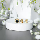 Bezel Set Black Diamond Solitaire Stud Earrings