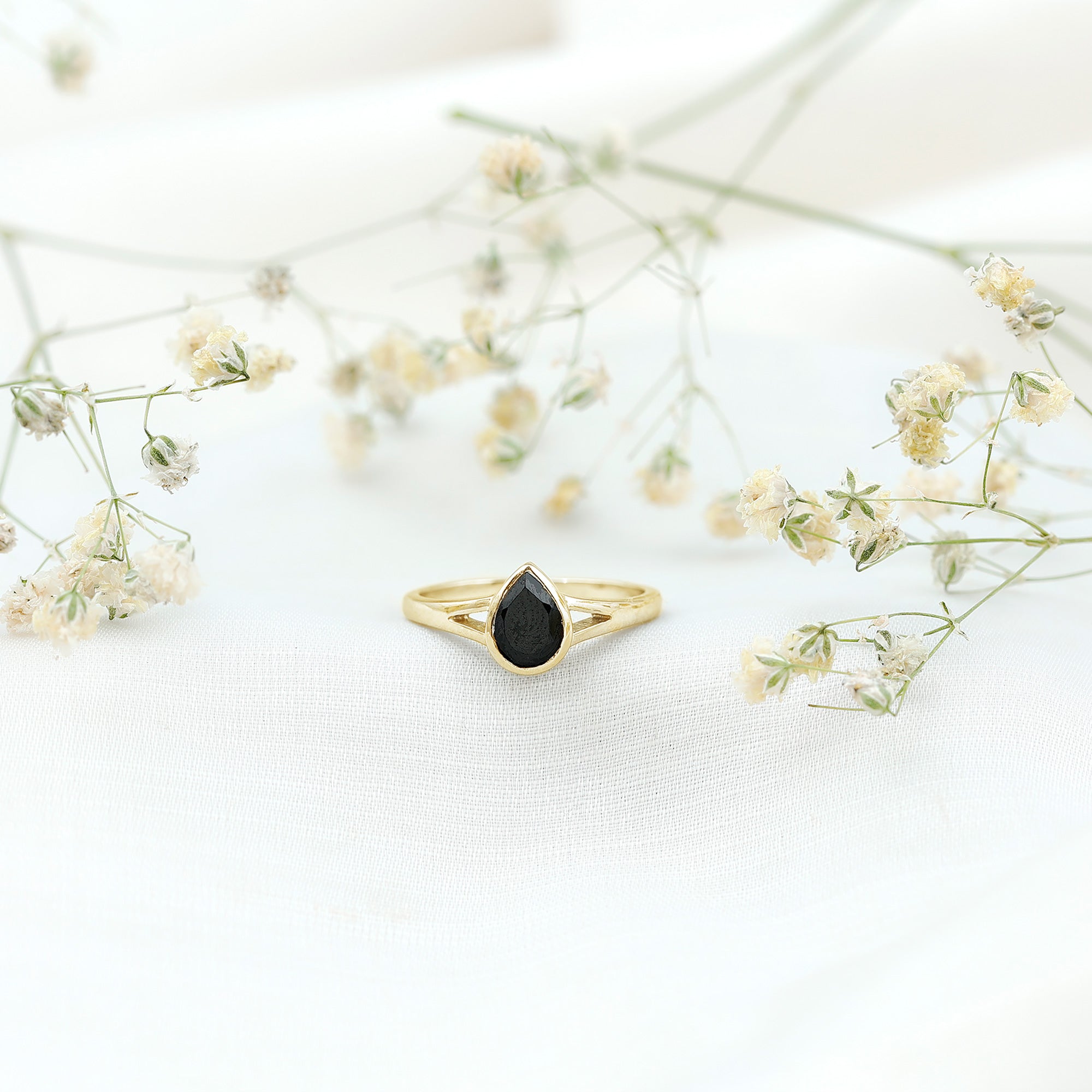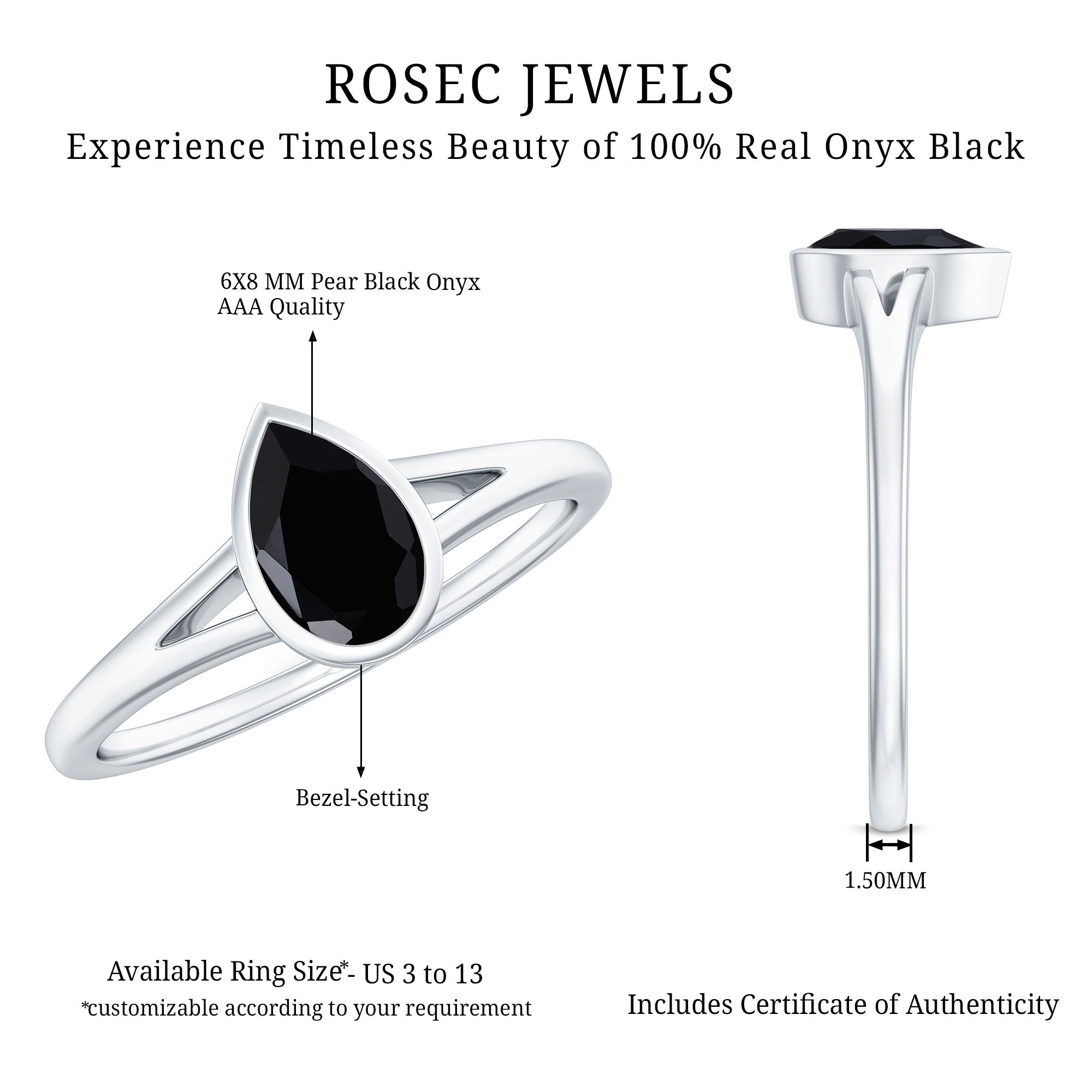 Bezel Set Black Onyx Pear Engagement Ring in Split Shank