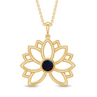 Bezel Set Black Opal Gold Flower Pendant Necklace
