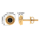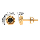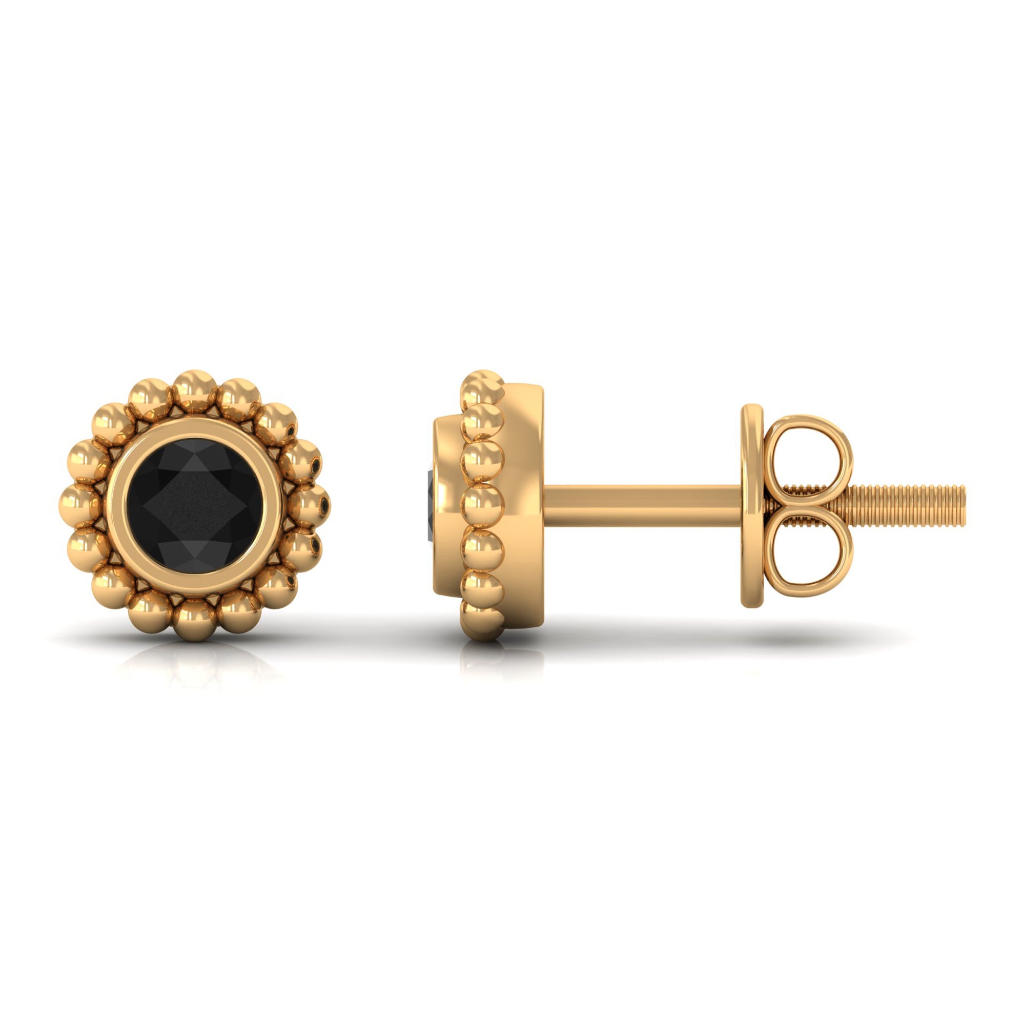 Bezel Set Black Spinel Stud Earrings with Beaded Gold