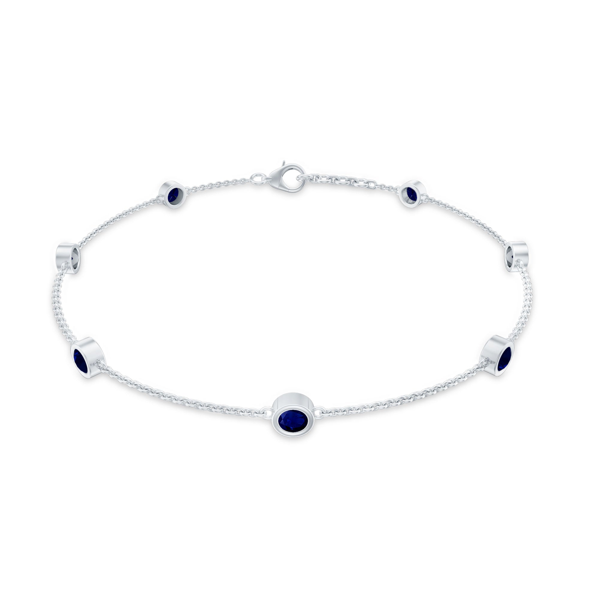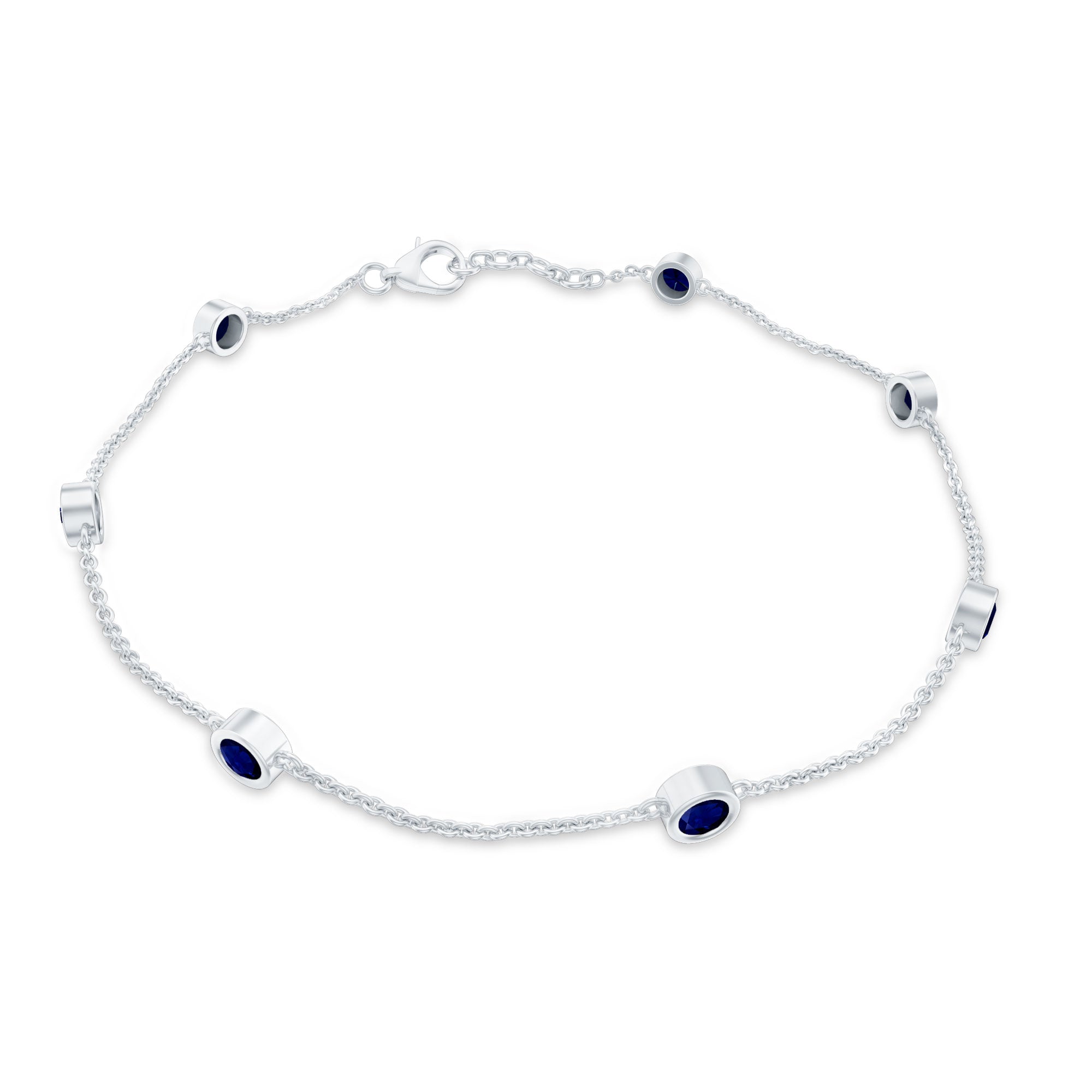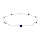 Bezel Set Blue Sapphire Seven Stone Station Chain Bracelet