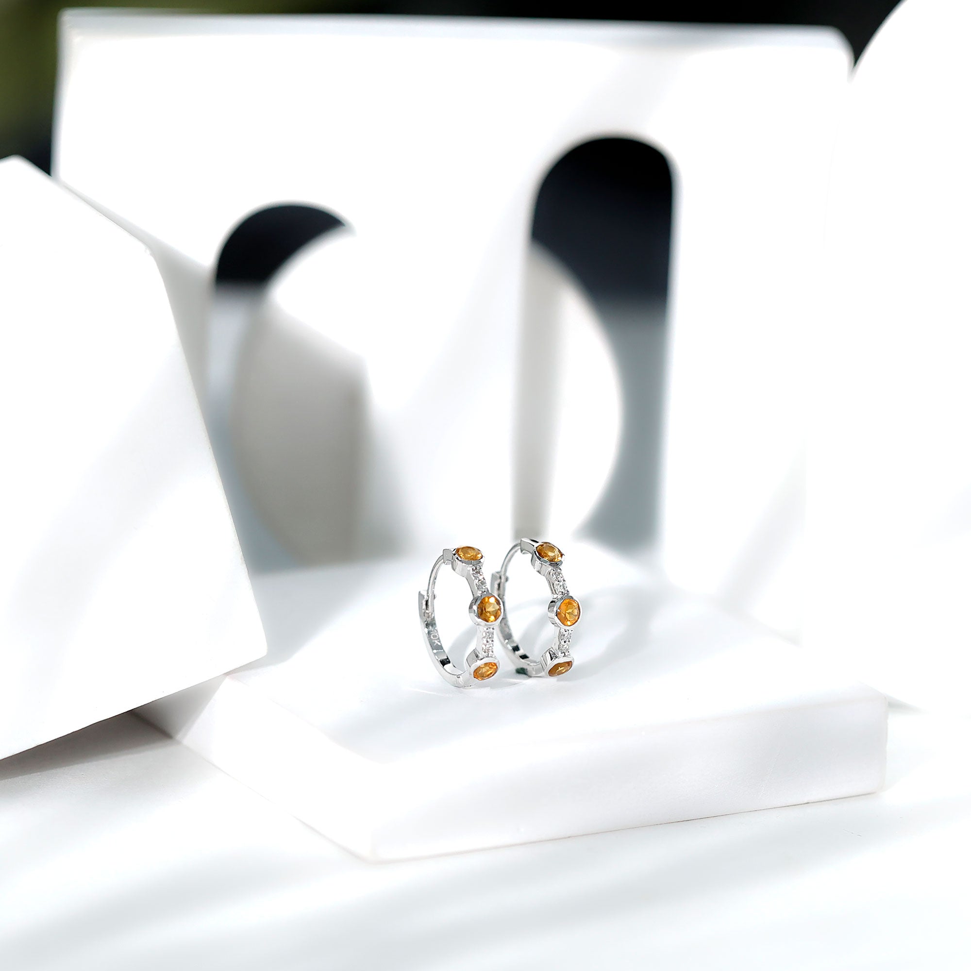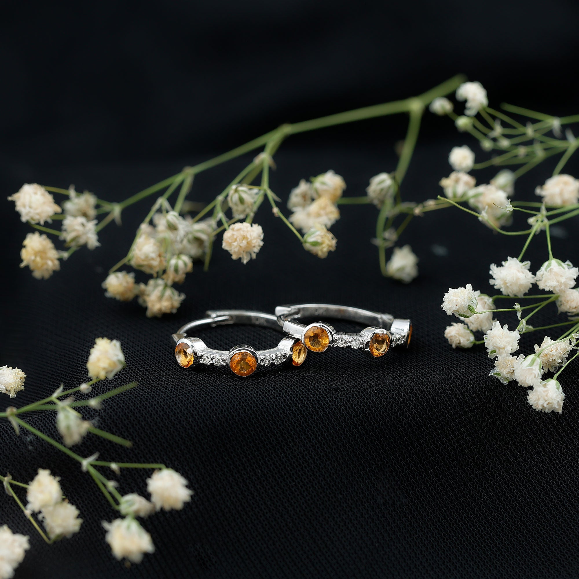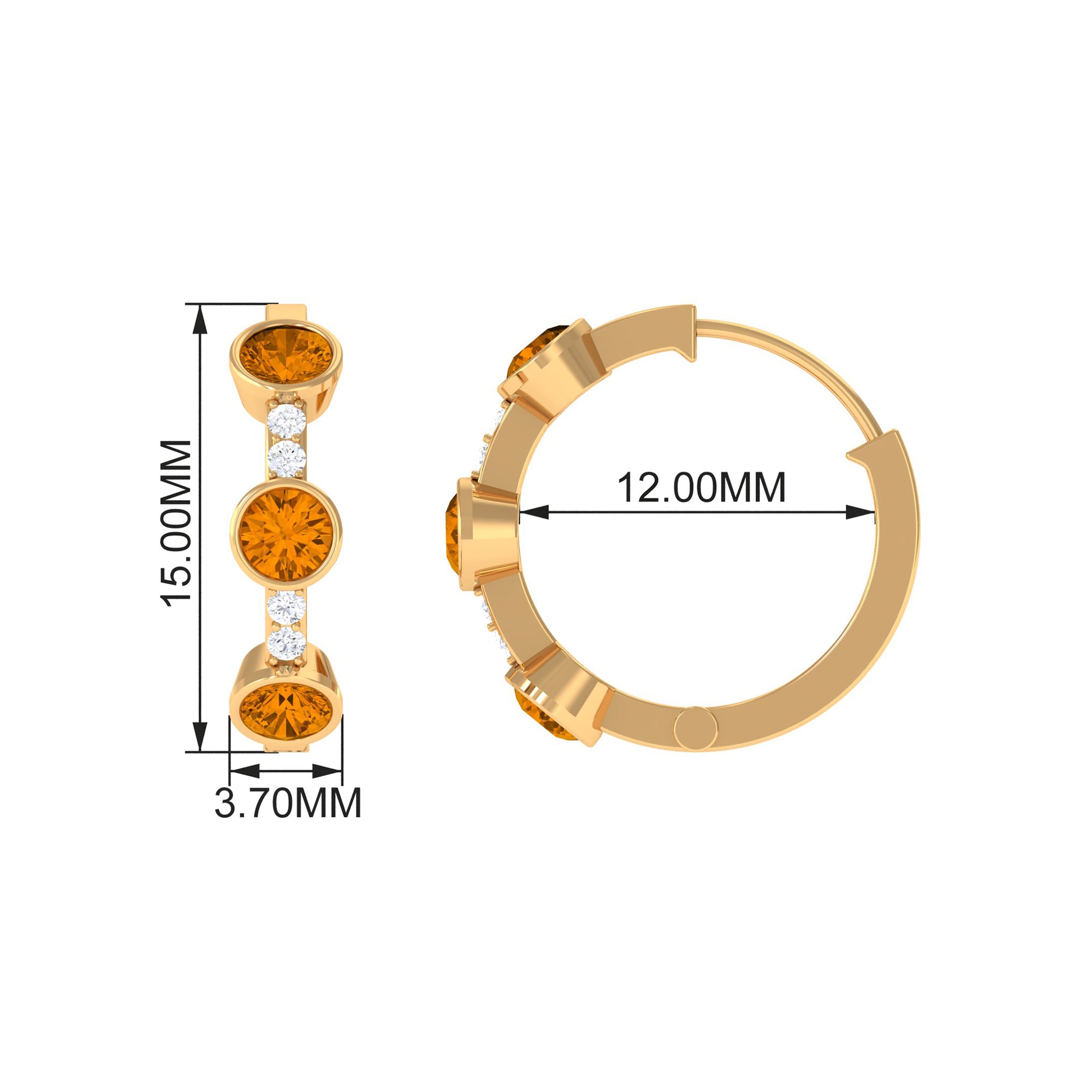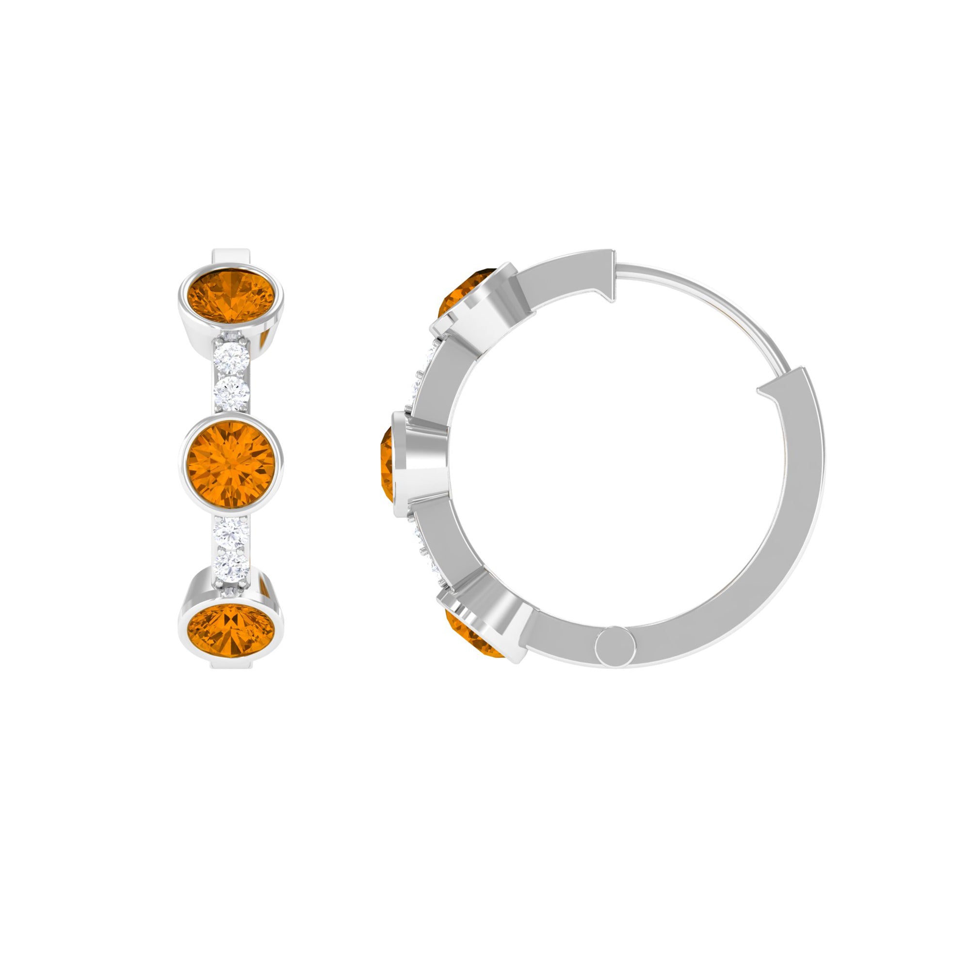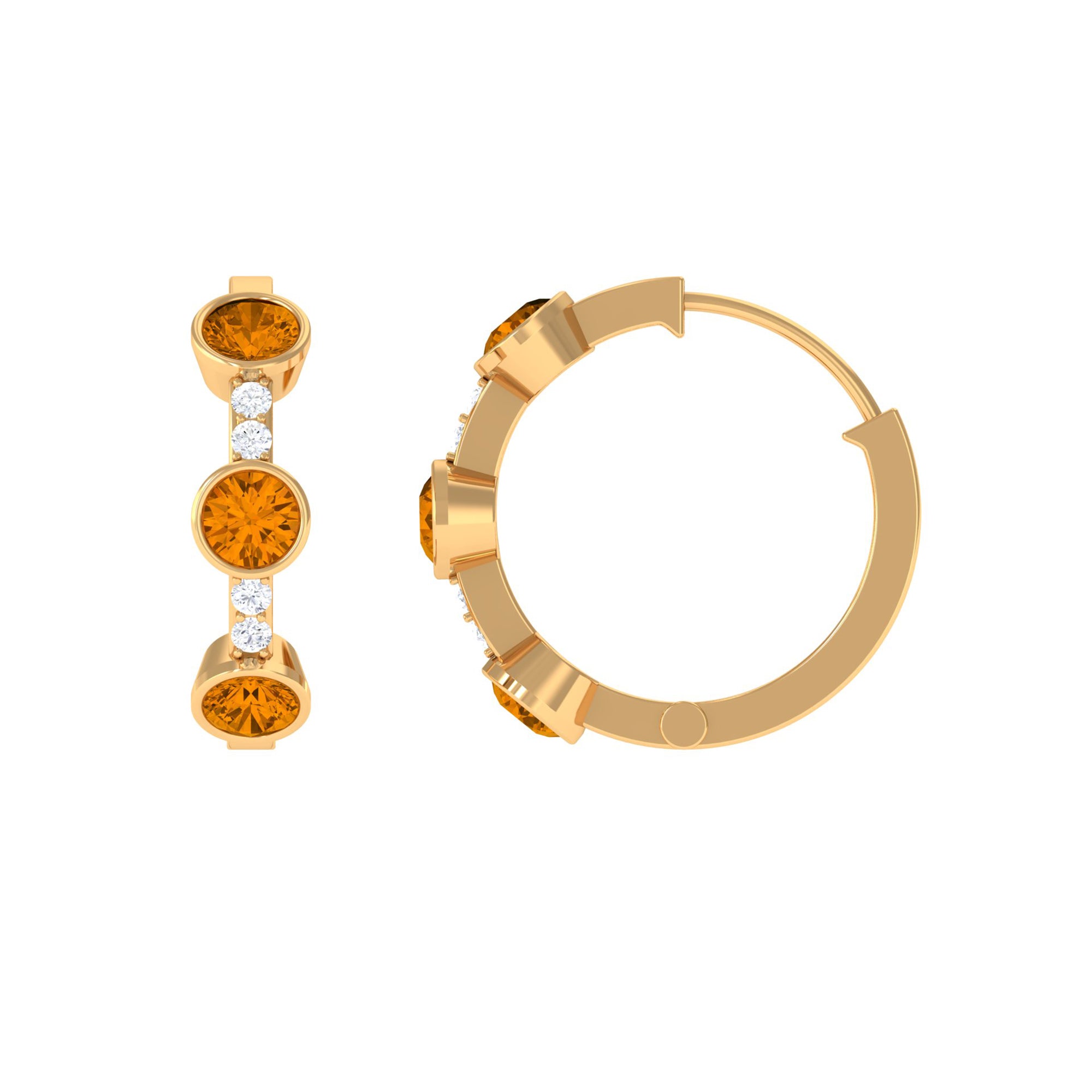 Bezel Set Citrine 3 Stone Hinged Hoop Earrings with Diamond