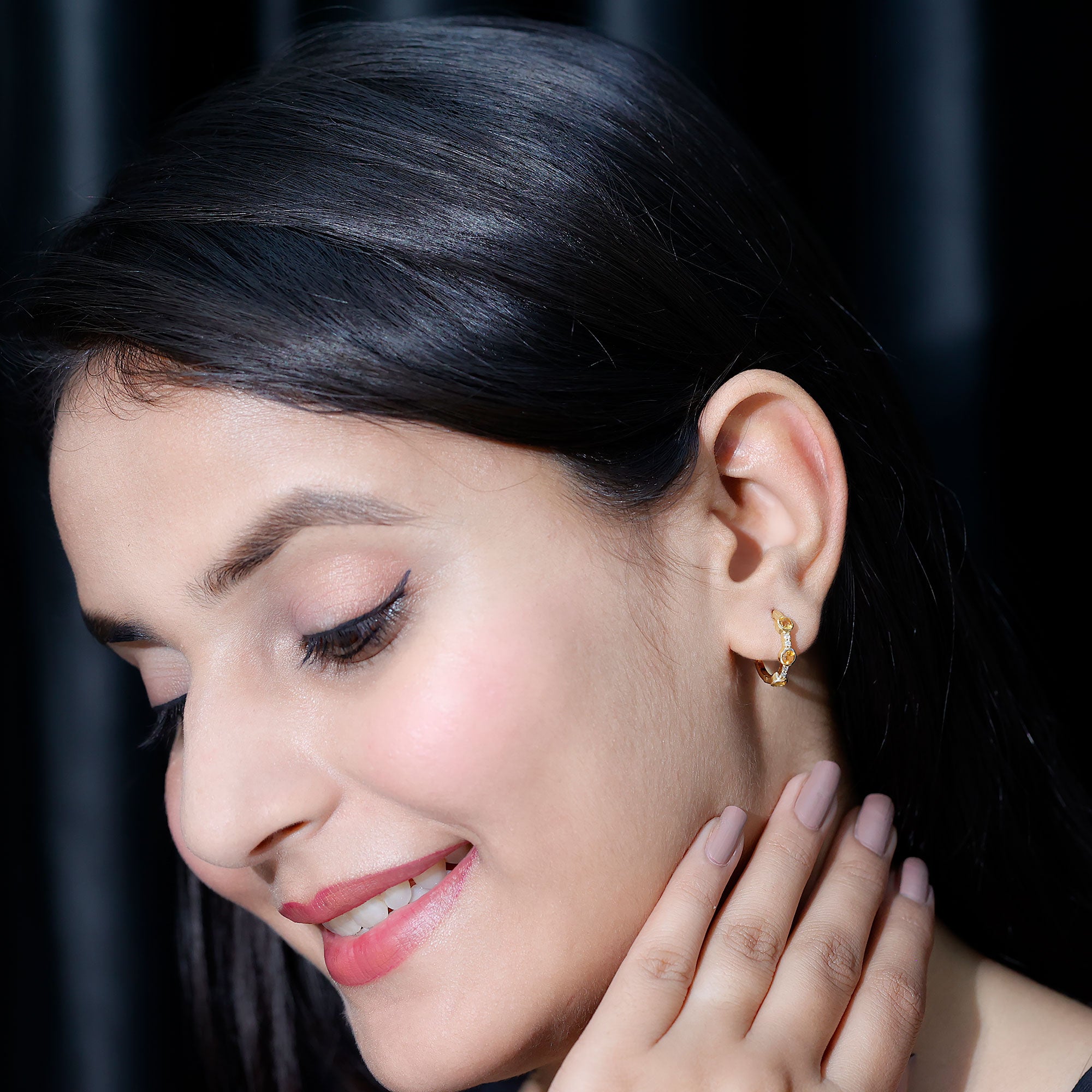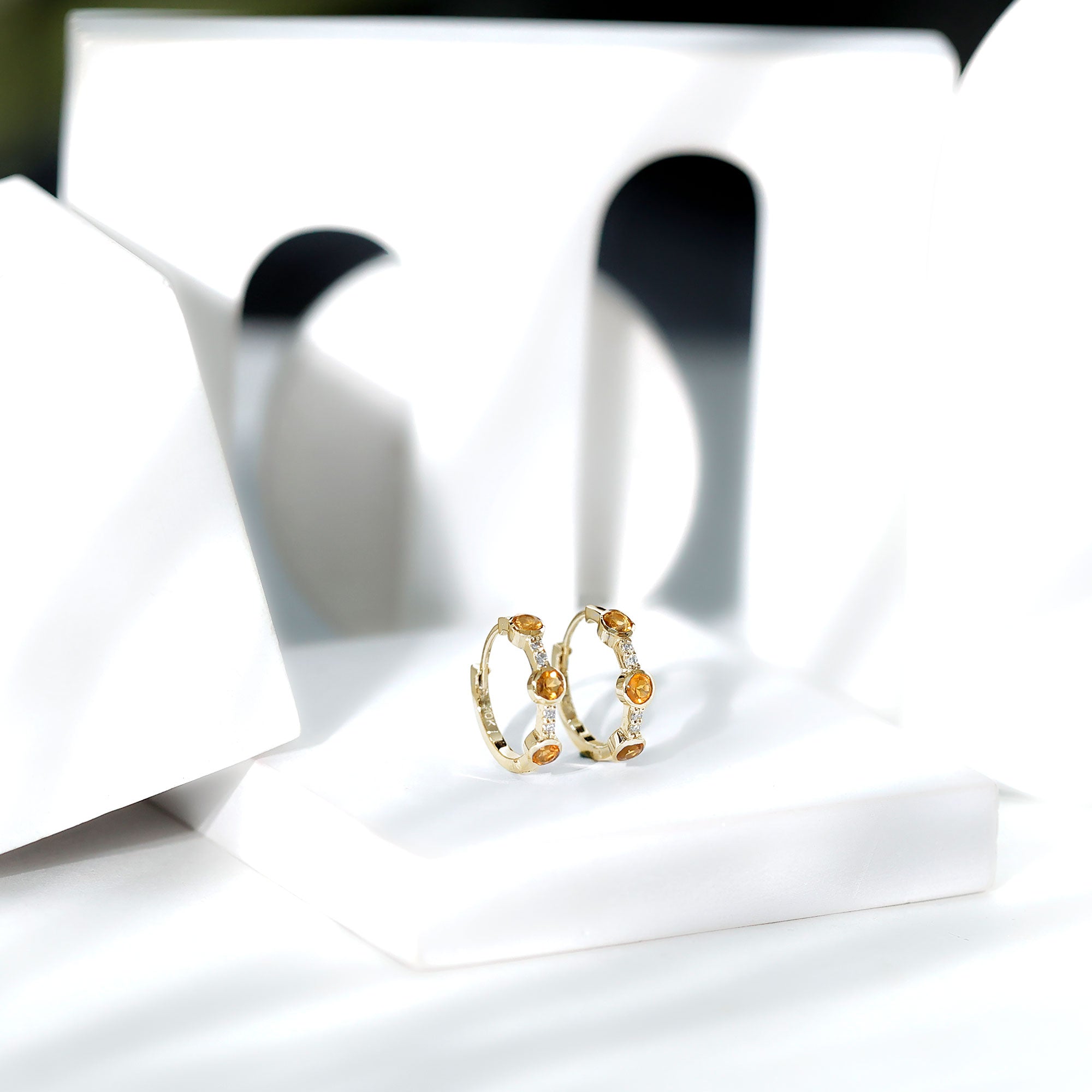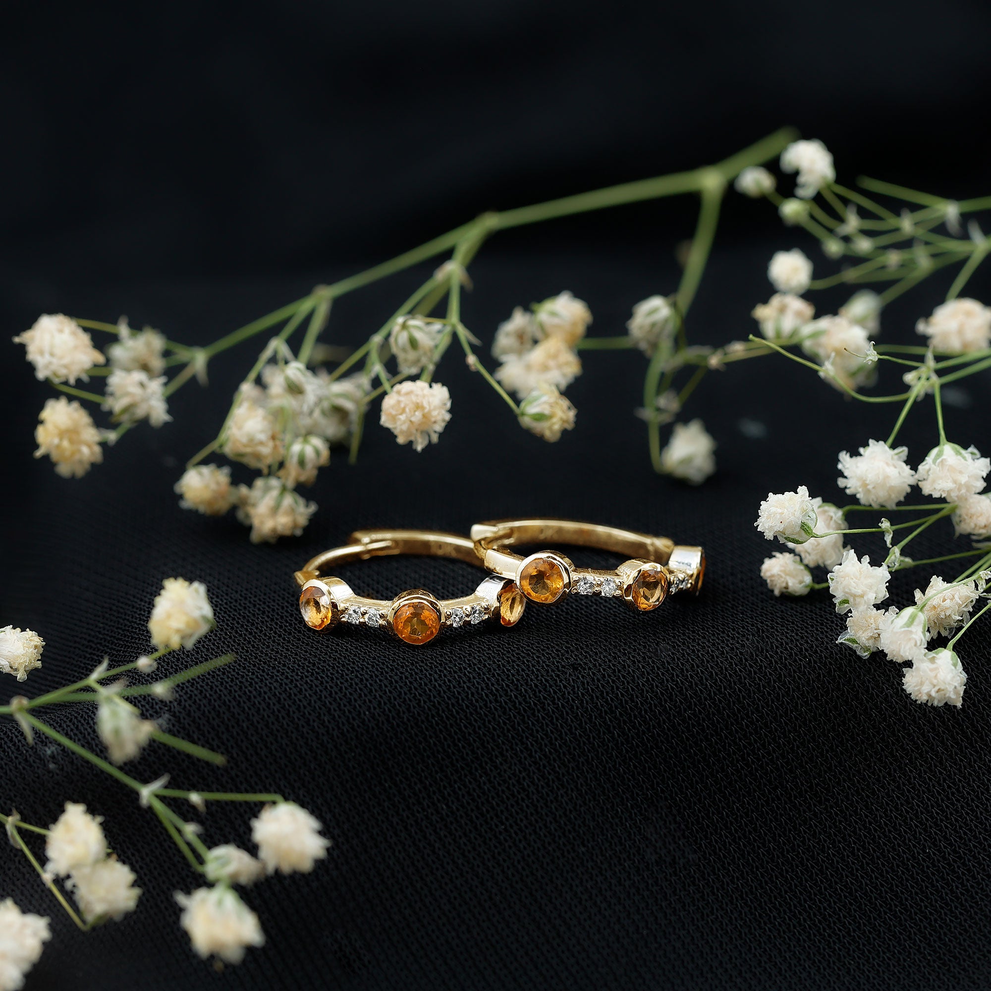 This Hinged Hoop Earrings embellished with Brilliant Round Shape Citrine is set in a Bezel Setting and natural Diamond accent creating an appalling look, crafted in a Gold.