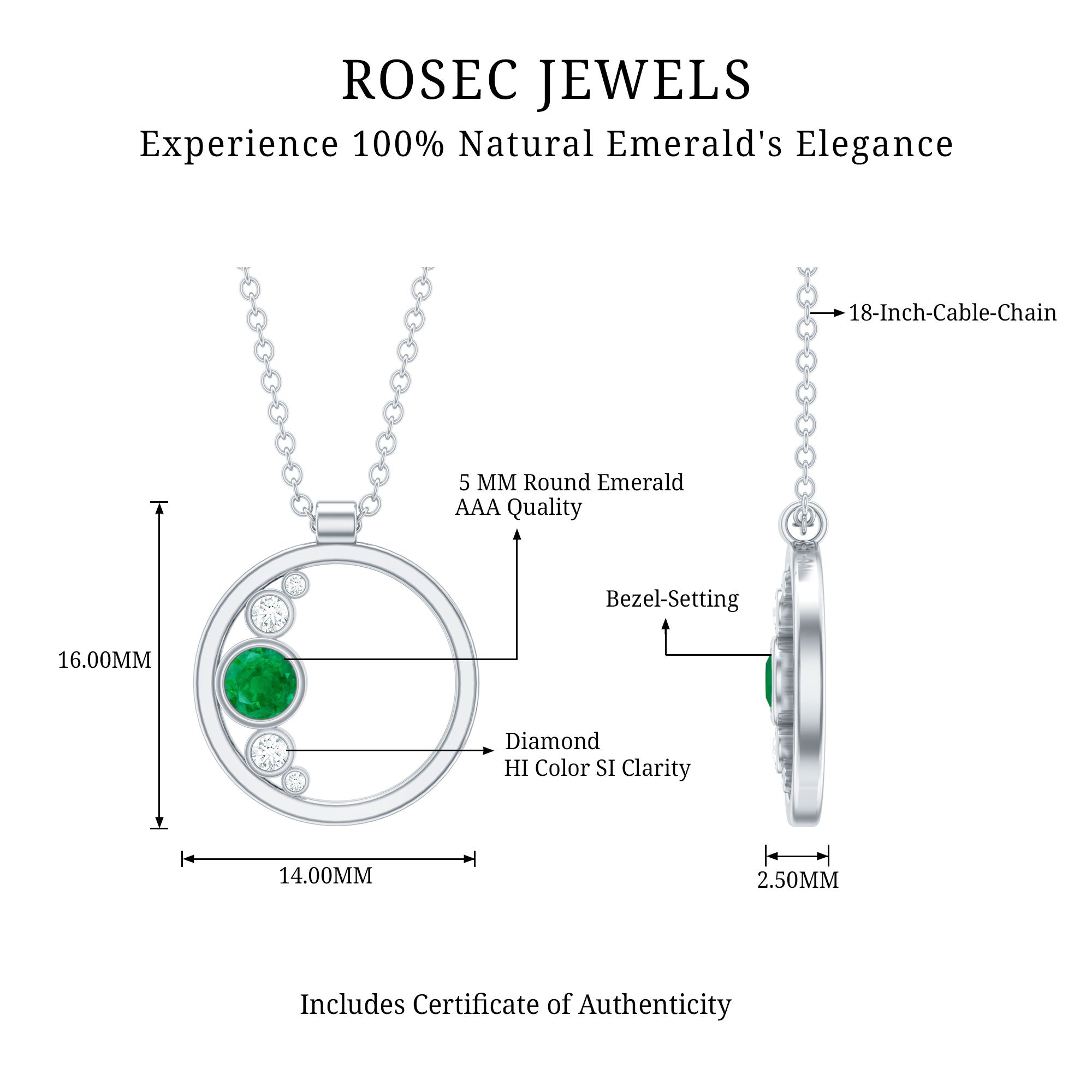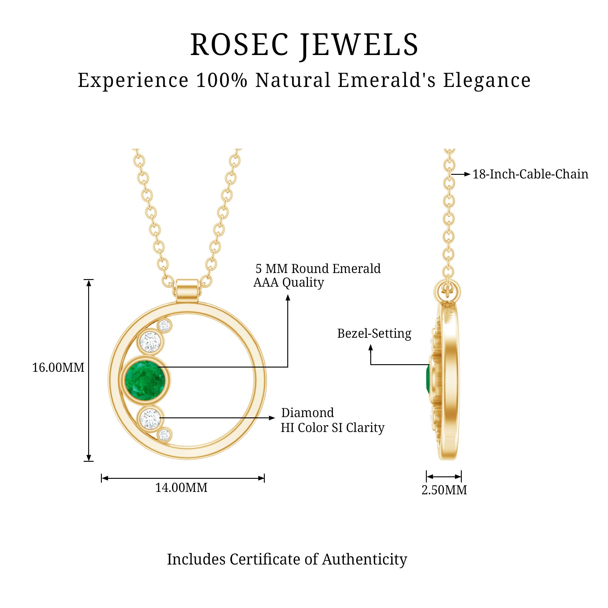 Add a flair of charm with this Emerald Pendant showcasing Round Shape Emerald and Diamond secured in Bezel Setting. The Circle Pendant is crafted with Solid Metal and can be effortlessly styled with your casual or dressy attire for achieving a gorgeous look. Treat yourself with this Minimal Pendant and it makes a sweet birthday present for her.