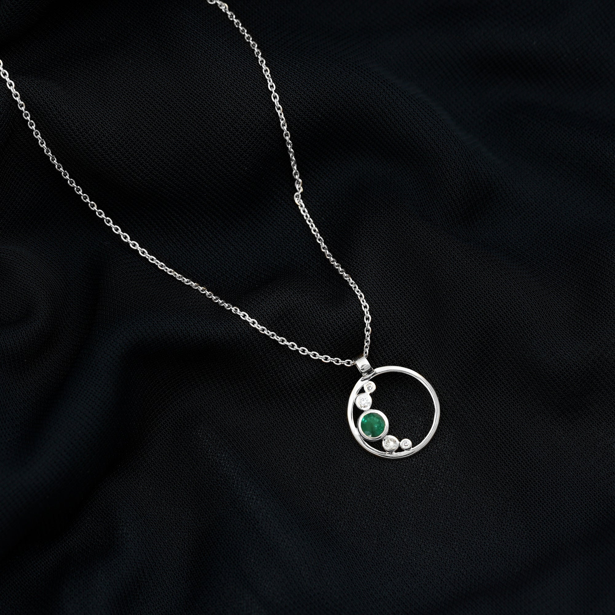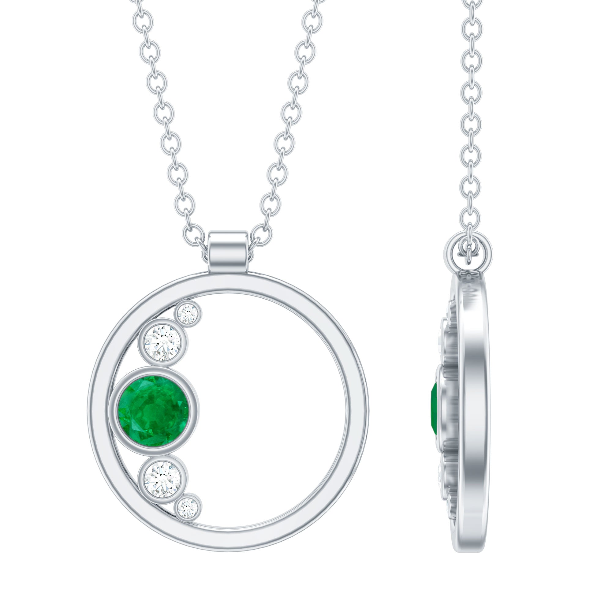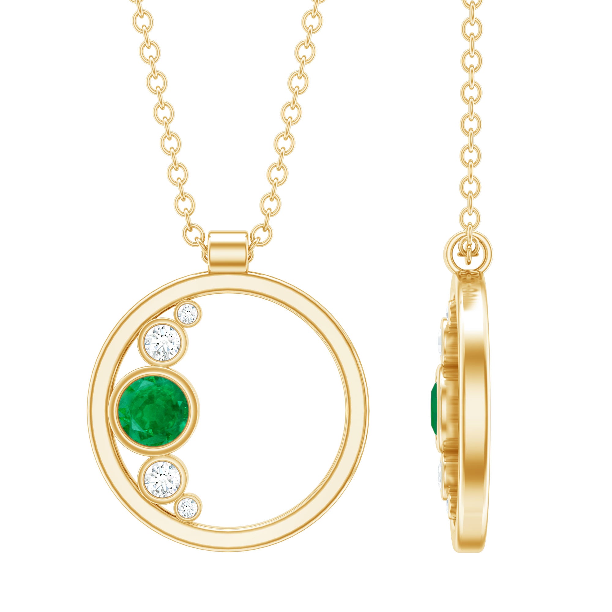Bezel Set Emerald and Diamond Open Circle Necklace