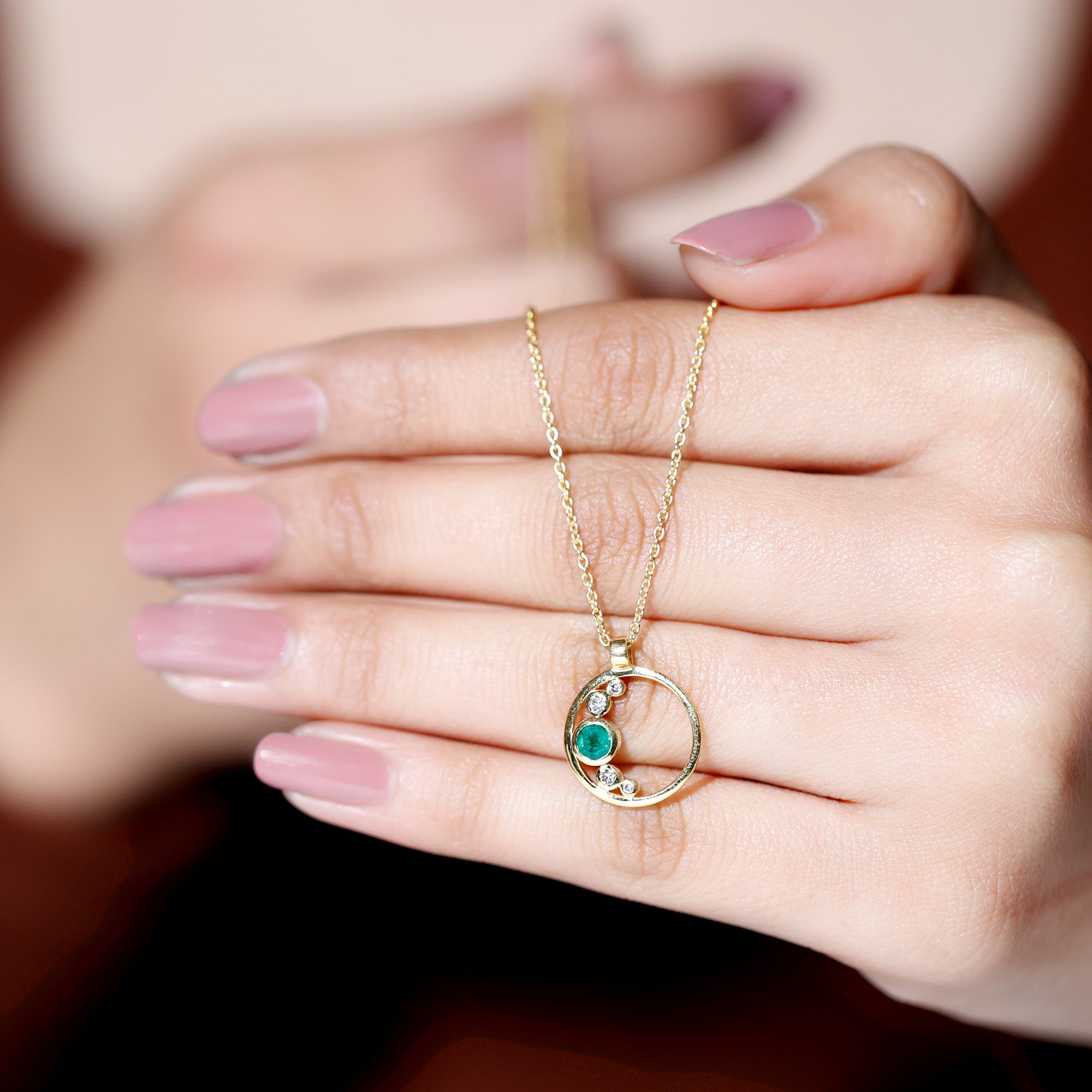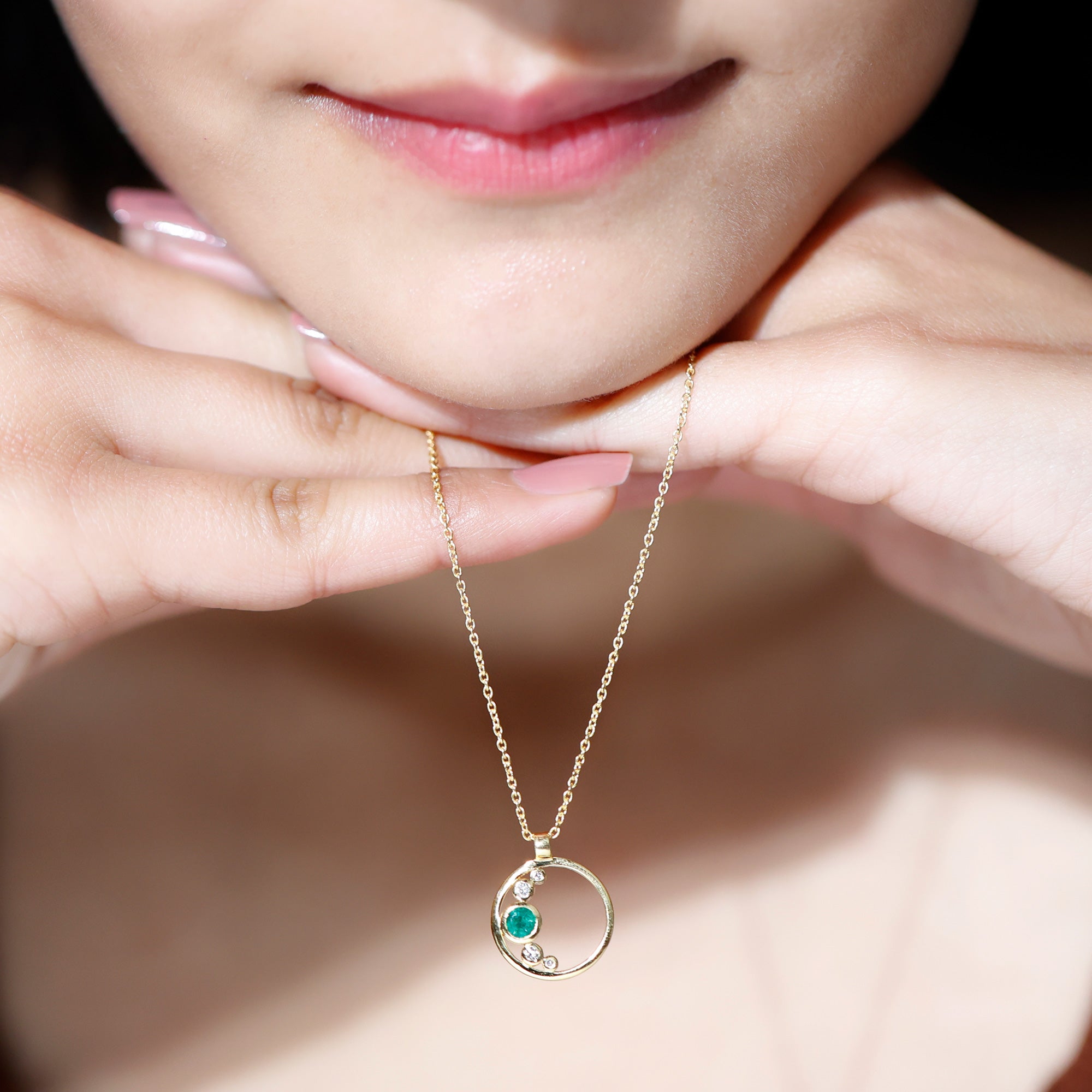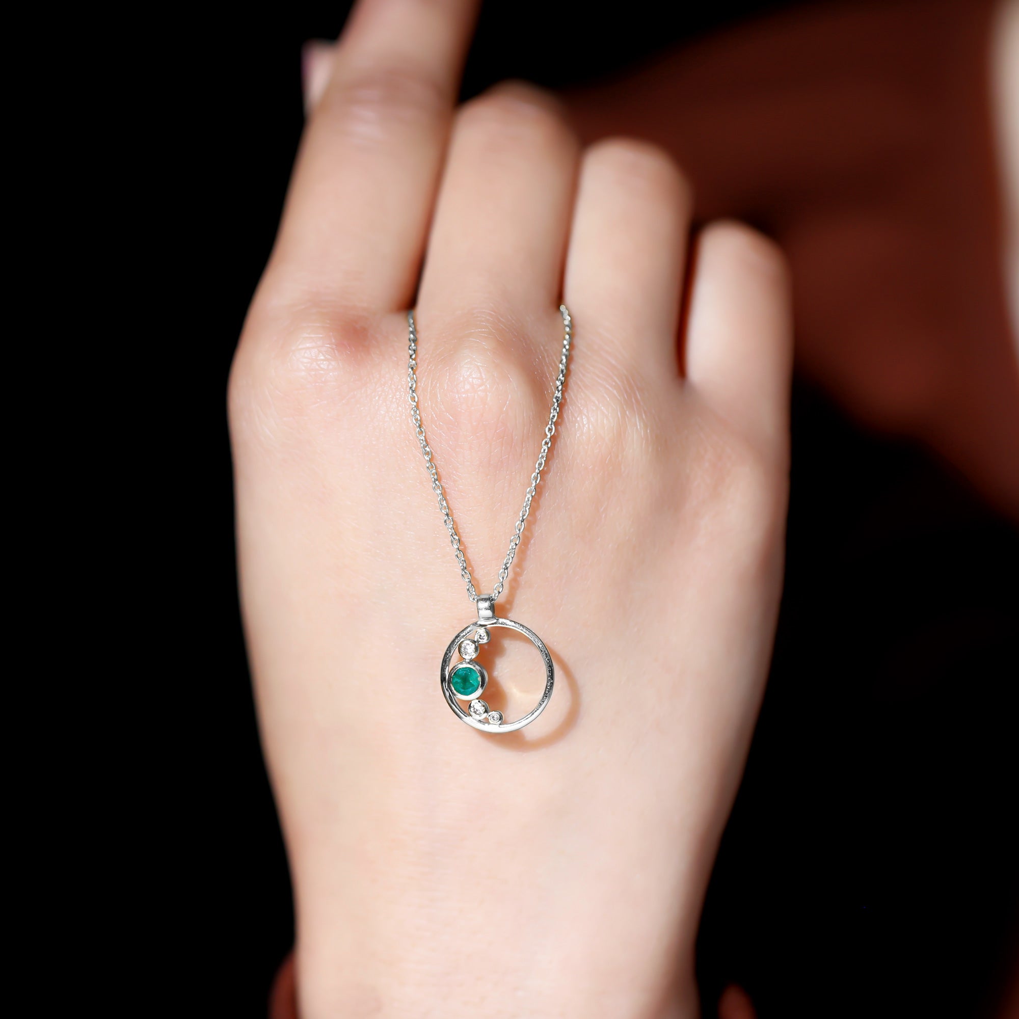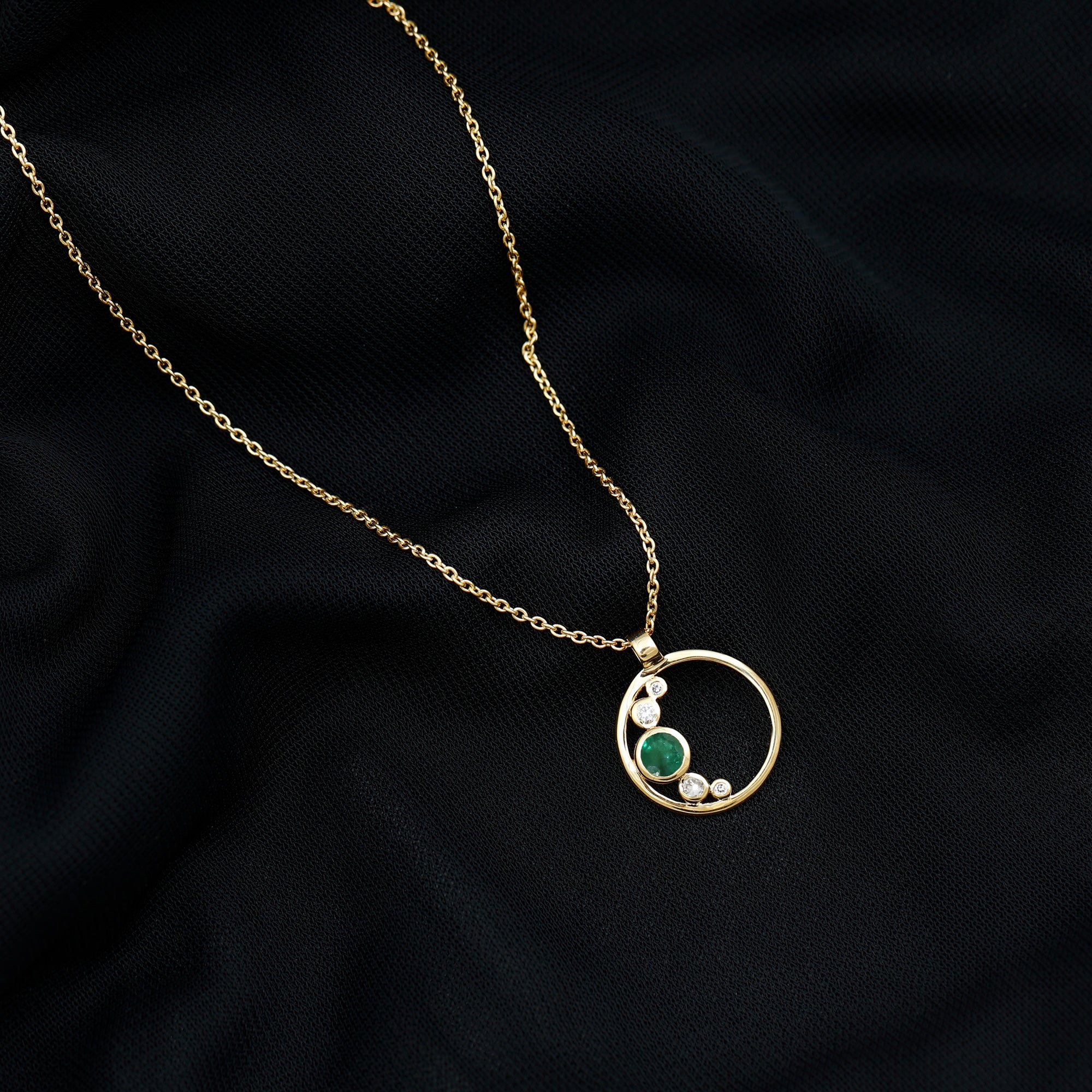 Bezel Set Emerald and Diamond Open Circle Necklace