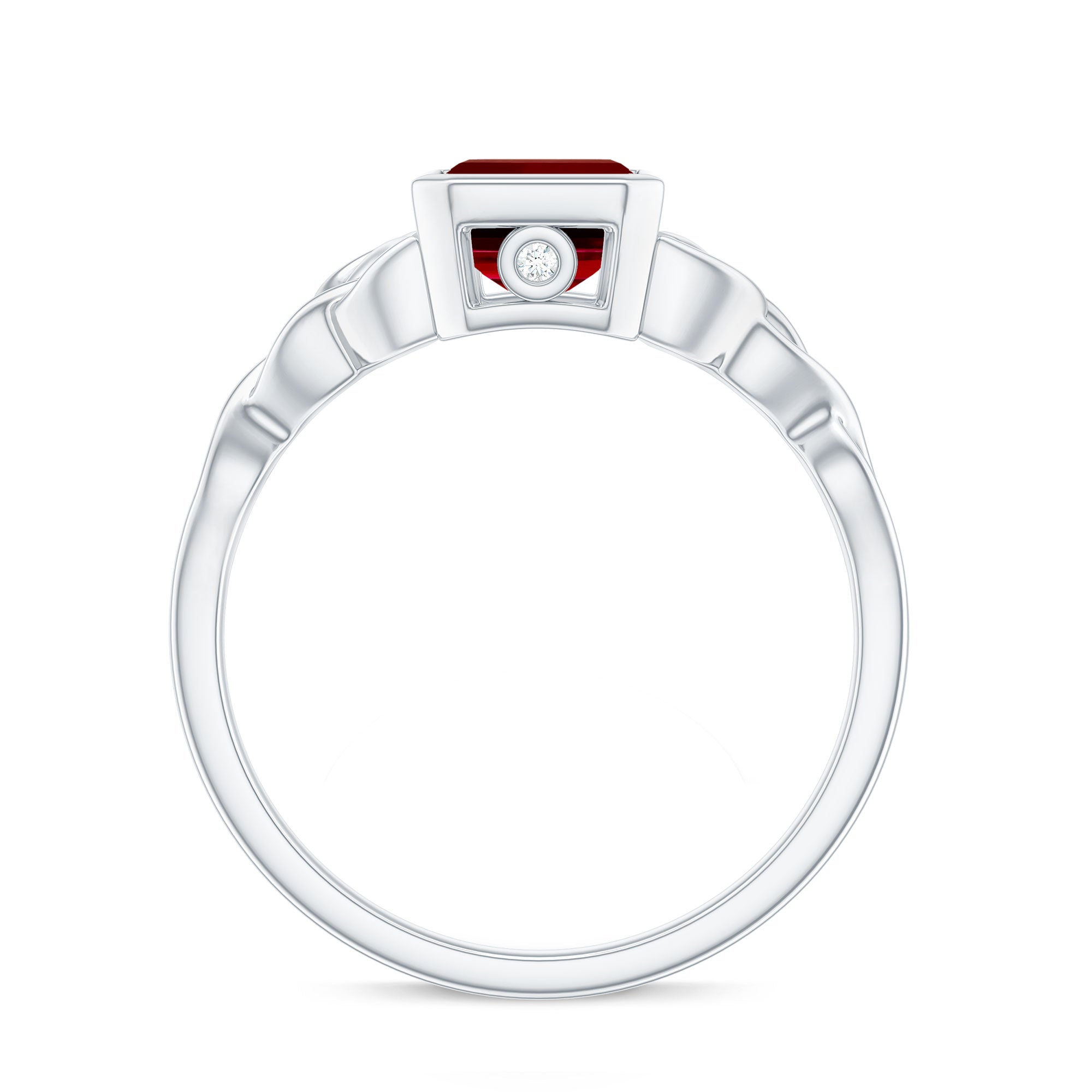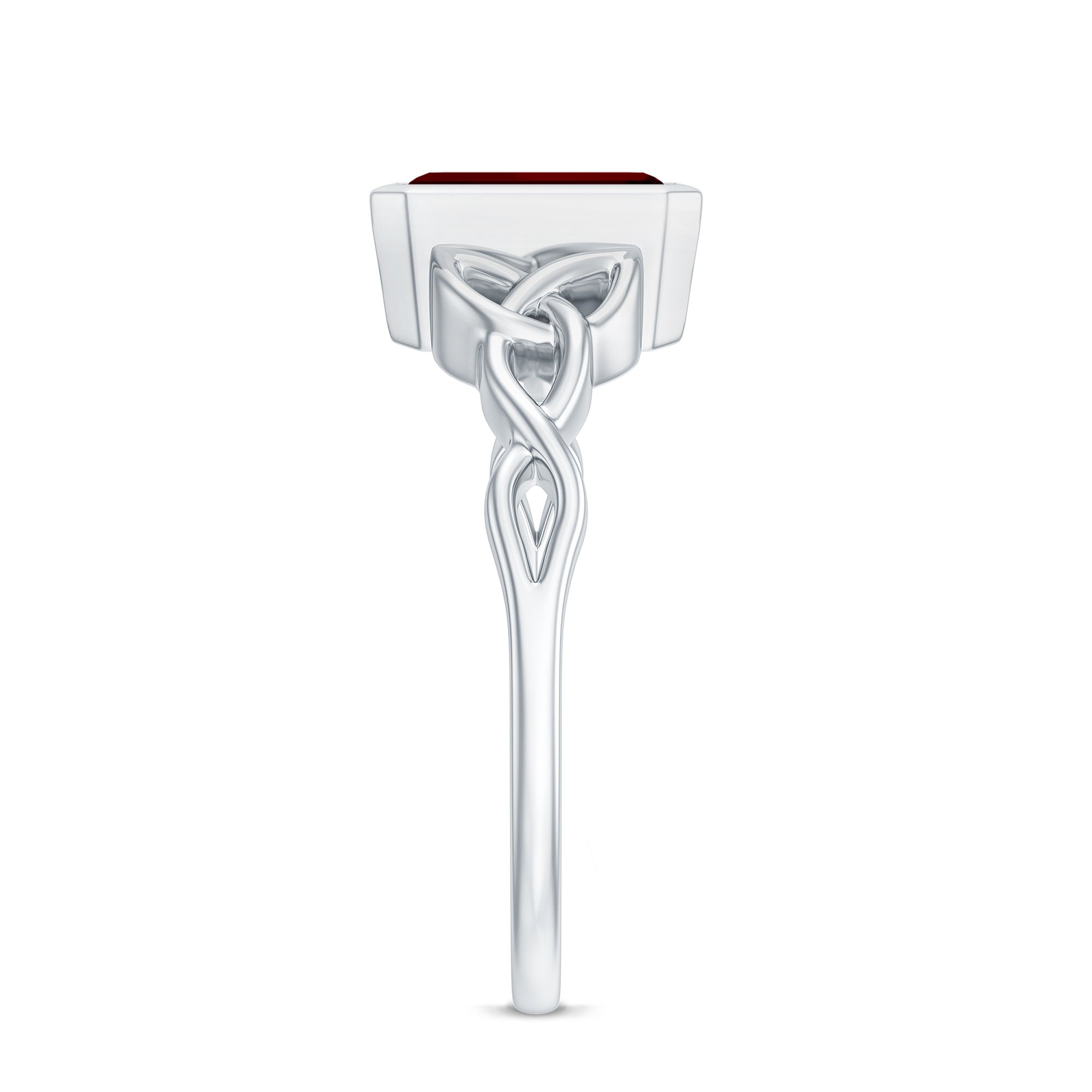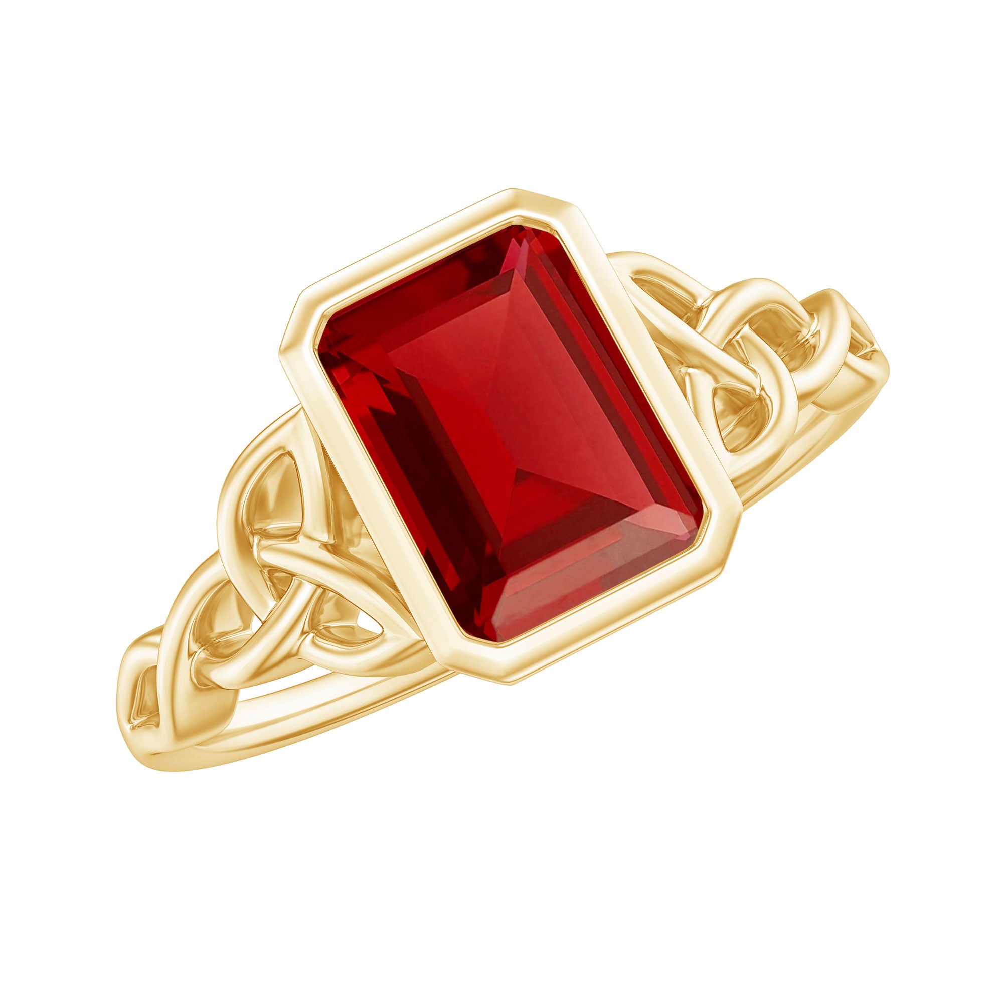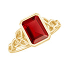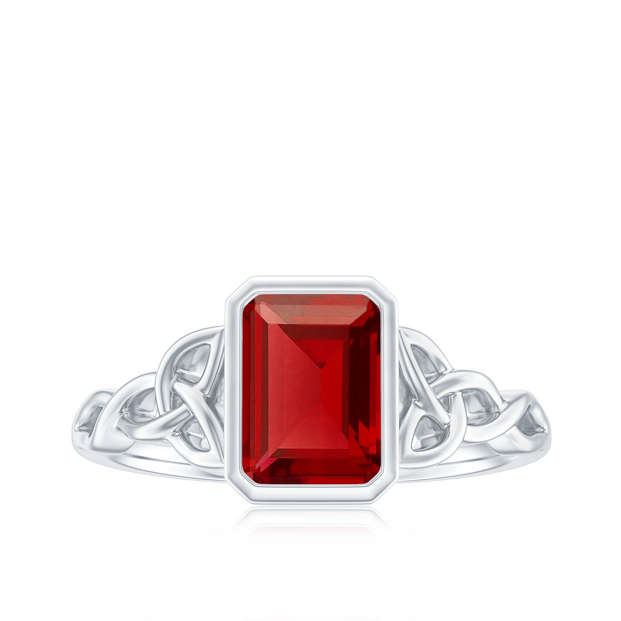 Bezel Set Emerald Cut Lab Created Ruby Celtic Engagement Ring