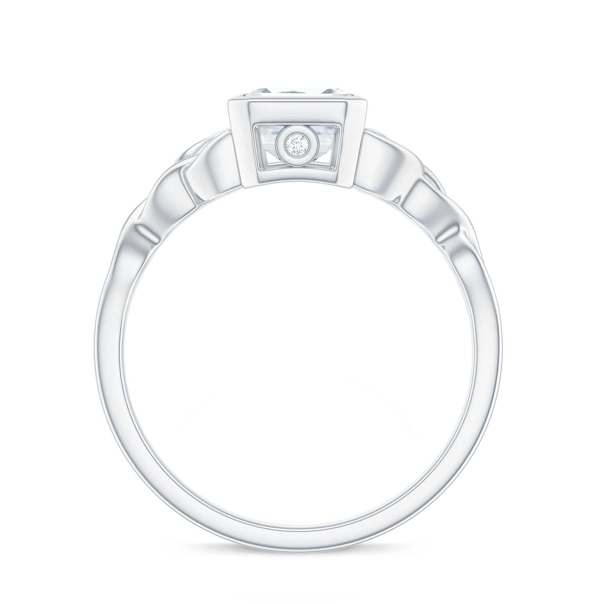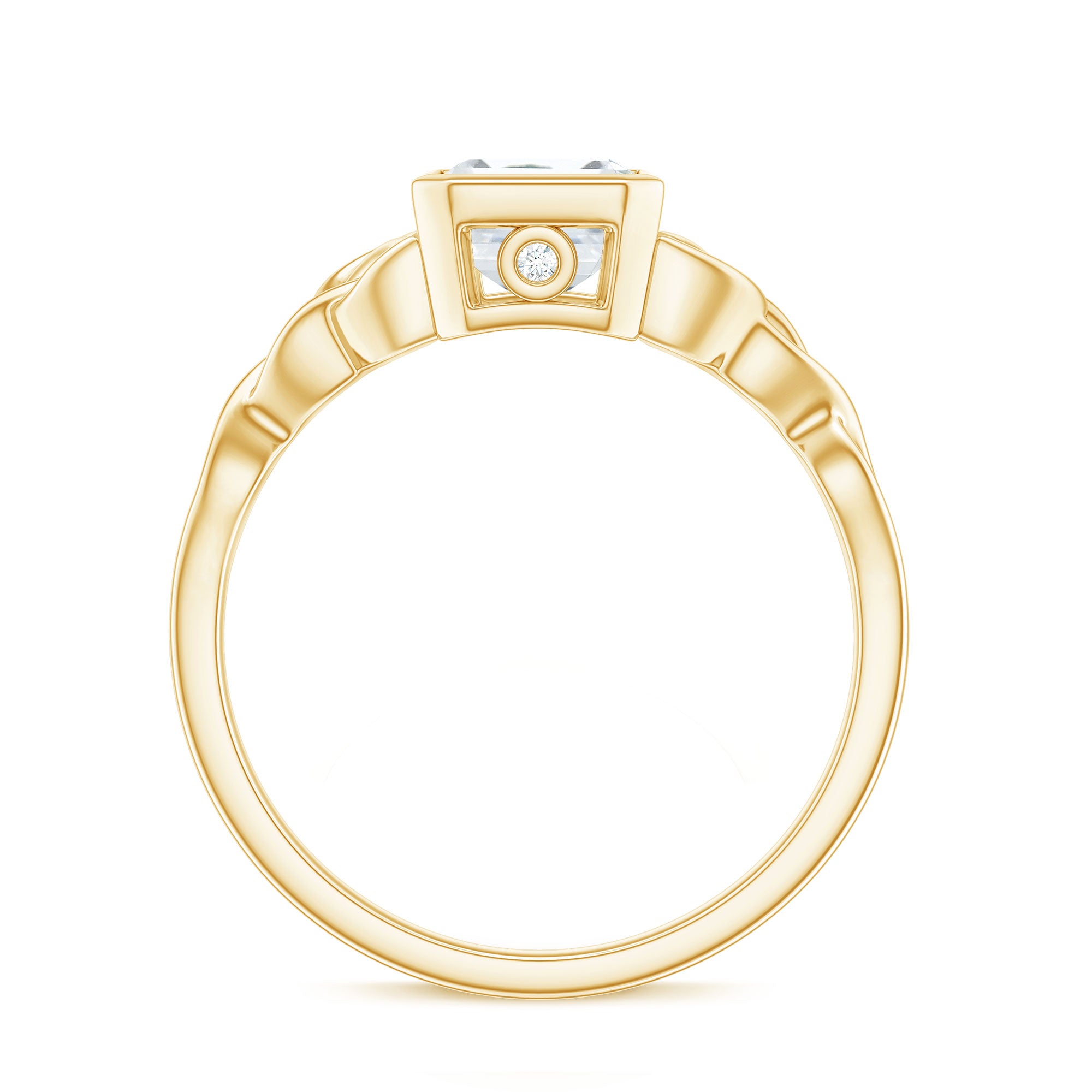 Bezel Set Emerald Cut Moissanite Celtic Engagement Ring