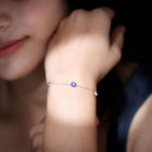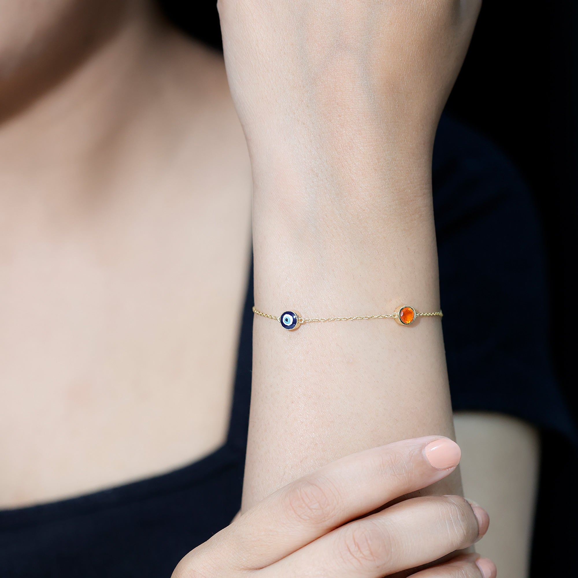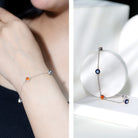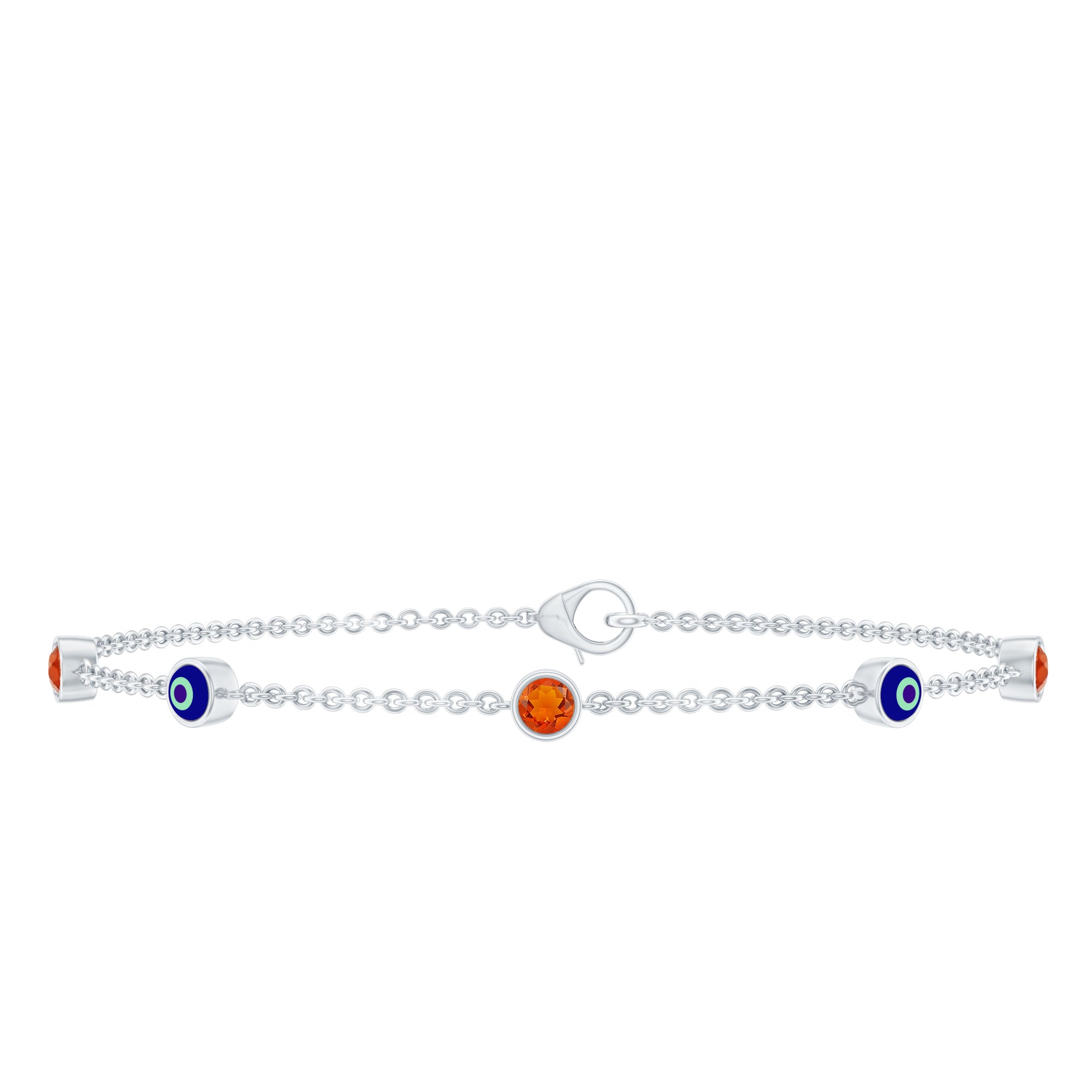 Bezel Set Fire Opal Evil Eye Station Bracelet for Women