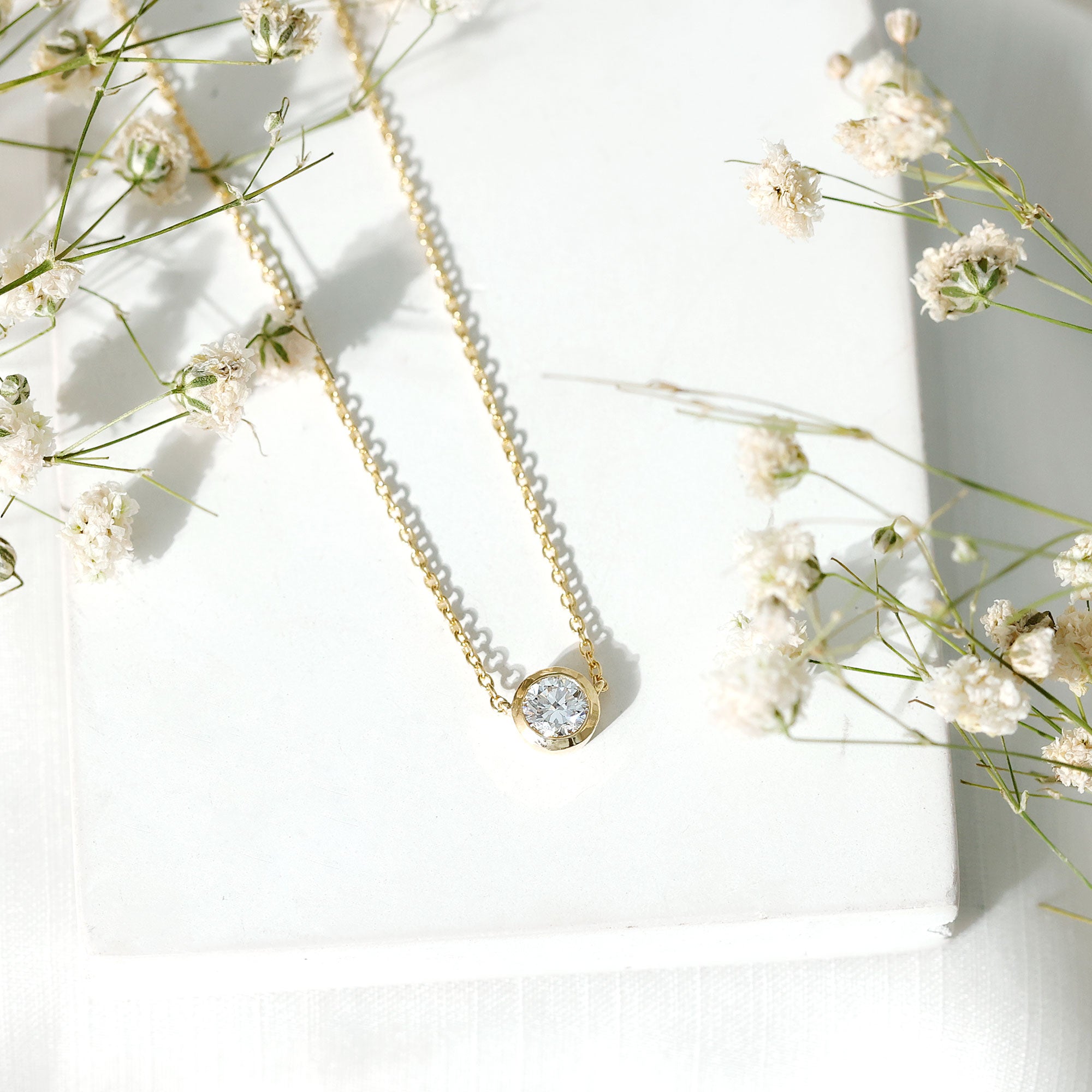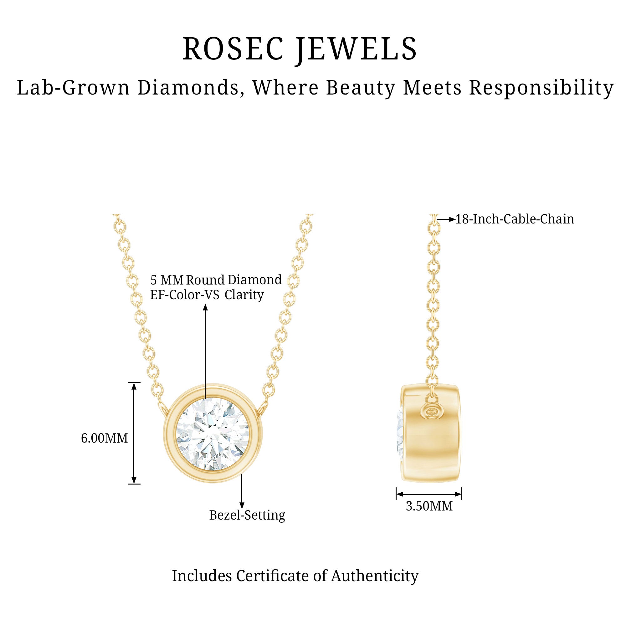 Bezel Set Lab 5 MM Round Diamond Solitaire Necklace