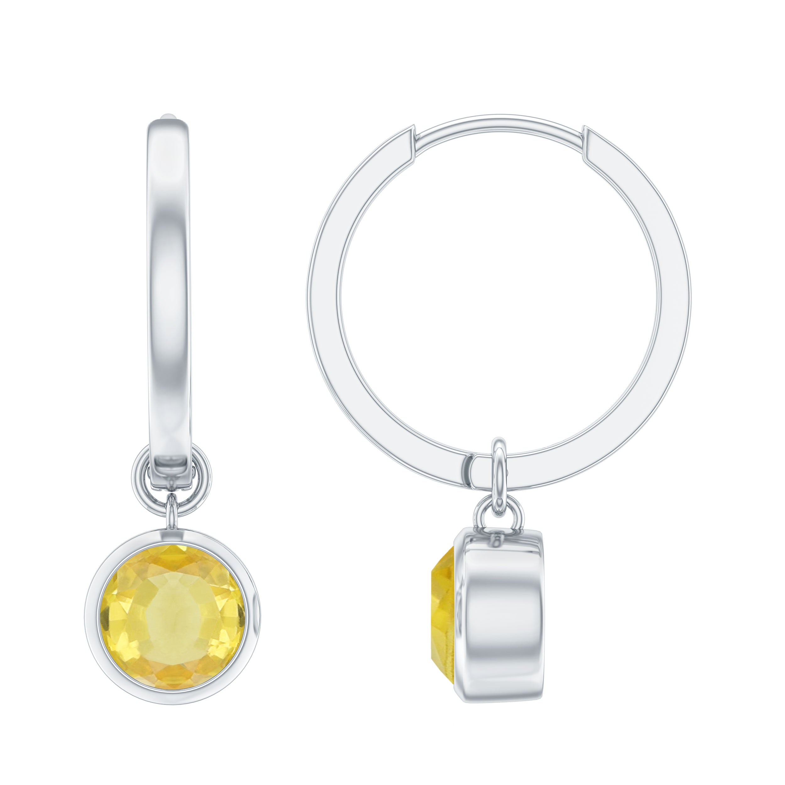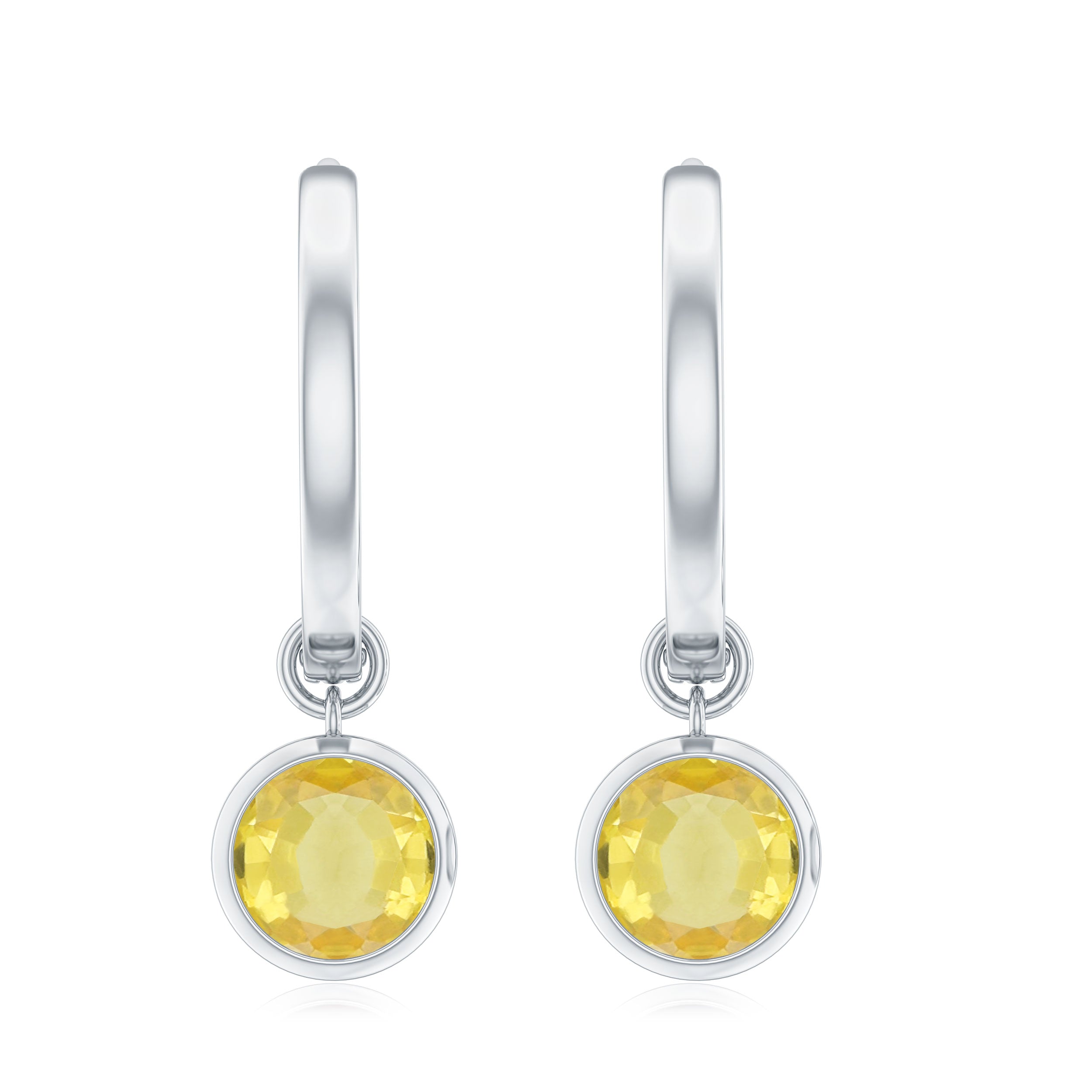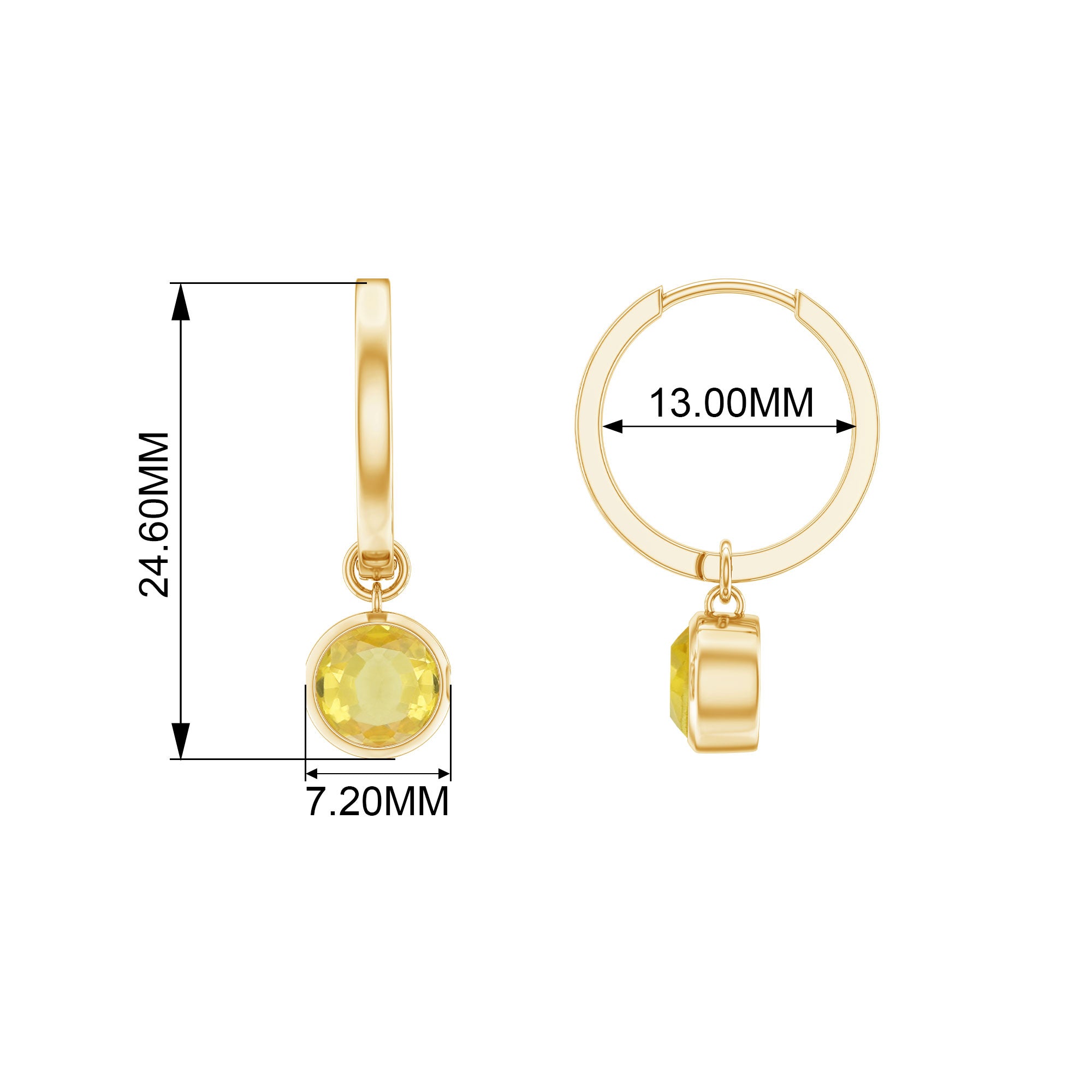 Bright with effortless charm, these Lab Grown Yellow Sapphire Earrings are designed to bring a touch of everyday elegance to your style. Each earring is embellished with a 6 MM round shaped lab created yellow sapphire that captures light beautifully, adding a hint of color and sparkle to your daily look. The sapphire hangs gently from a sleek hinged hoop, creating a simple yet graceful design that moves naturally with you. The gemstone is securely held in bezel setting, ensuring both comfort and durability for everyday wear. Ethically crafted in a sustainable environment, these Yellow Sapphire Hoop Earrings combine fine craftsmanship with a thoughtful approach to beauty, perfect for those who value style with purpose. Their minimal and simple design makes them easy to pair with any outfit, from workwear to casual attire, adding just the right amount of sophistication without feeling overdone. Whether you are heading to the office, meeting friends, or enjoying a relaxed day out, these Yellow Gemstone Earrings will keep you glowing effortlessly. Lightweight and comfortable, they are made for all-day wear while maintaining a timeless look. Each pair reflects the balance between modern design and classic elegance, making them a versatile staple in any jewelry collection.