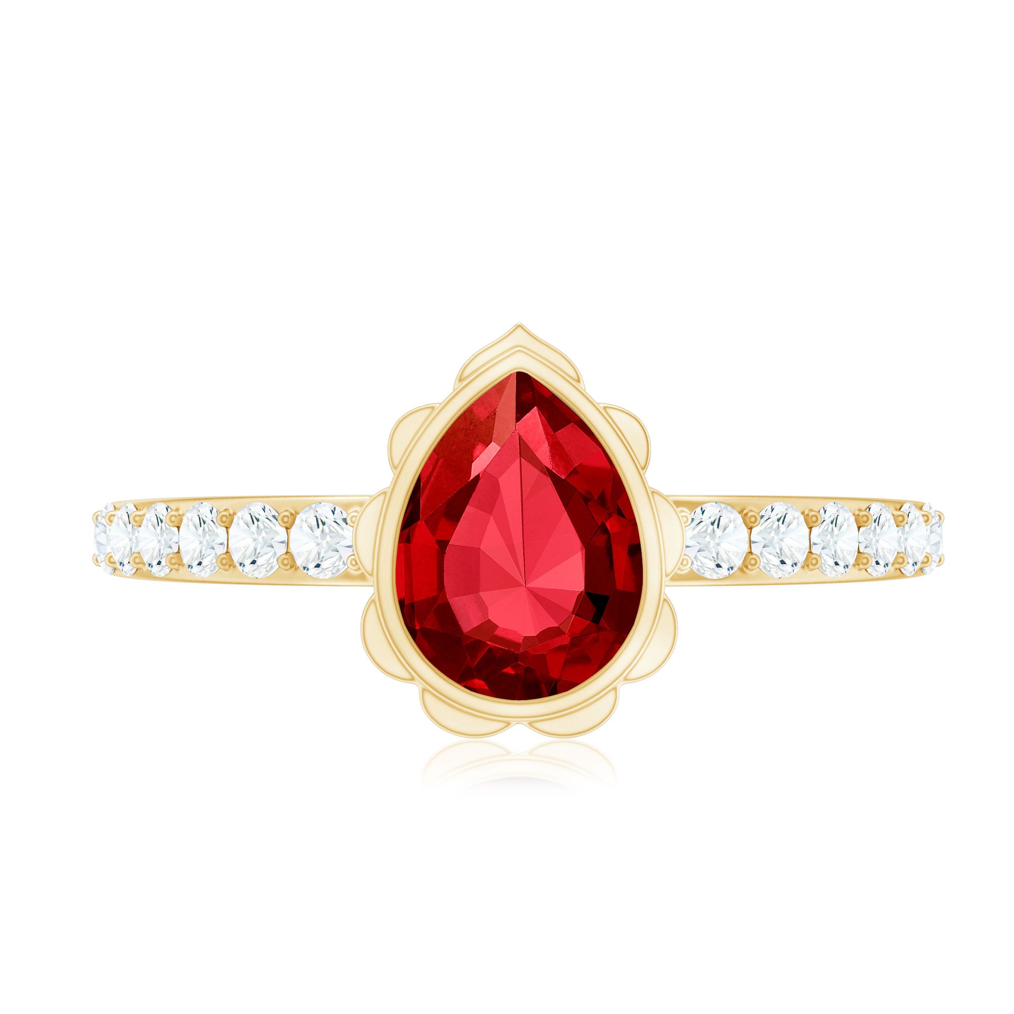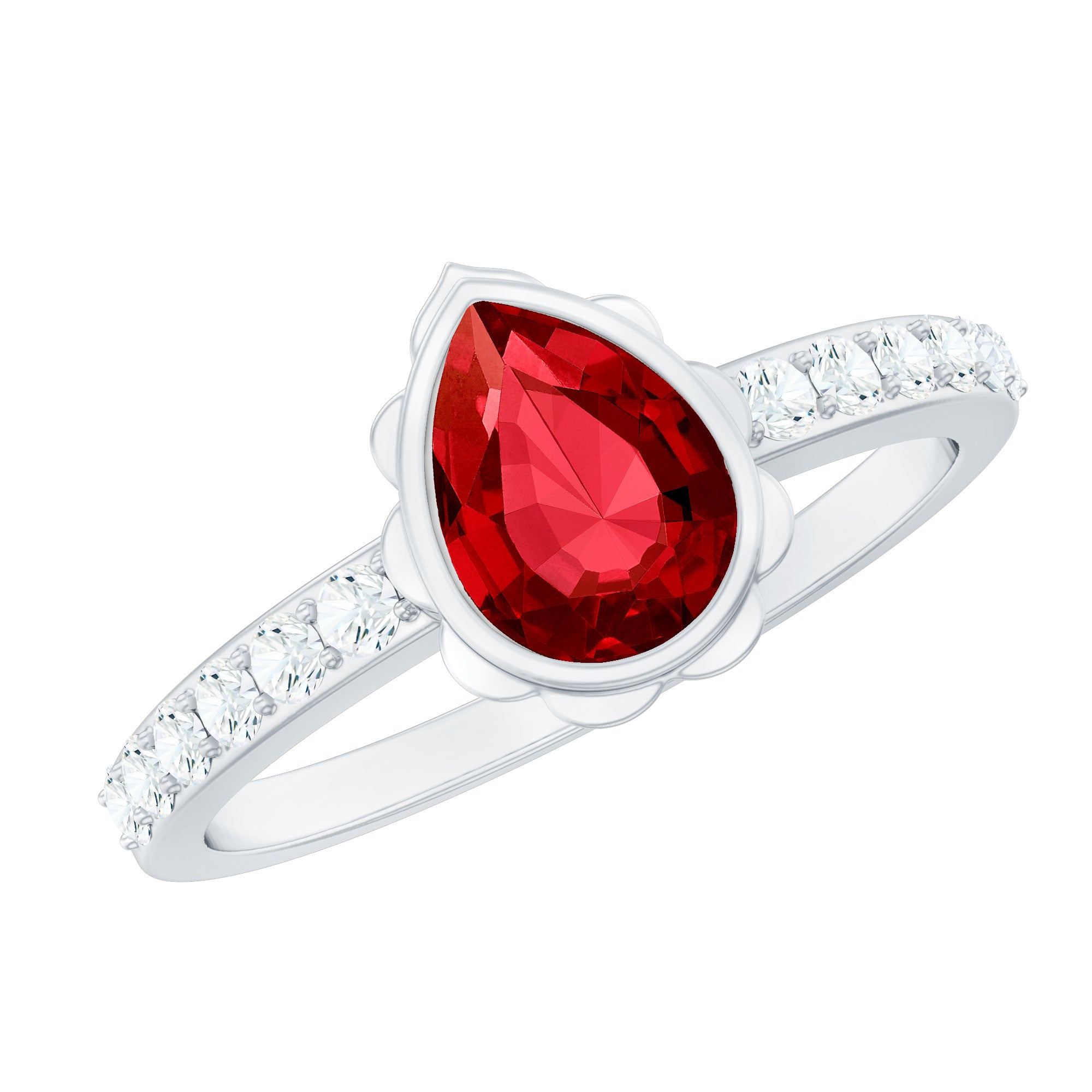 Bezel Set Lab Grown Ruby Teardrop Engagement Ring