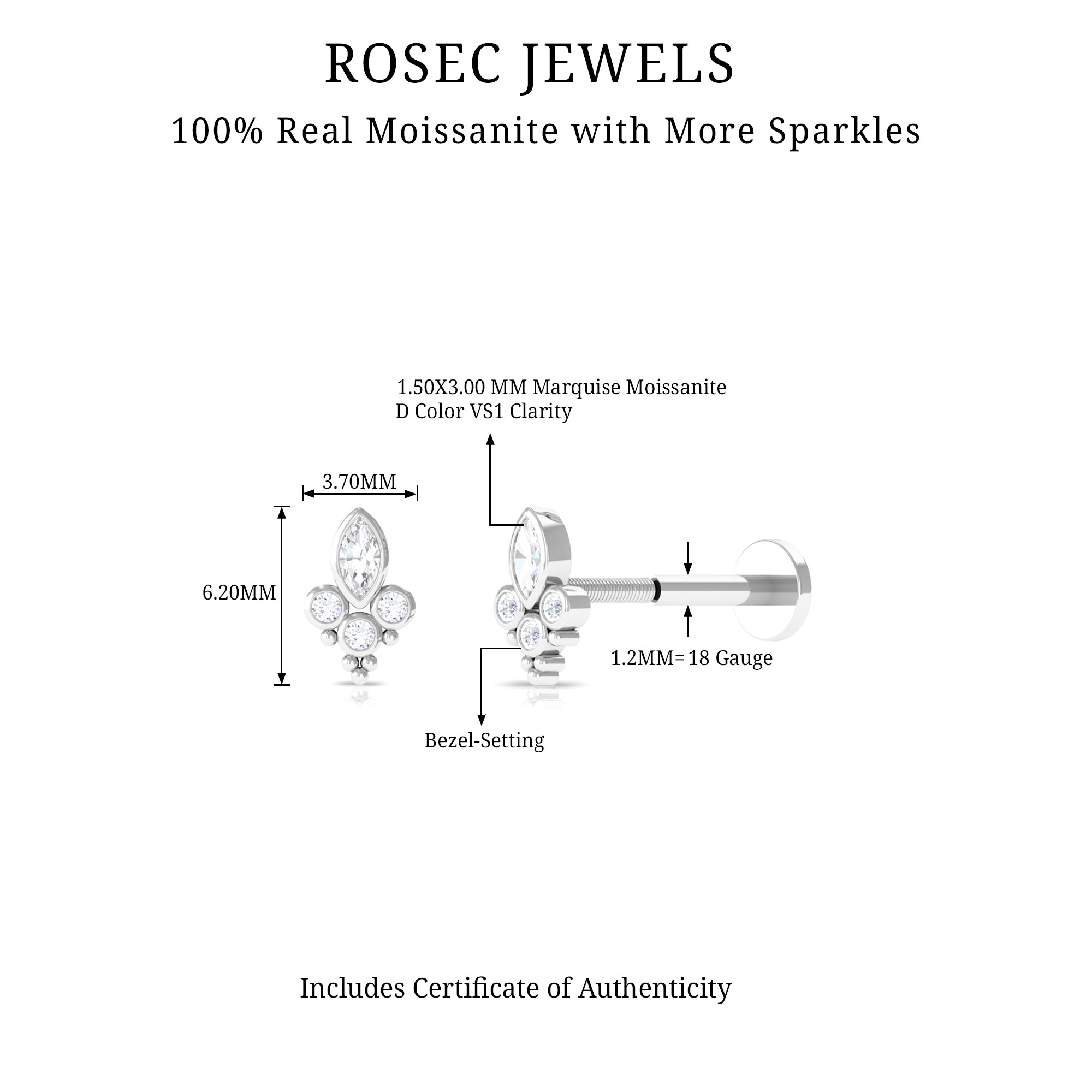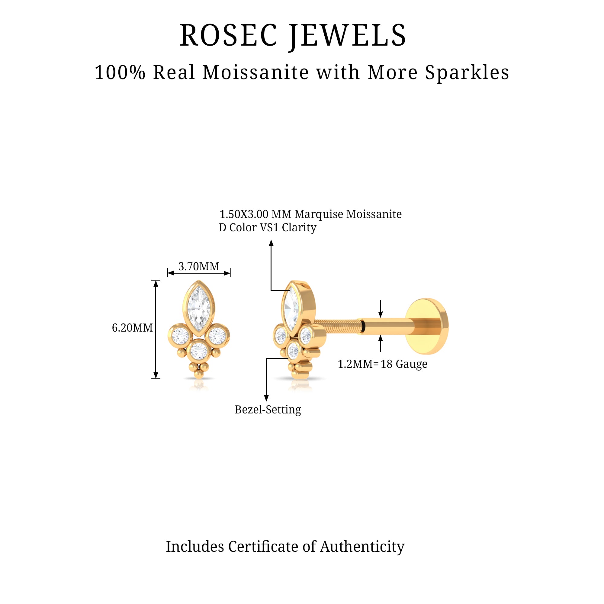 Adorned with Marquise and Round Cut Moissanites in Bezel Setting, and featuring a Gold Beaded Design, the Conch Earring is a stunning piece of designer jewelry that is guaranteed to turn heads. This Cartilage Earring makes for a perfect gift on occasions such as Birthdays, Christmas, or Anniversaries, surprising your special someone with an elegant and unique gift that they will cherish forever.