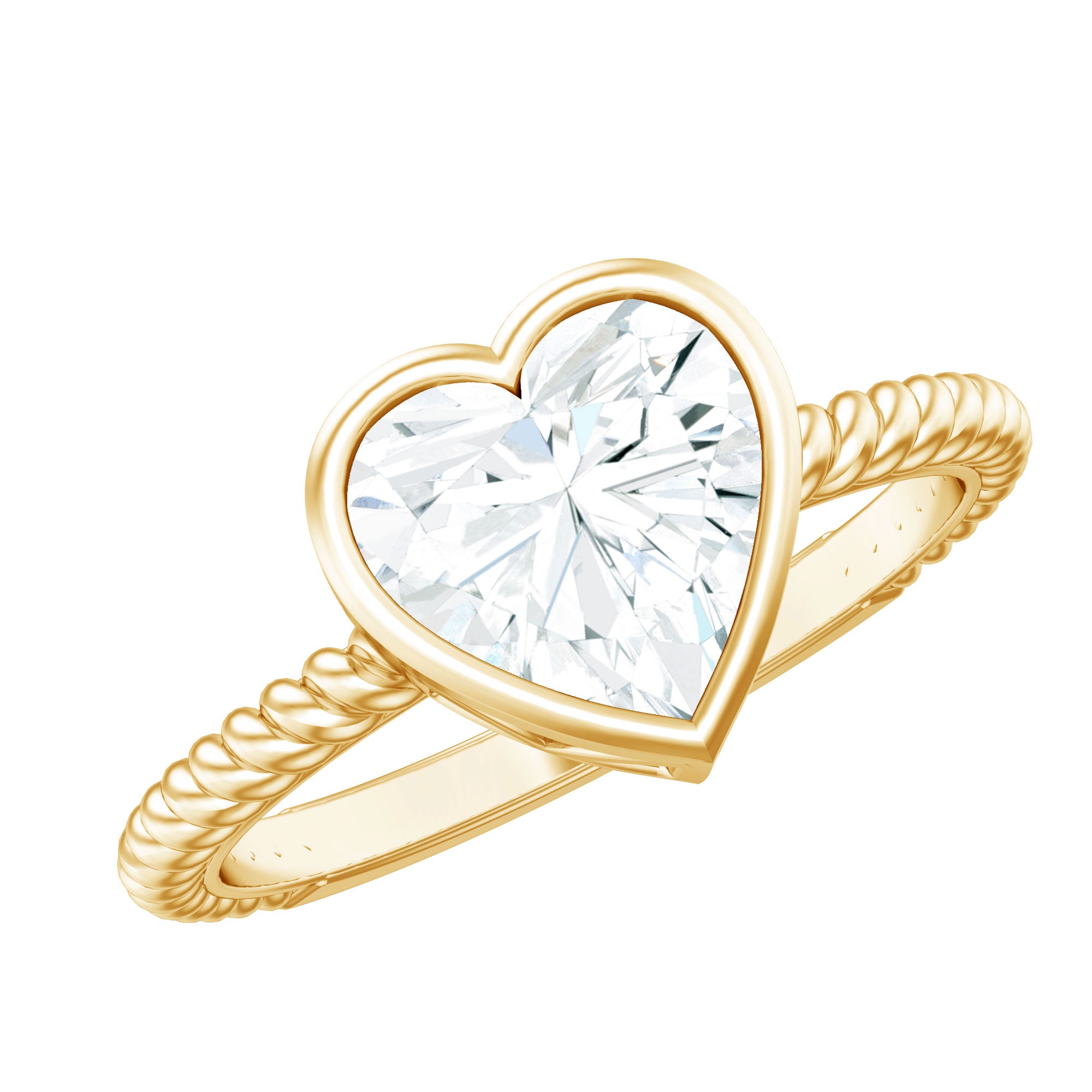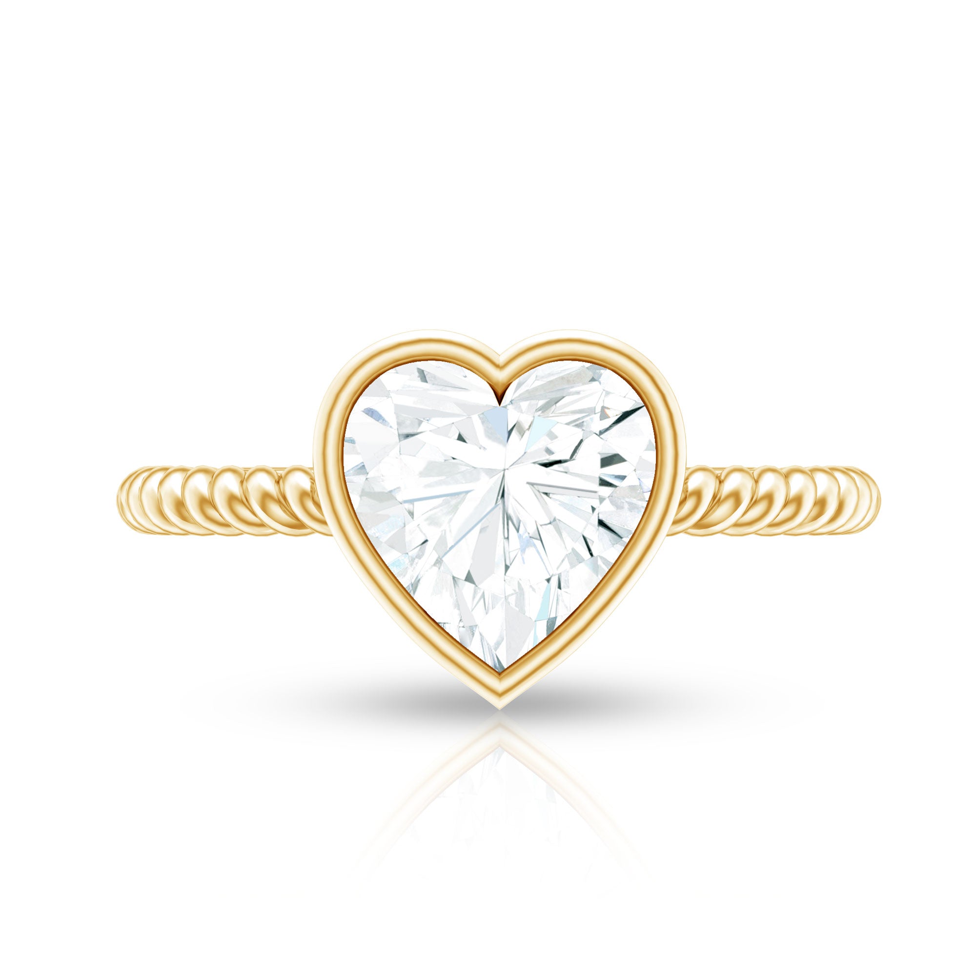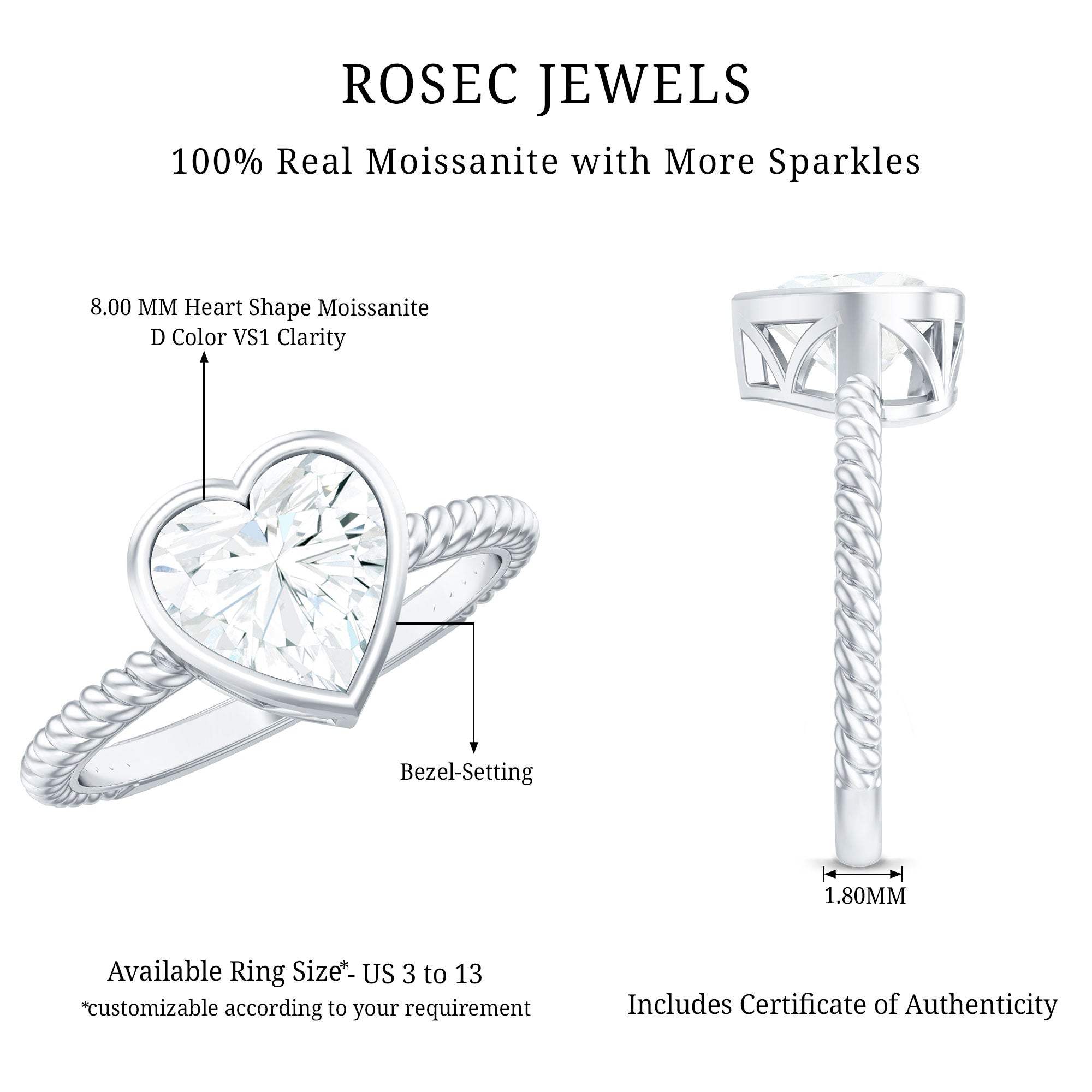 Celebrate your love with this stunning Heart Shaped Moissanite Engagement Ring, a beautiful symbol of devotion and connection. At the center of this elegant ring sits an eye-catching 8 MM heart shaped moissanite, set in bezel setting. The heart shape adds a romantic and personal touch, making it a perfect choice for an engagement that speaks from the heart. The band features a unique twisted rope design, symbolizing two lives intertwined in harmony. The contrast between the smooth sparkle of the moissanite and the textured band makes this Heart Engagement Ring truly special. Ideal for marking a memorable proposal or celebrating your commitment, this Promise Engagement Ring combines meaningful design with everyday wearability. It is crafted to shine bright and last a lifetime, just like the love it represents. Presented in a beautiful jewelry box, this Moissanite Solitaire Engagement Ring is ready to become a cherished part of your love story, blending classic romance with a touch of modern style.