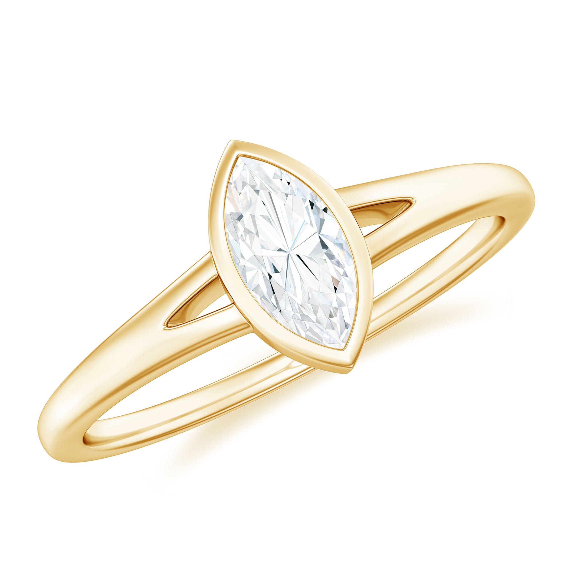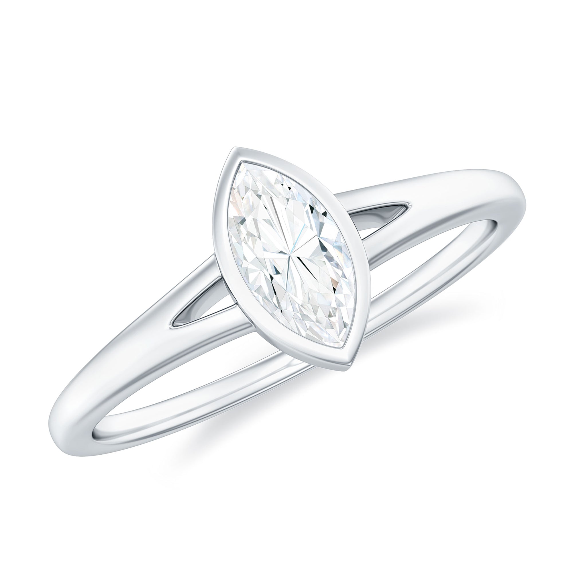 Bezel Set Moissanite Marquise Engagement Ring in Split Shank