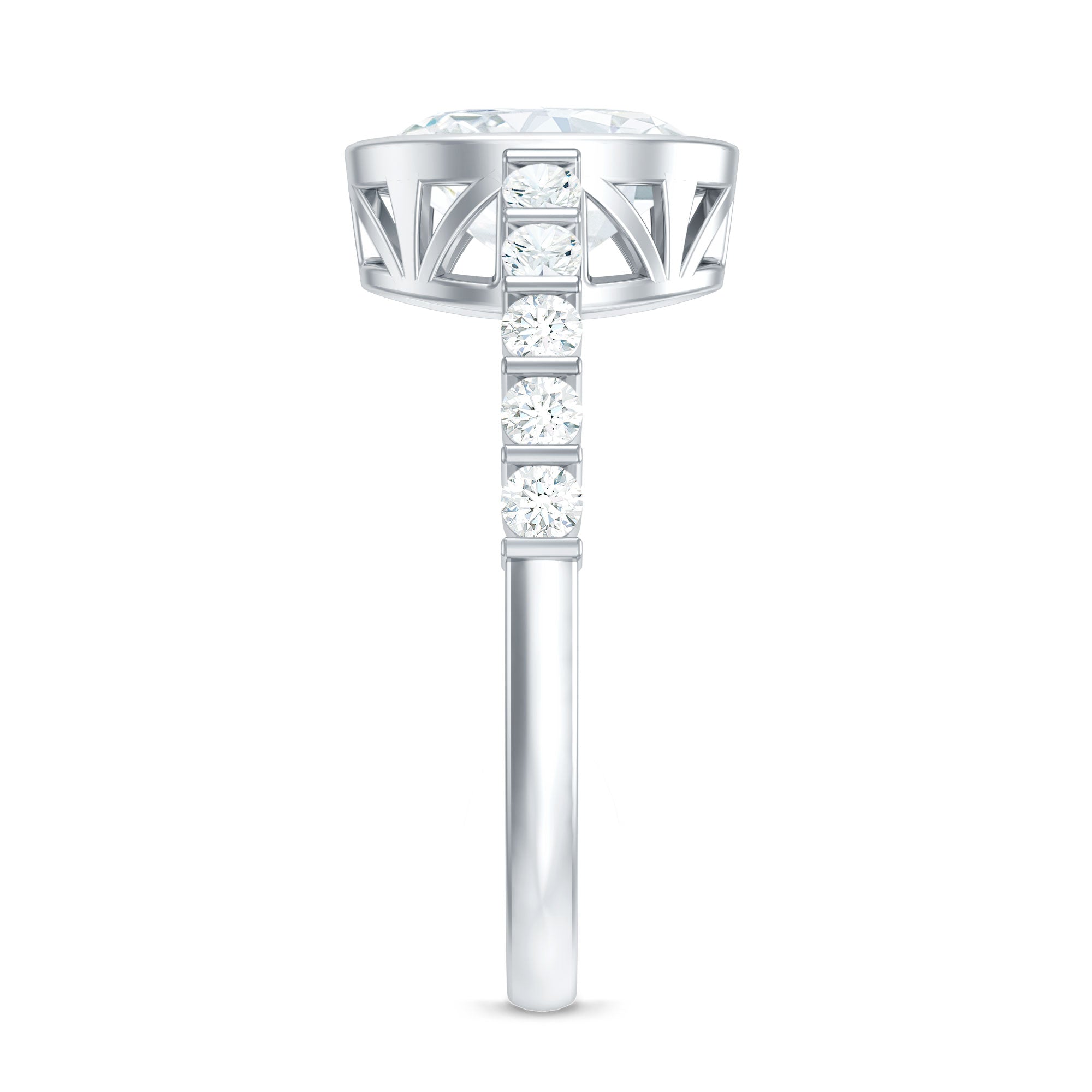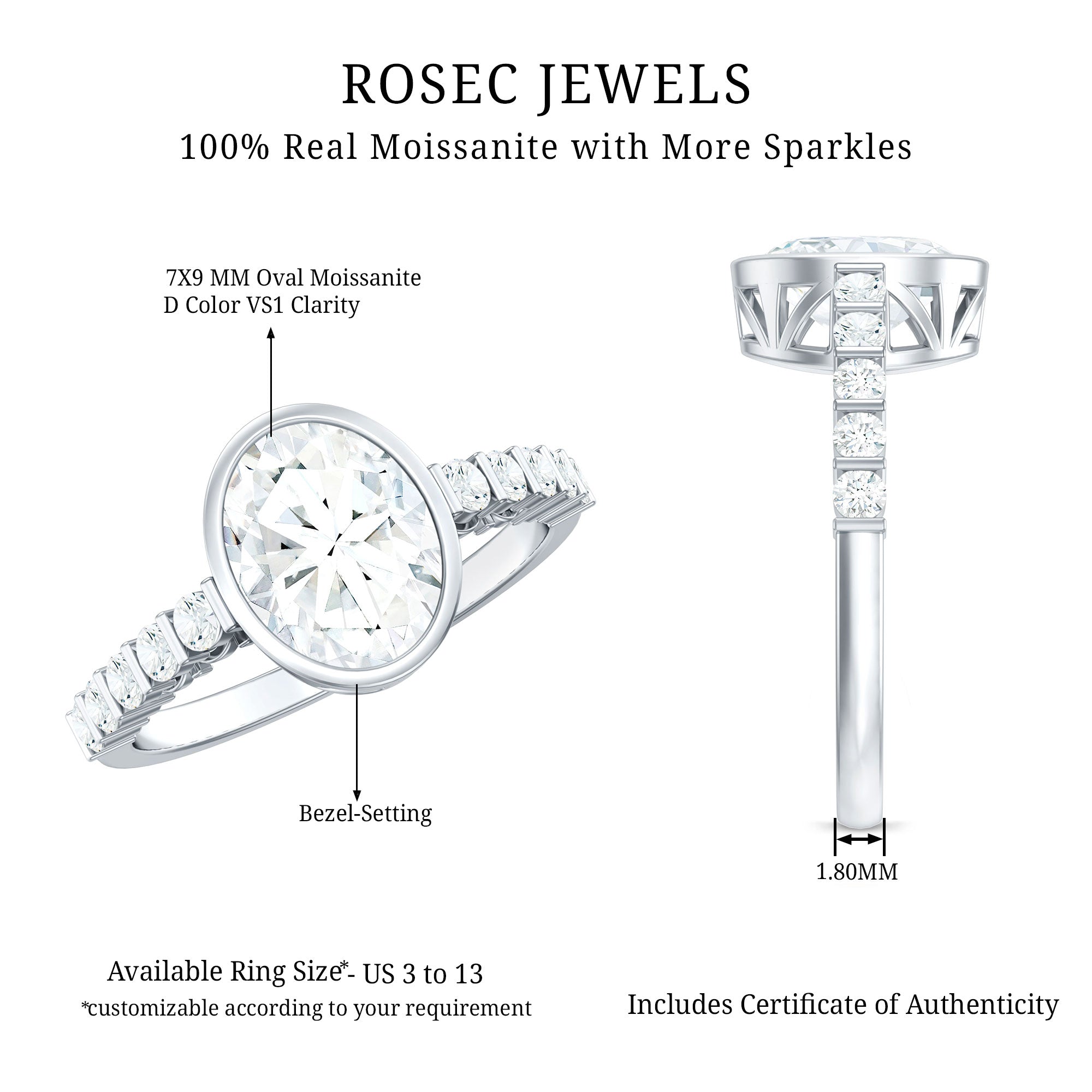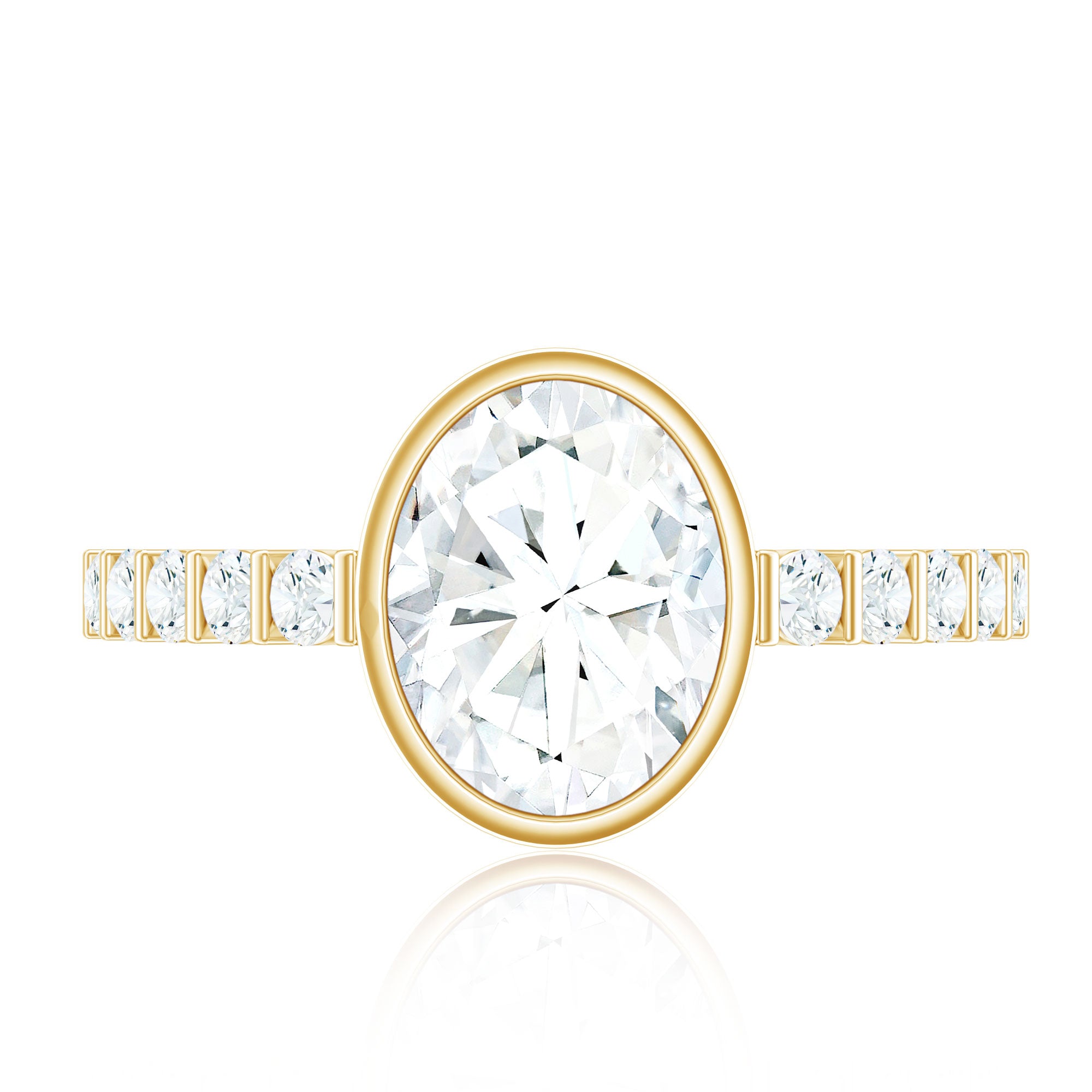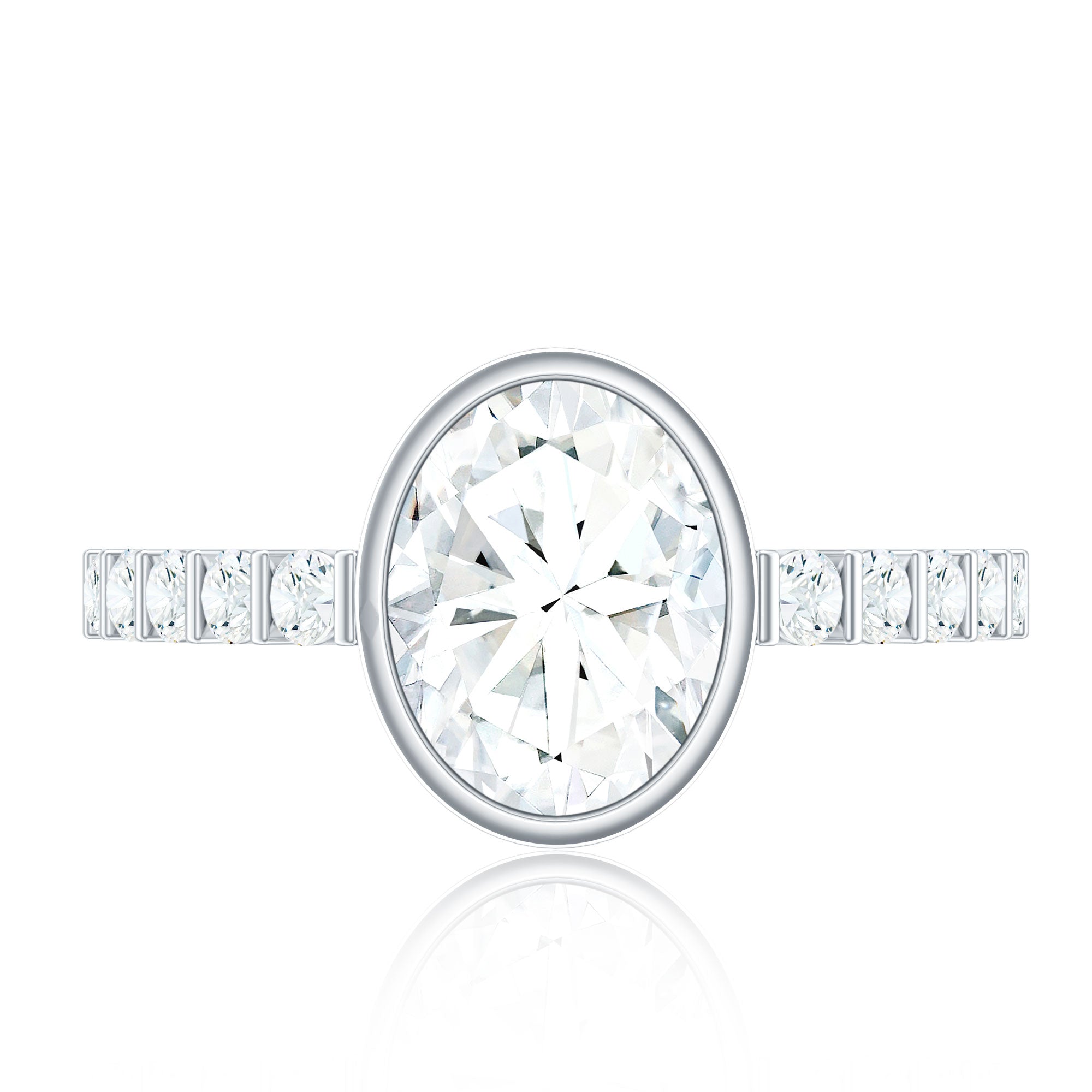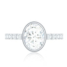 Bezel Set Moissanite Oval Engagement Ring with Side Stones