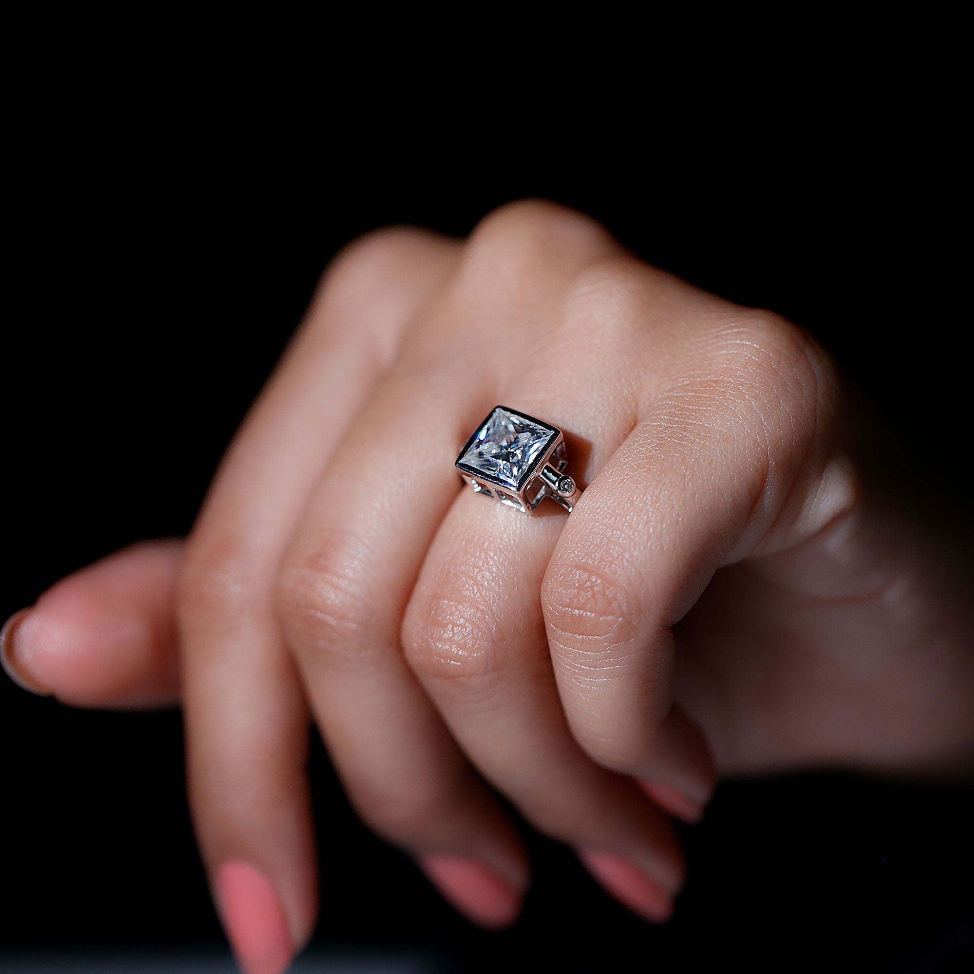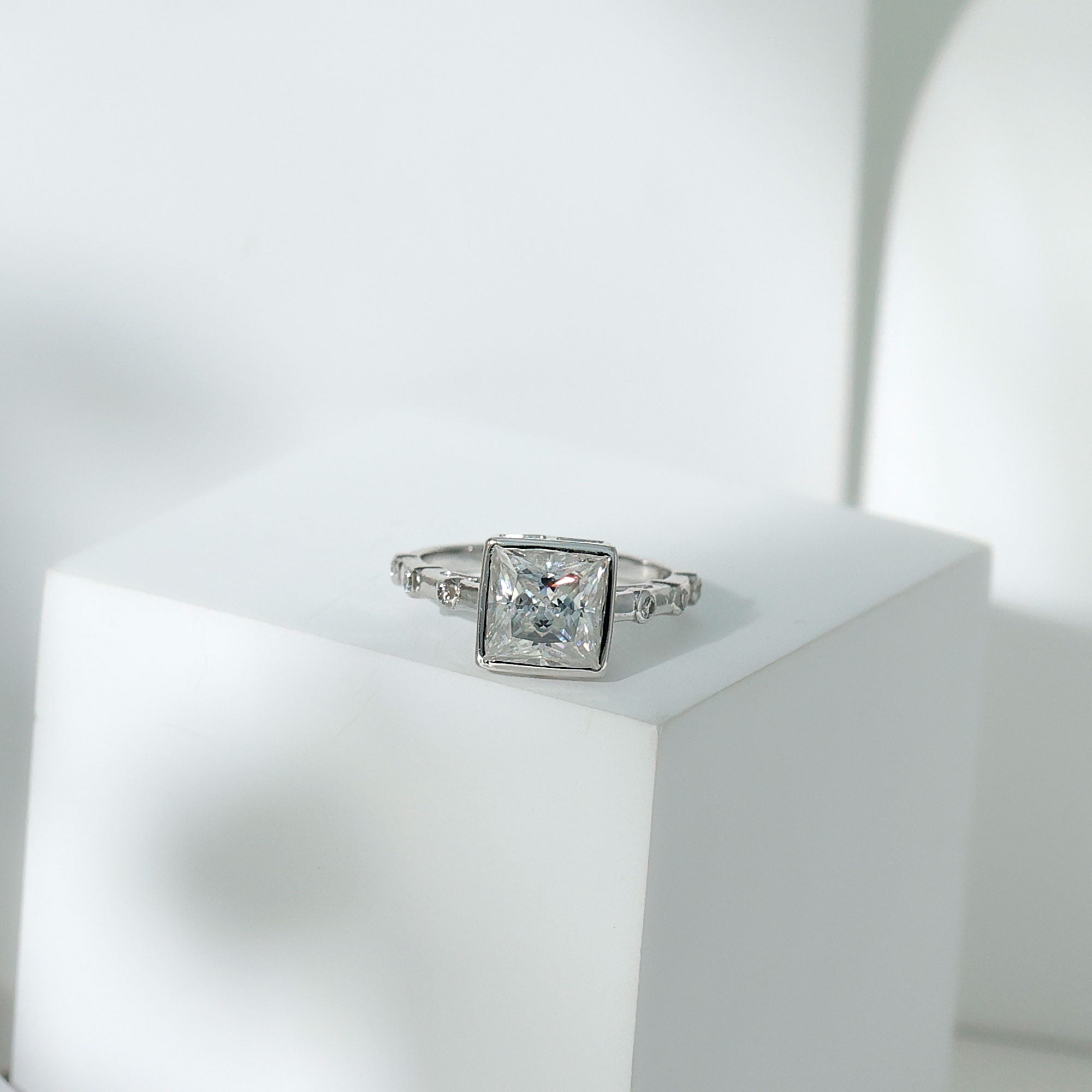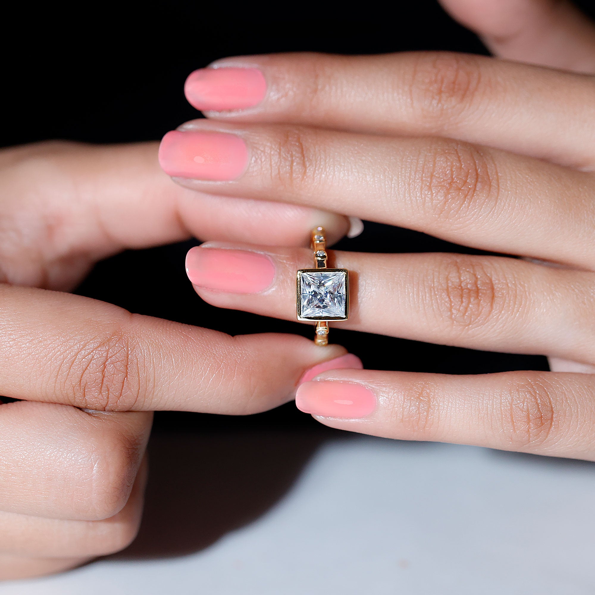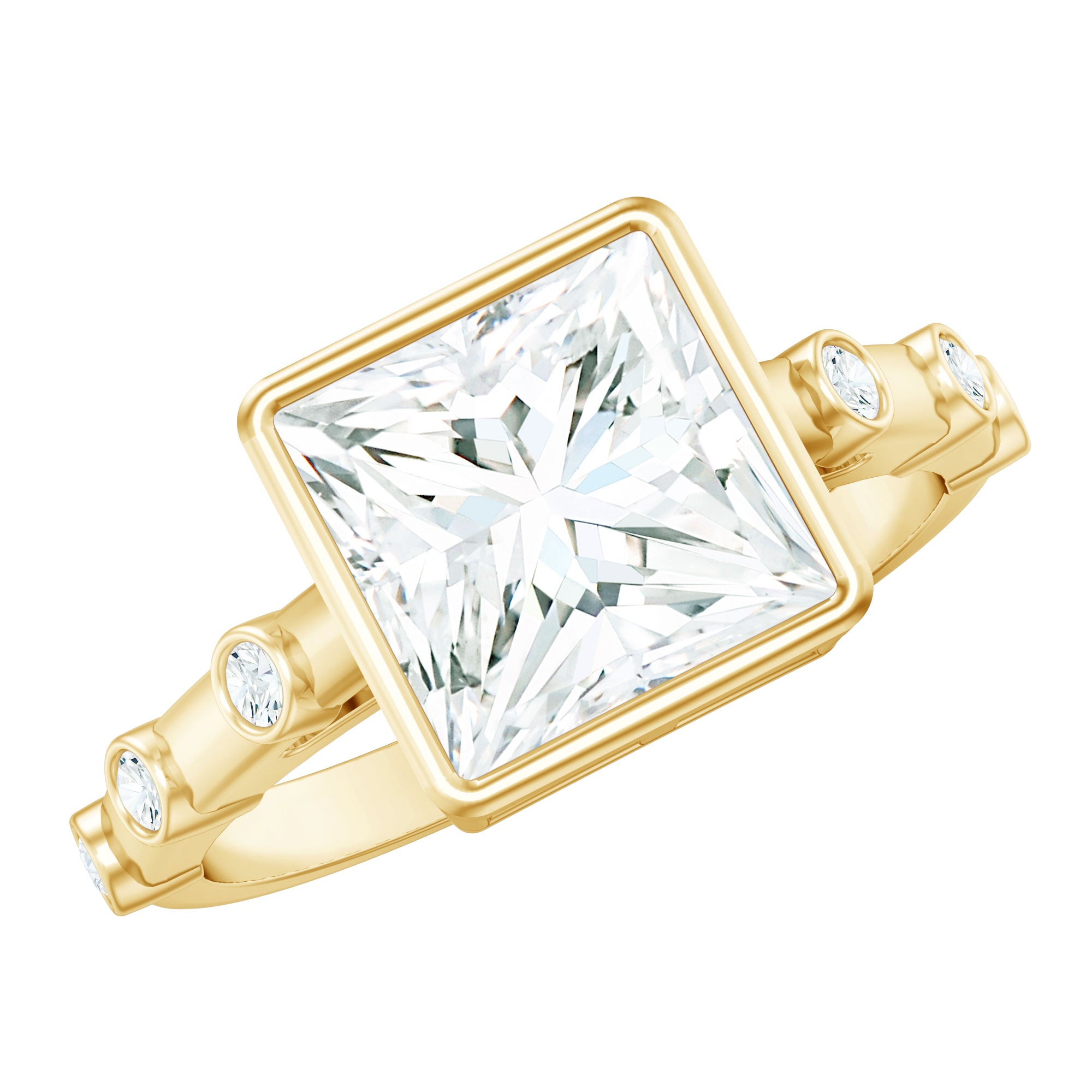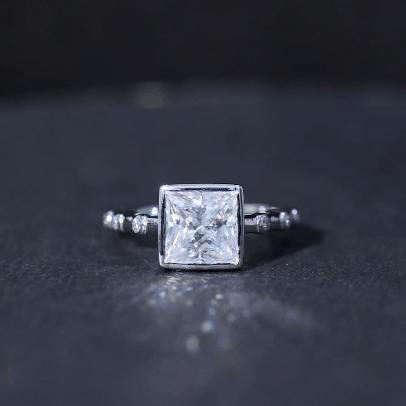 Bezel Set Moissanite Princess Cut Engagement Ring with Spaced Accent