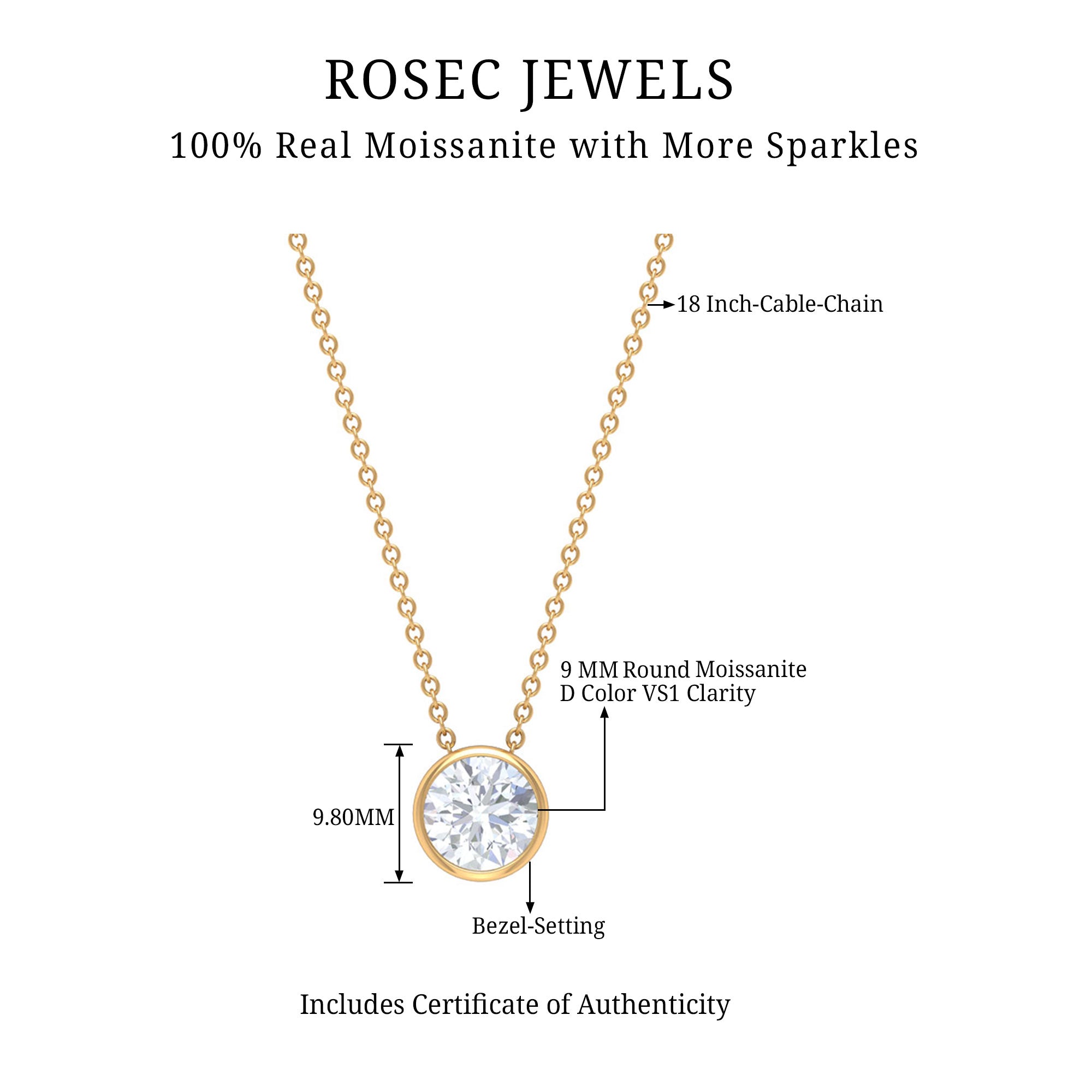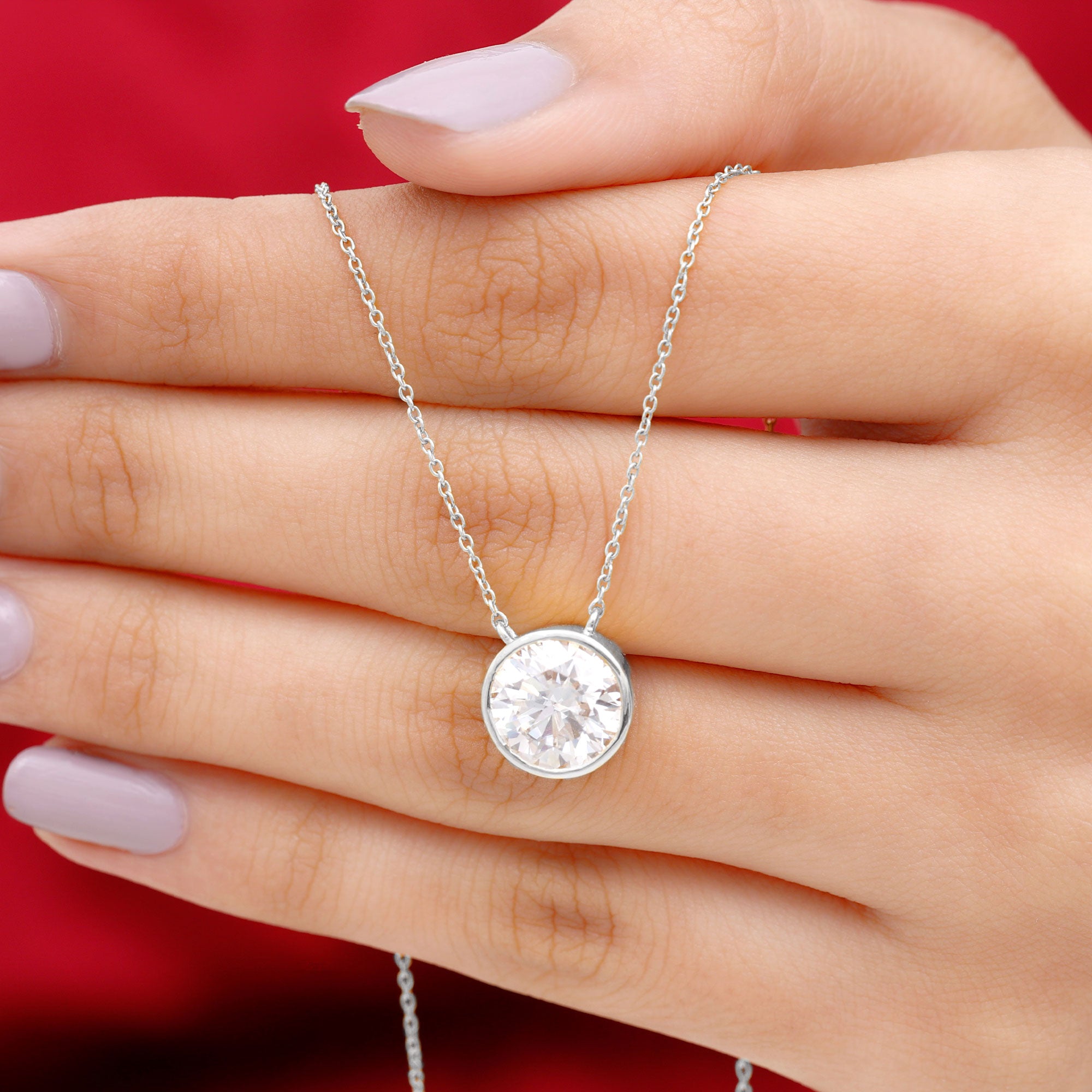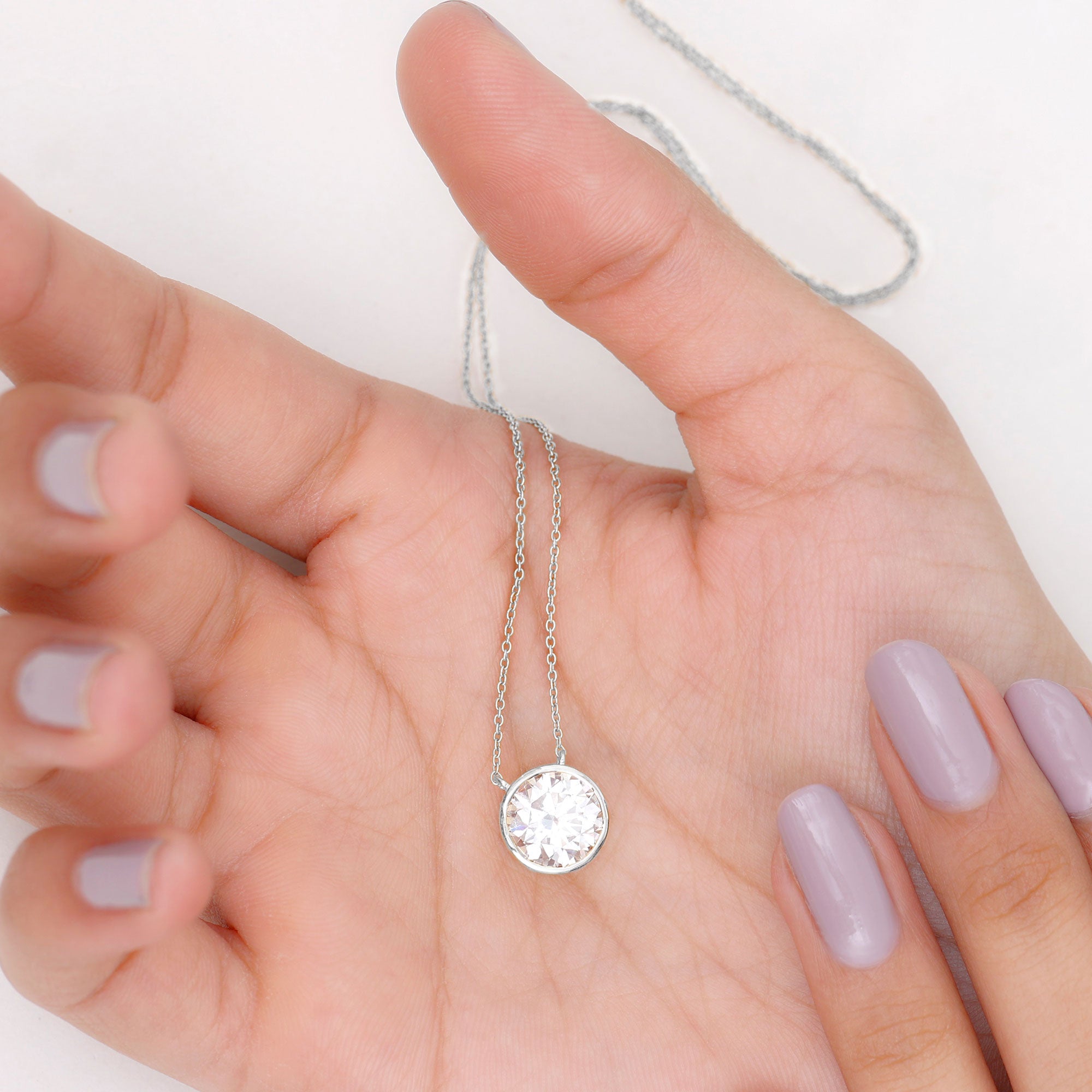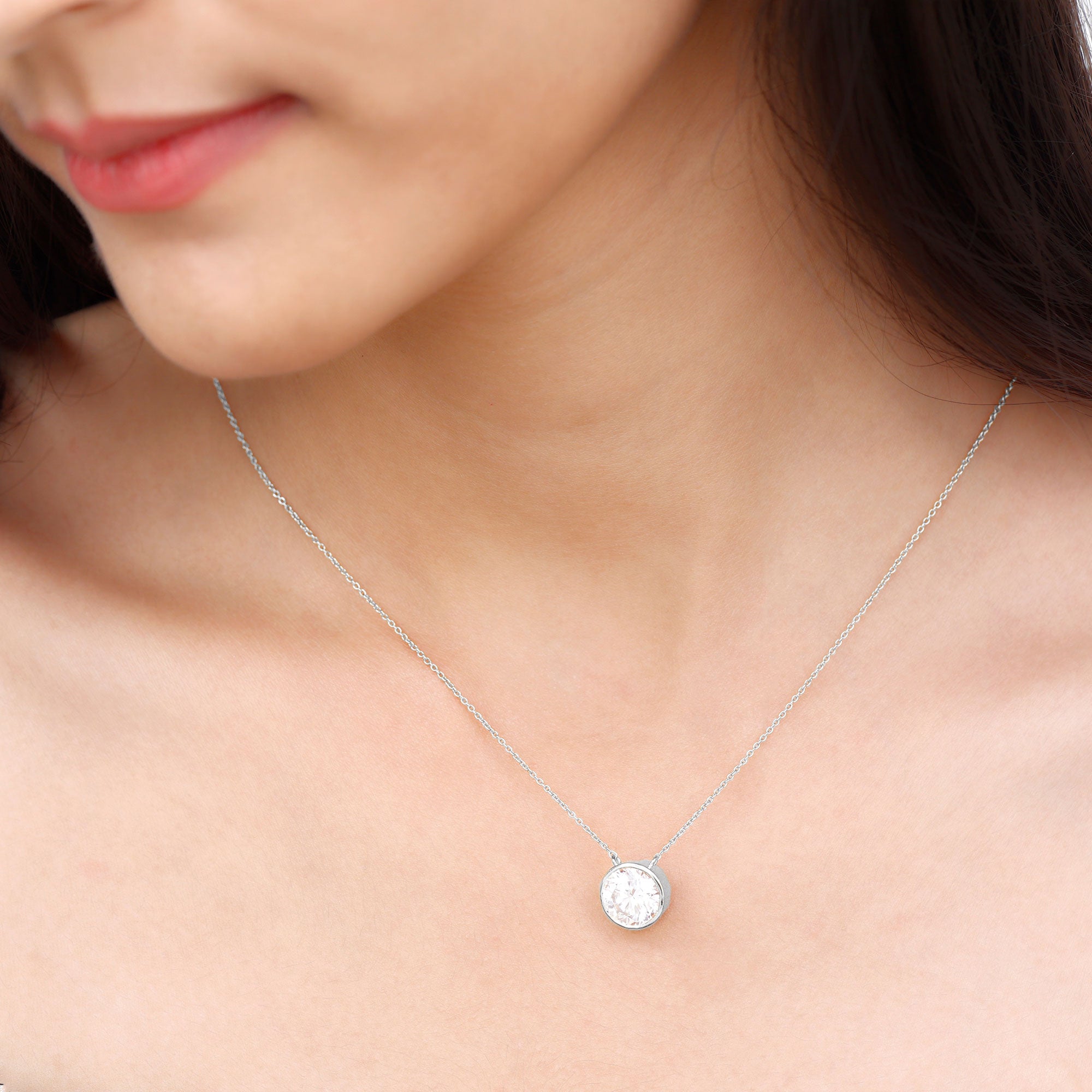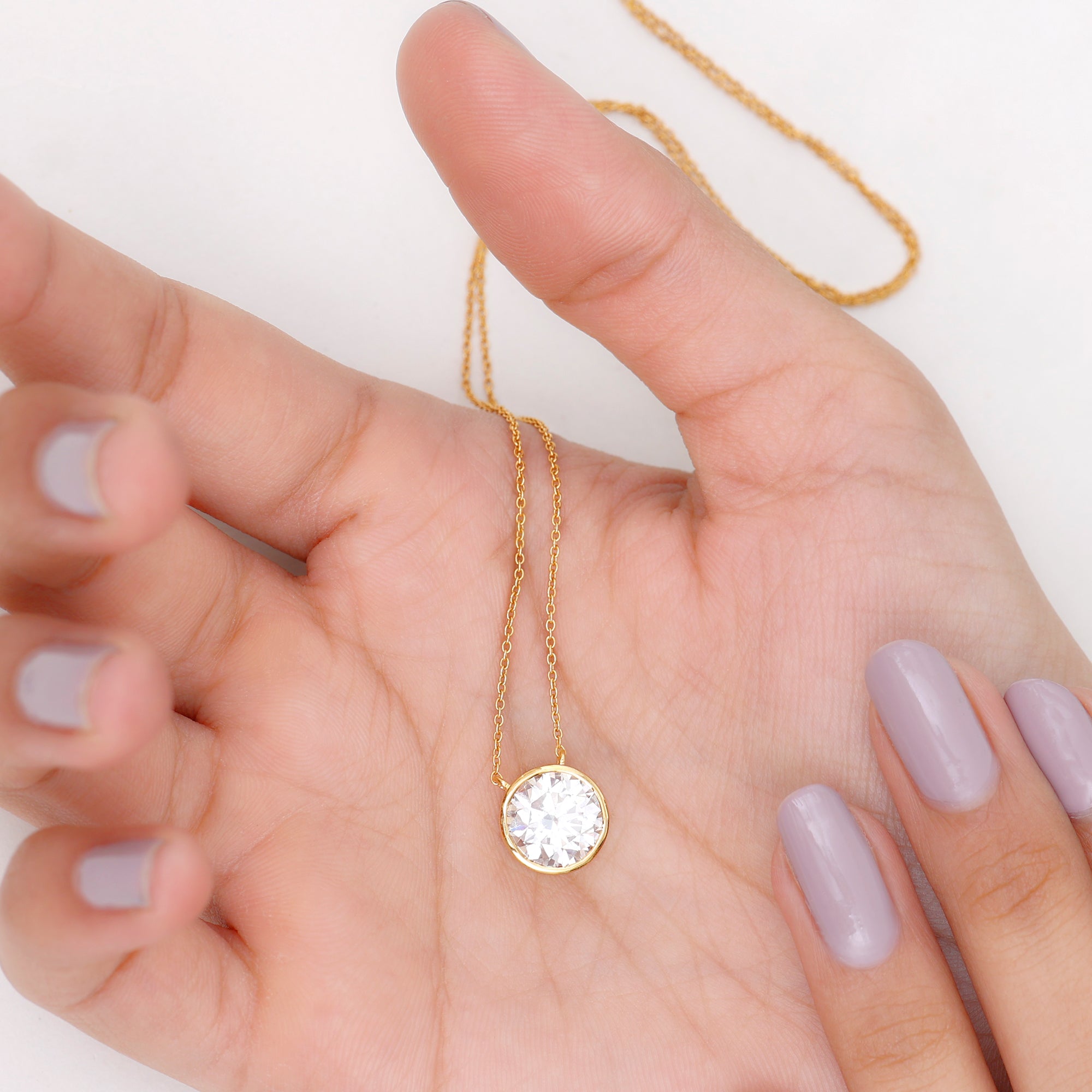 The Solitaire Necklace is embellished with round shape Moissanite Gemstone in Bezel Setting. The Moissanite Pendant can be carried as everyday Jewelry.