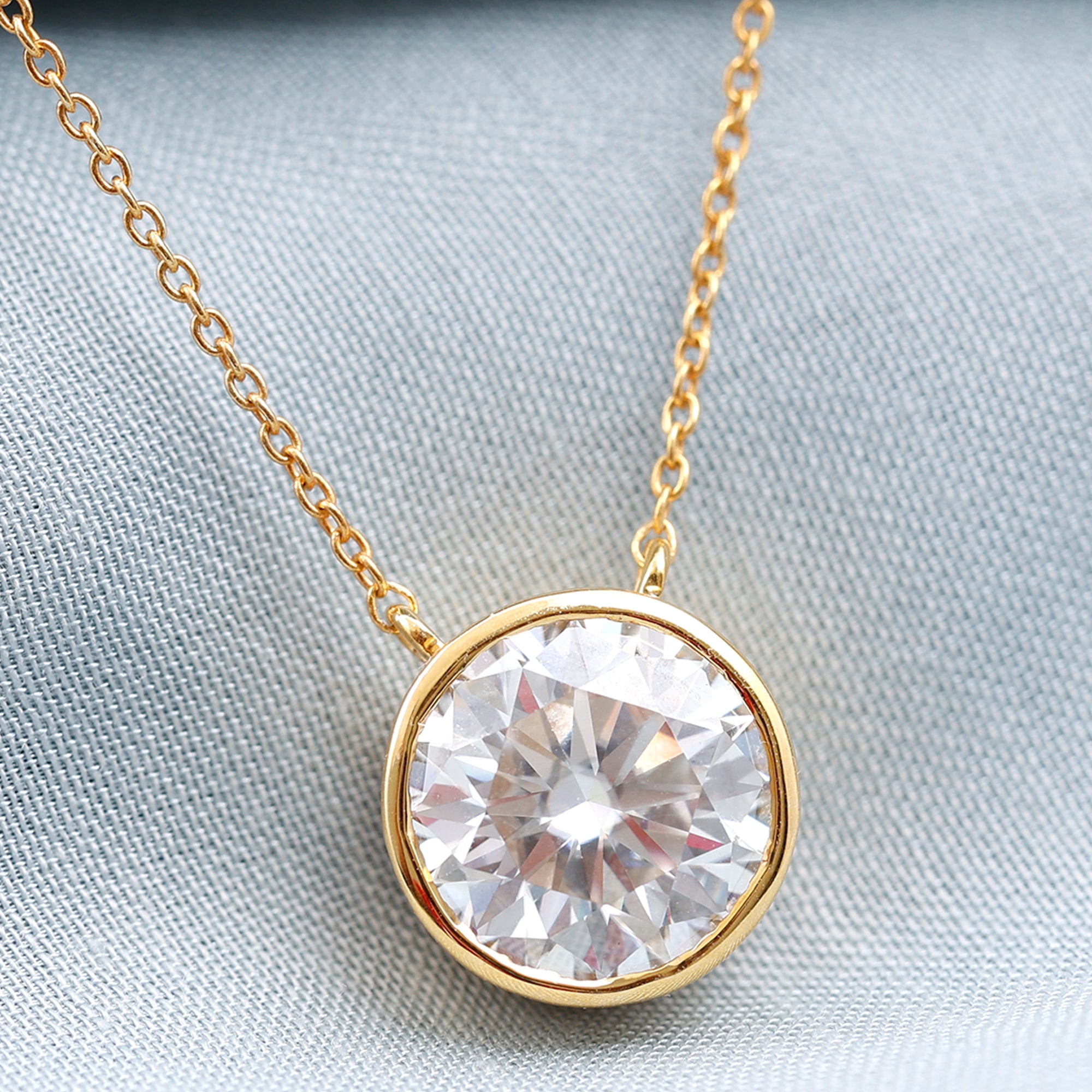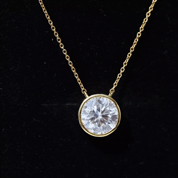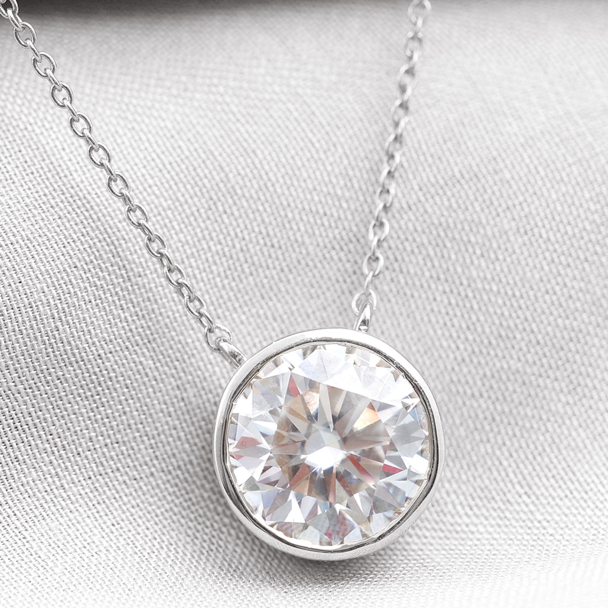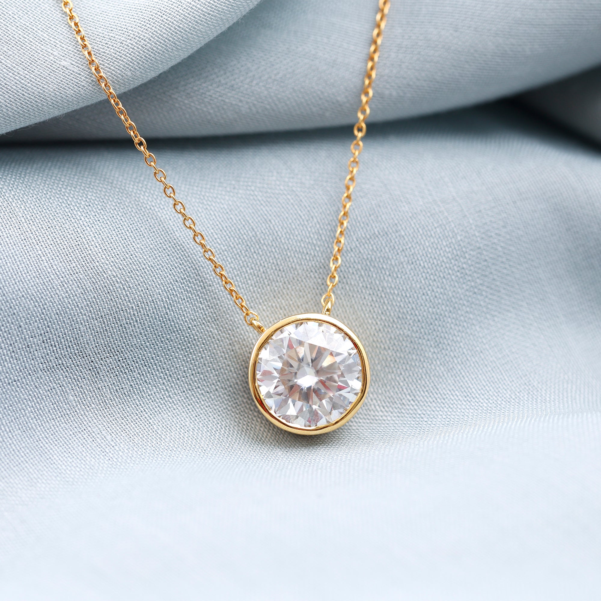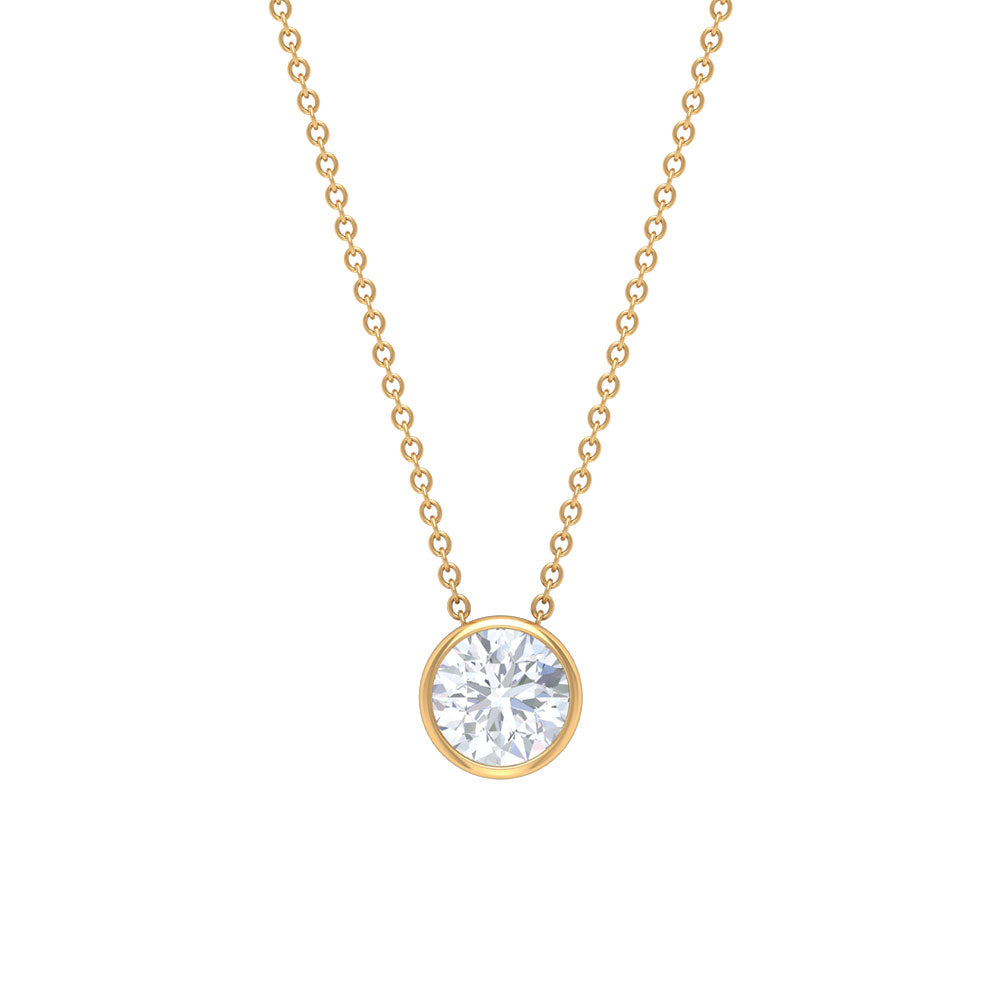 The Solitaire Necklace is embellished with round shape Moissanite Gemstone in Bezel Setting. The Moissanite Pendant can be carried as everyday Jewelry.