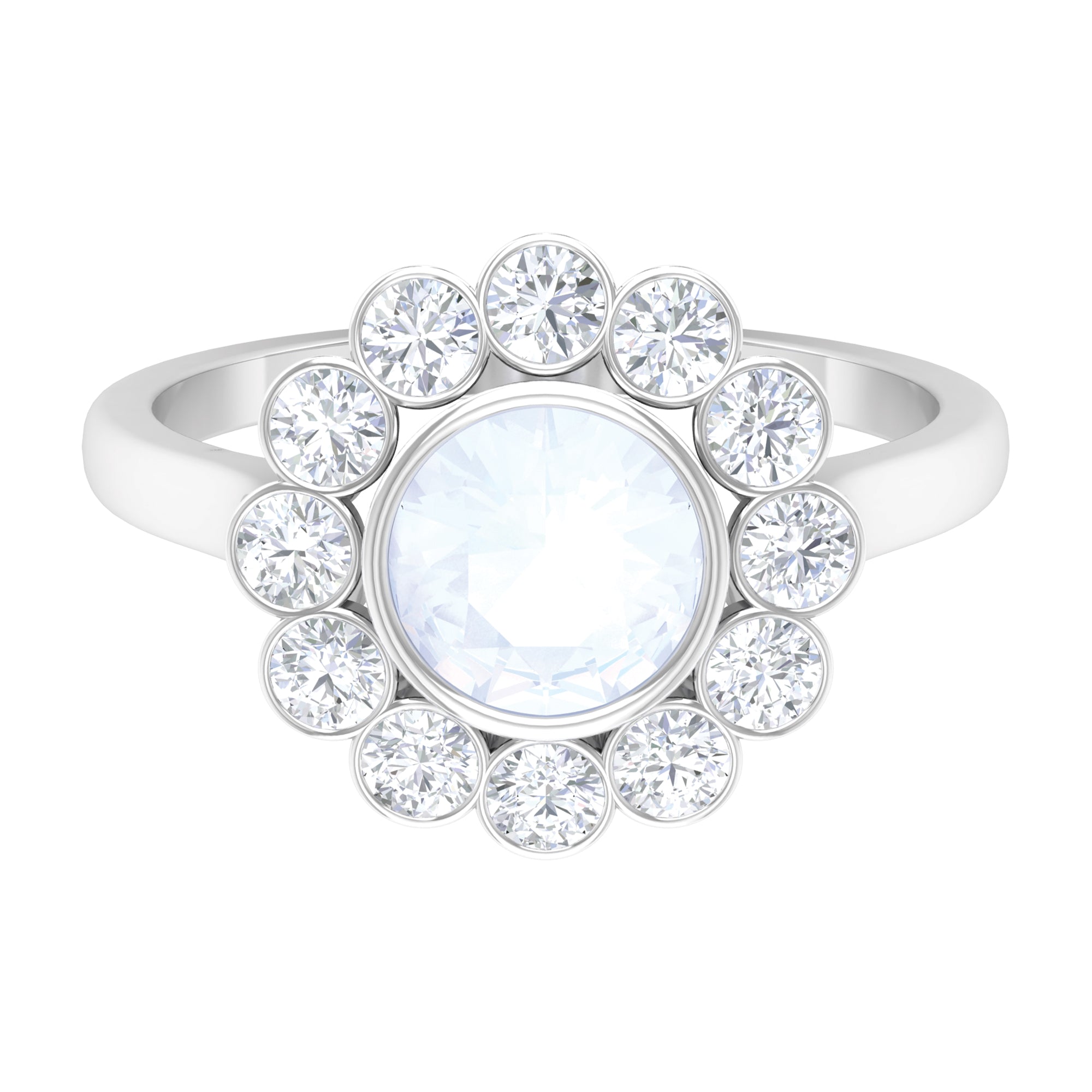 Bezel Set Moonstone Statement Engagement Ring with Diamond Halo