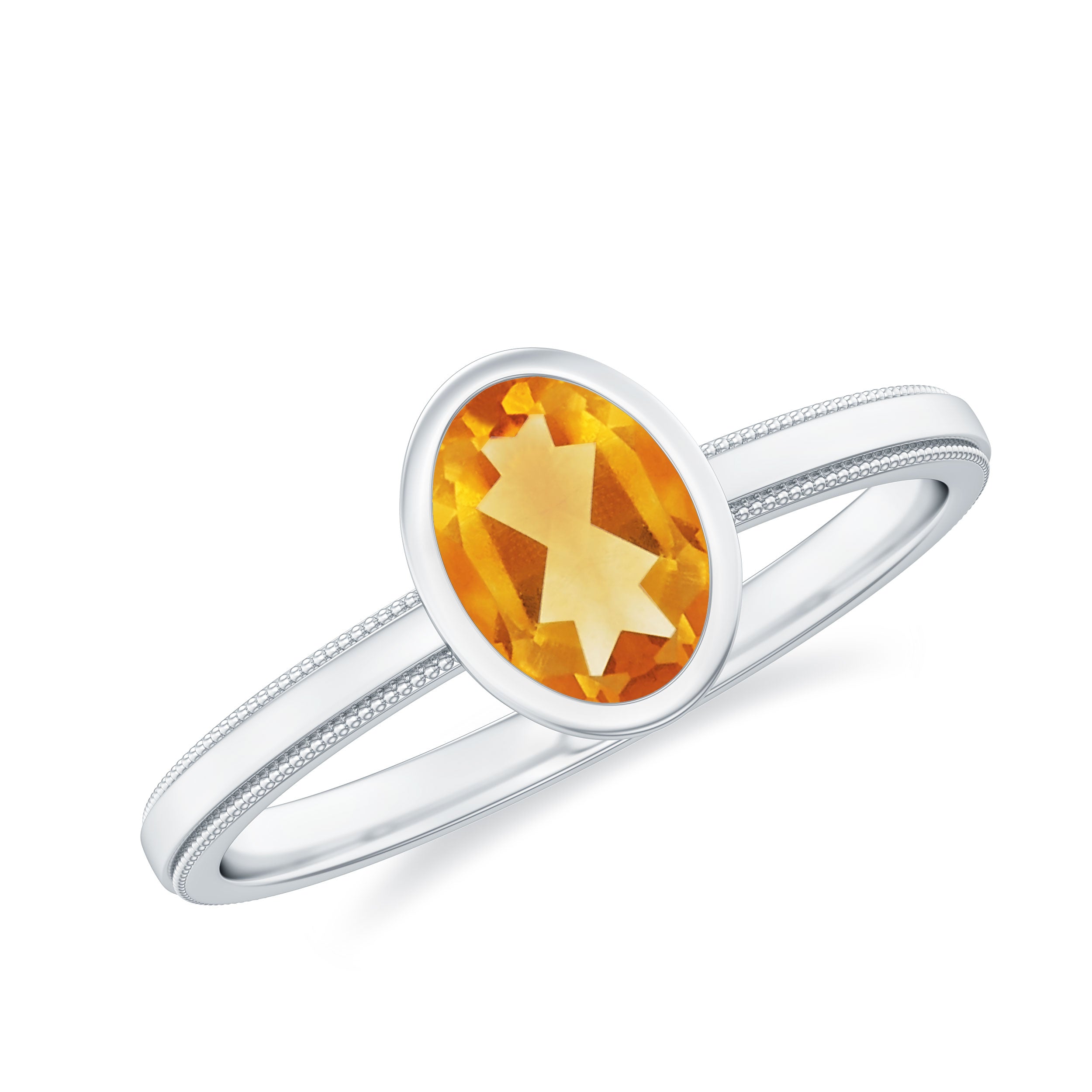 Bezel Set Oval Citrine Solitaire Ring with Beaded Detailing