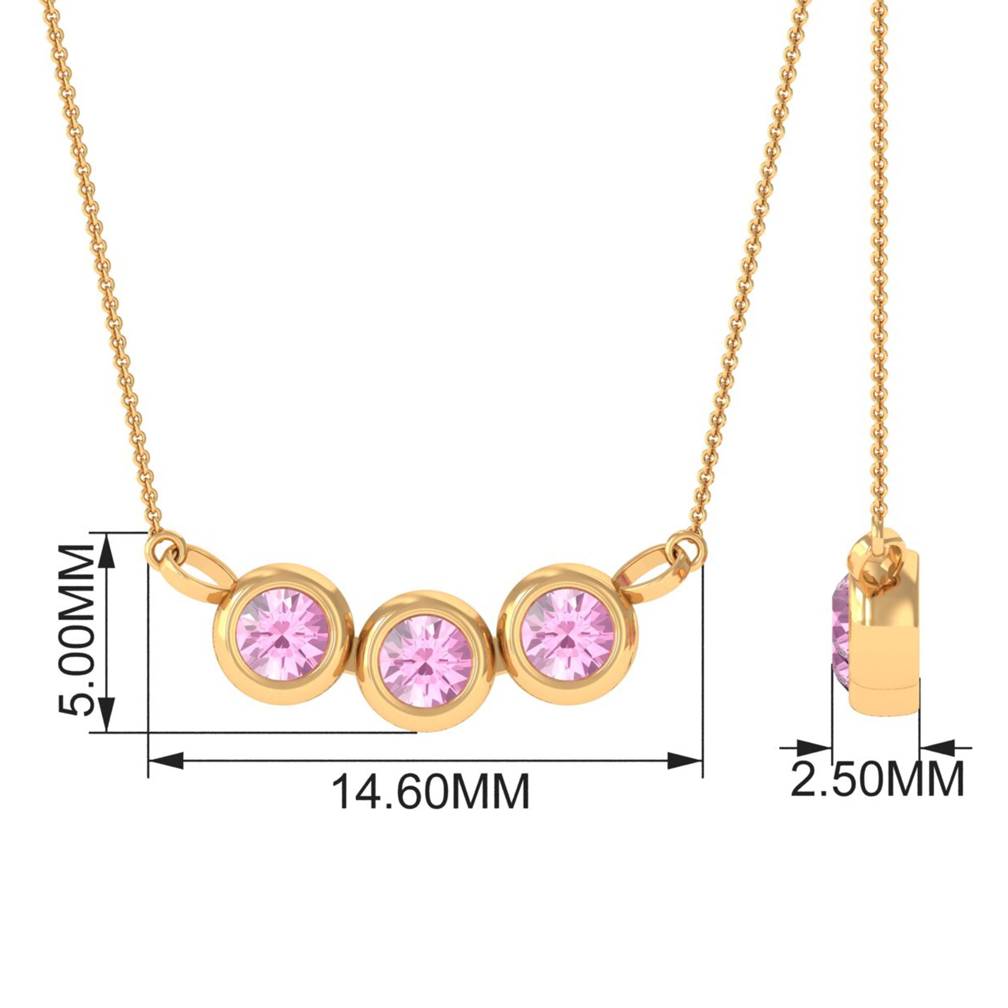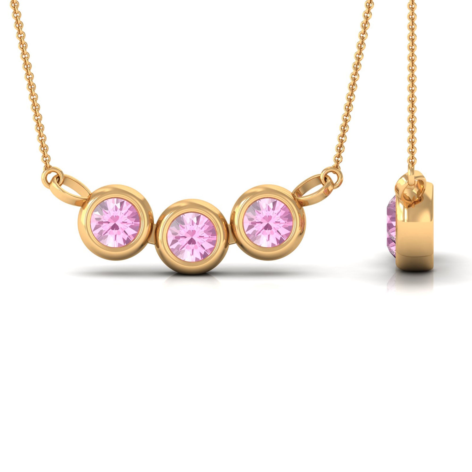 Bezel Set Pink Tourmaline Three Stone Necklace in Gold