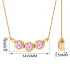 The Pink Tourmaline Necklace I am presenting has a simple design that complements your personality. It showcases Round Cut Pink Tourmaline Gems, which are skillfully placed in Bezel Setting, and is expertly crafted in Solid Gold. This Three Stone Necklace makes for an ideal gift for the special lady in your life.