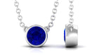 Bezel Set Round Created Blue Sapphire Solitaire Necklace