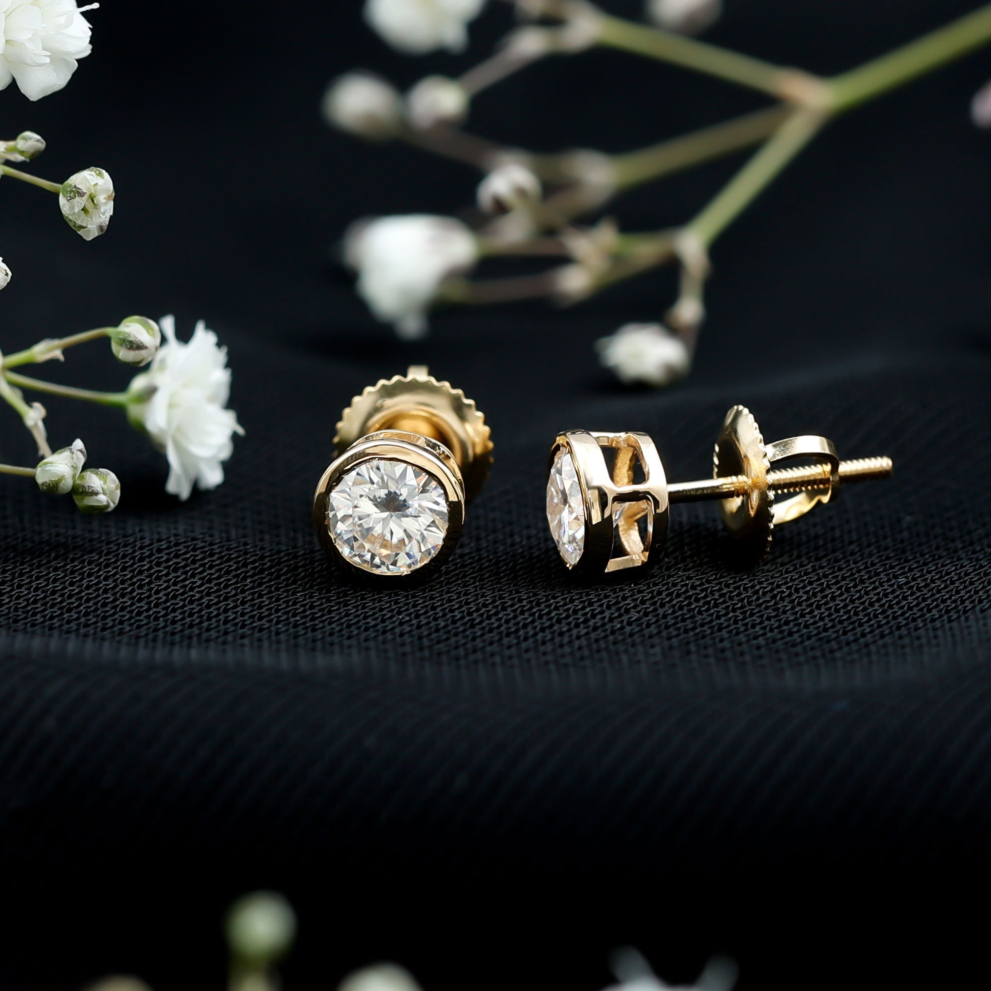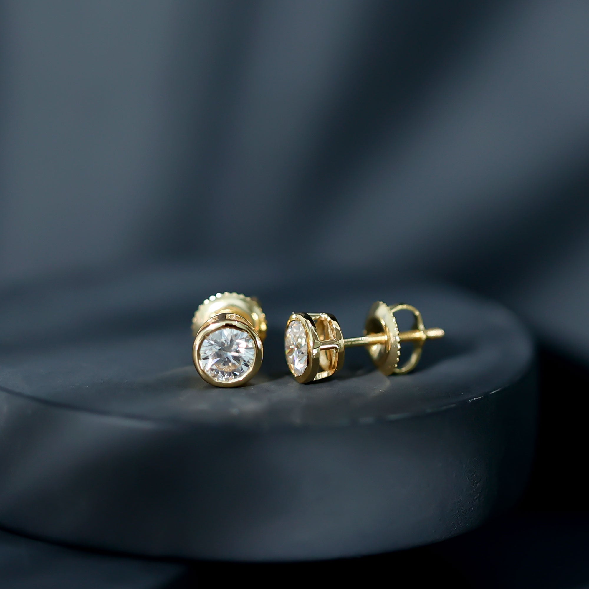 The Everyday Stud Earrings are adorned with the sparkling Brilliant Cut 5 MM Round Shape Moissanite gemstone in the secured Bezel Setting. These Moissanite Stud Earrings are the perfect accessory to complement all the outfits, like casual, office wear, outings with friends, traveling, and many more. These Bezel Set Earrings hold the adorable shine of D-VS1 quality moissanite that adds a layer of extra shine. The simplistic design makes them perfect for both men and women. These will be delivered to you in the classic jewelry box with the certificate of gemstone authentication. The style is modern and timeless, making it easy for anyone to wear and enjoy. These Solitaire Moissanite Earrings also make a thoughtful and practical gift. With their simple design, bright sparkle, and comfortable fit, these Screw Back Earrings are a lovely addition to any jewelry collection, easy to wear, easy to love, and perfect for everyday moments or special occasions.