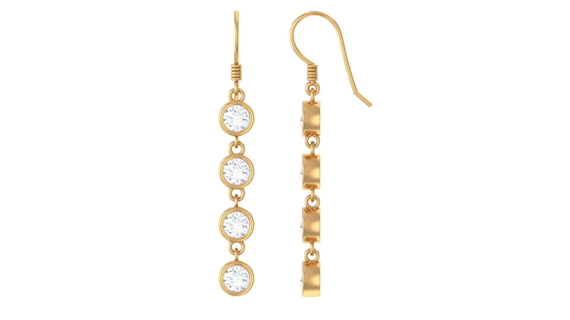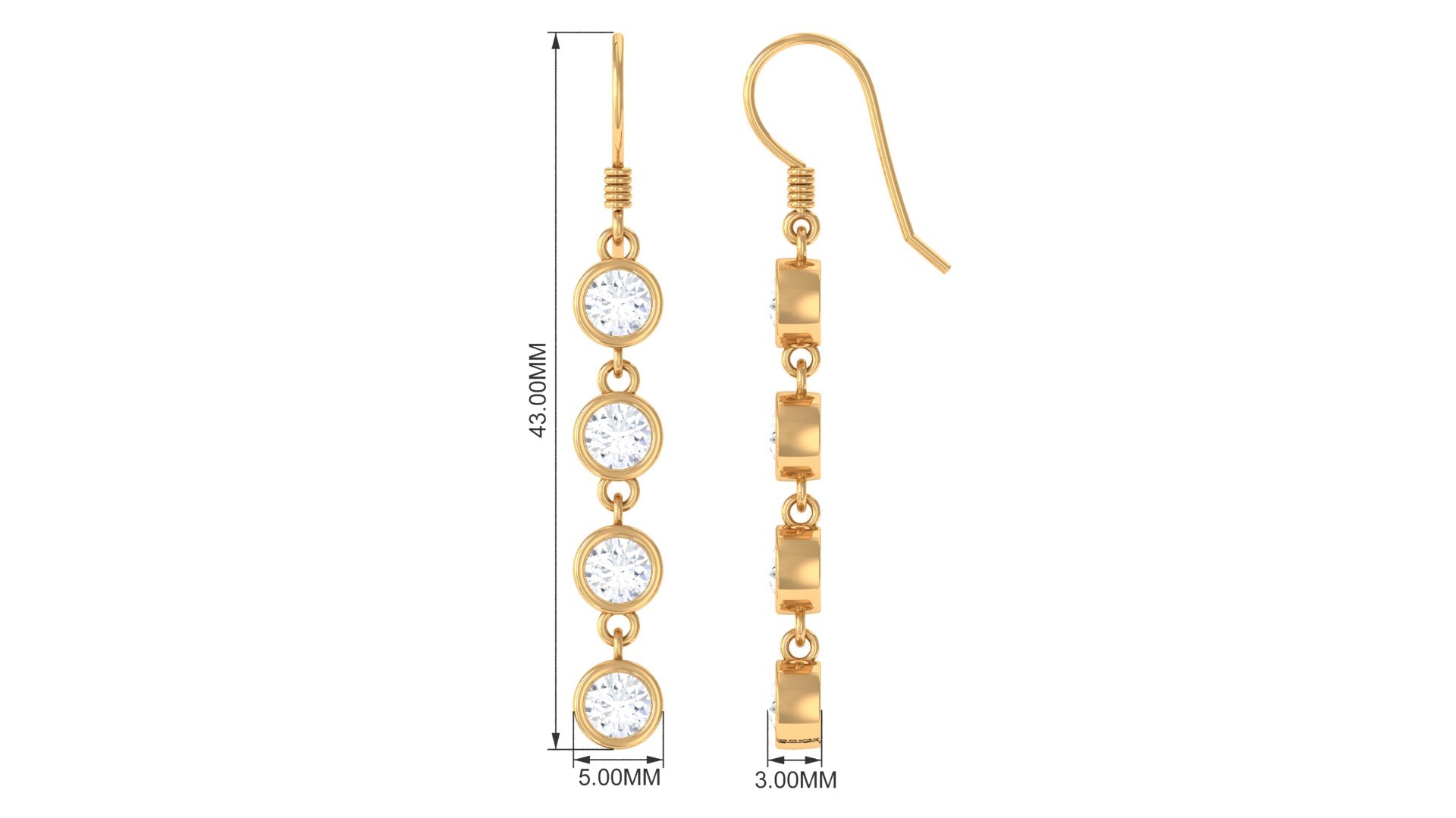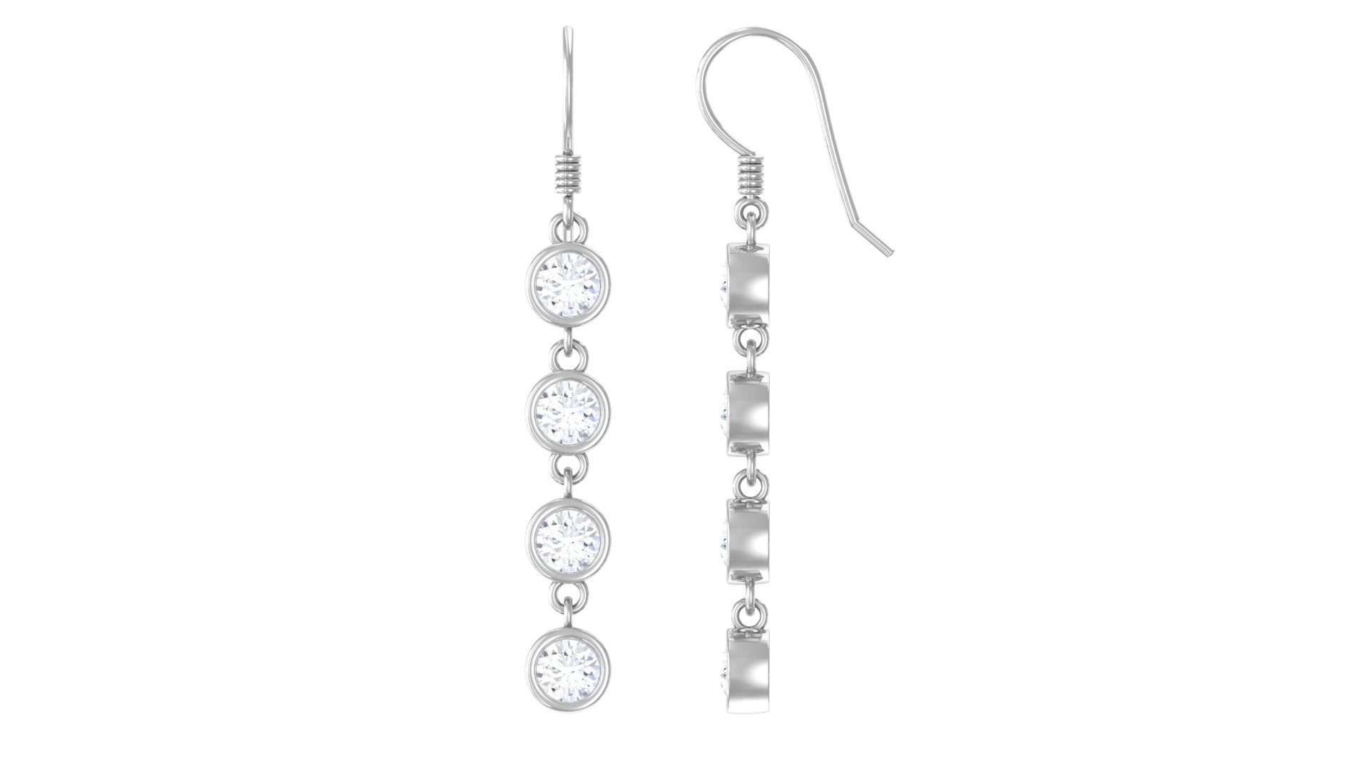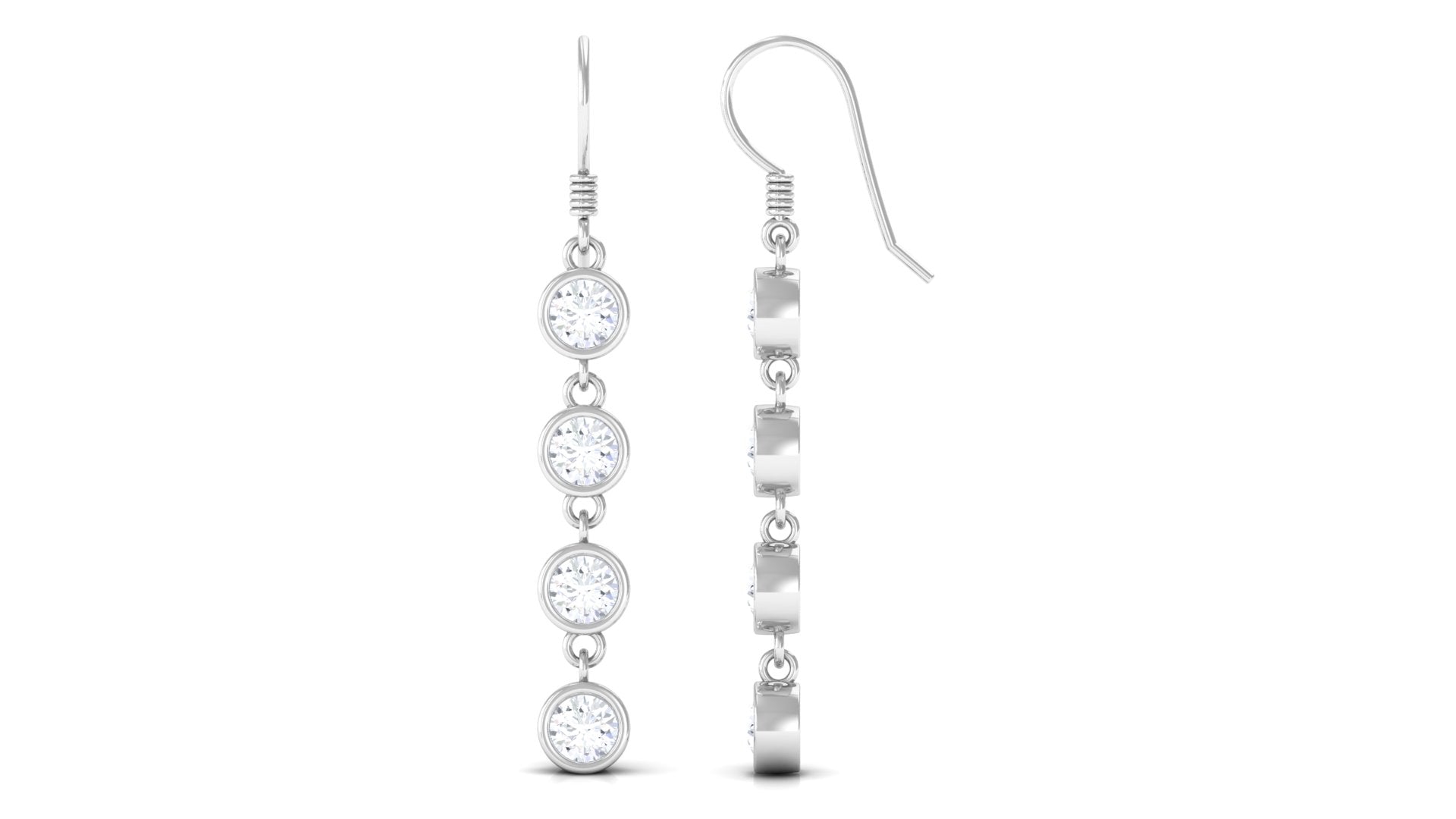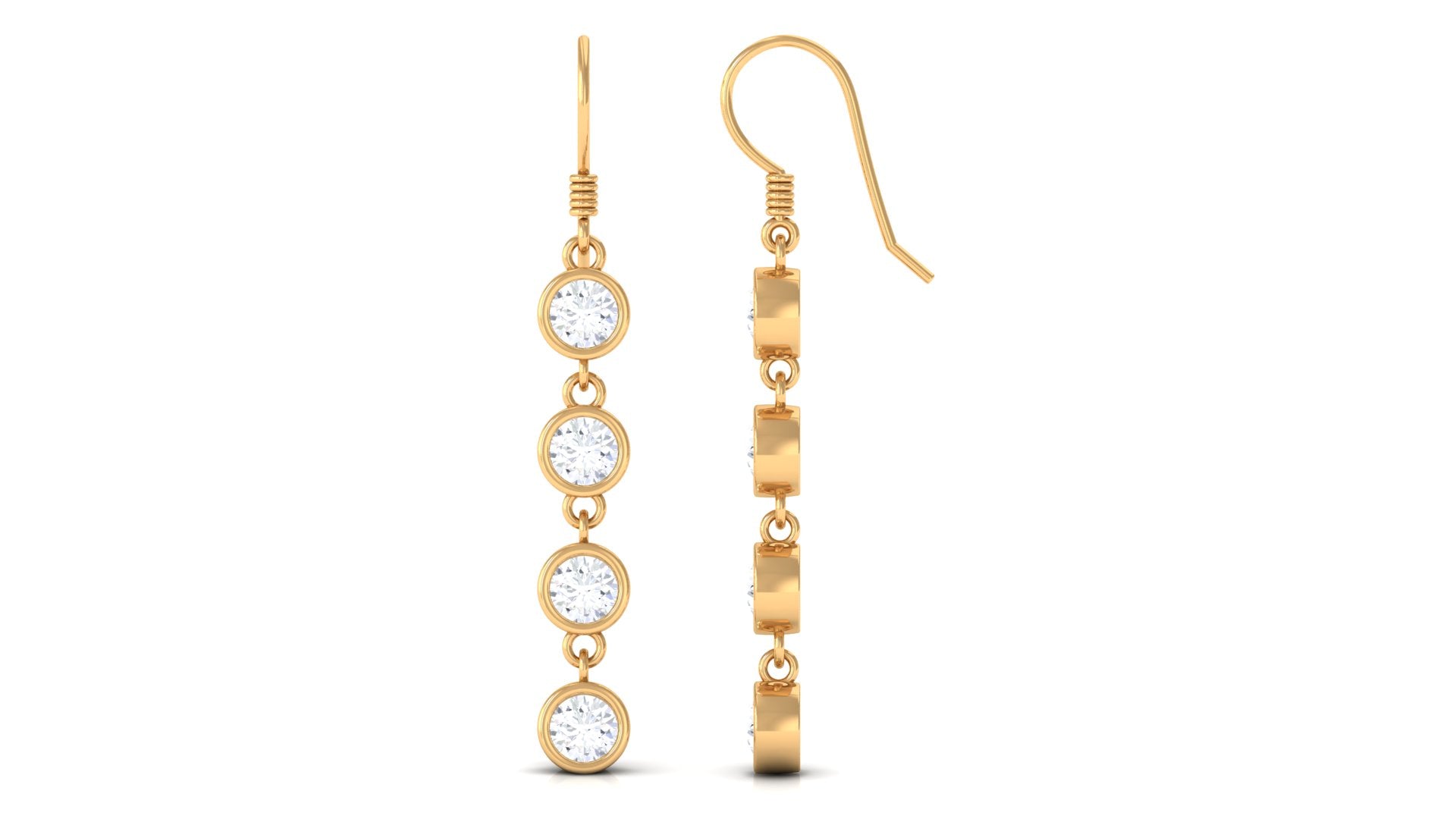 Dress up your ears with these elegant Dangle Earrings as they have a charm that wont disappoint you. Each drop is bejeweled with Round Cut Moissanite secured by Bezel Setting. The Moissanite Earrings secures comfortably with a fish hook closure. Order these Dangle Drop Earrings for your significant other as an anniversary gift and let her dazzle in these on her special occasions.