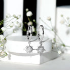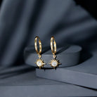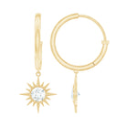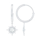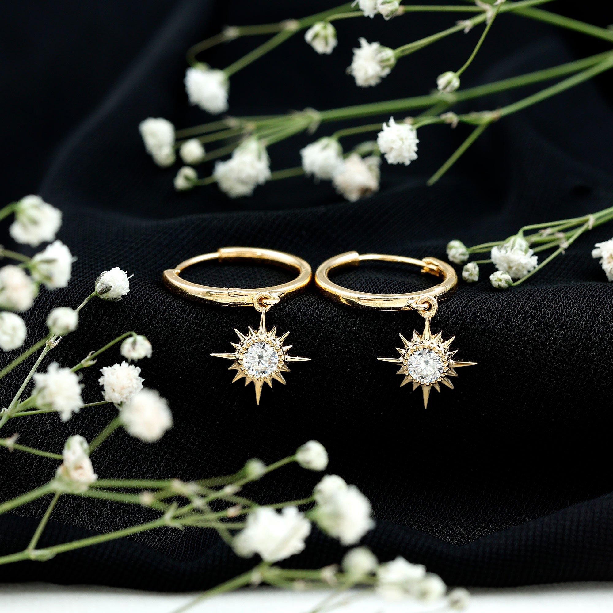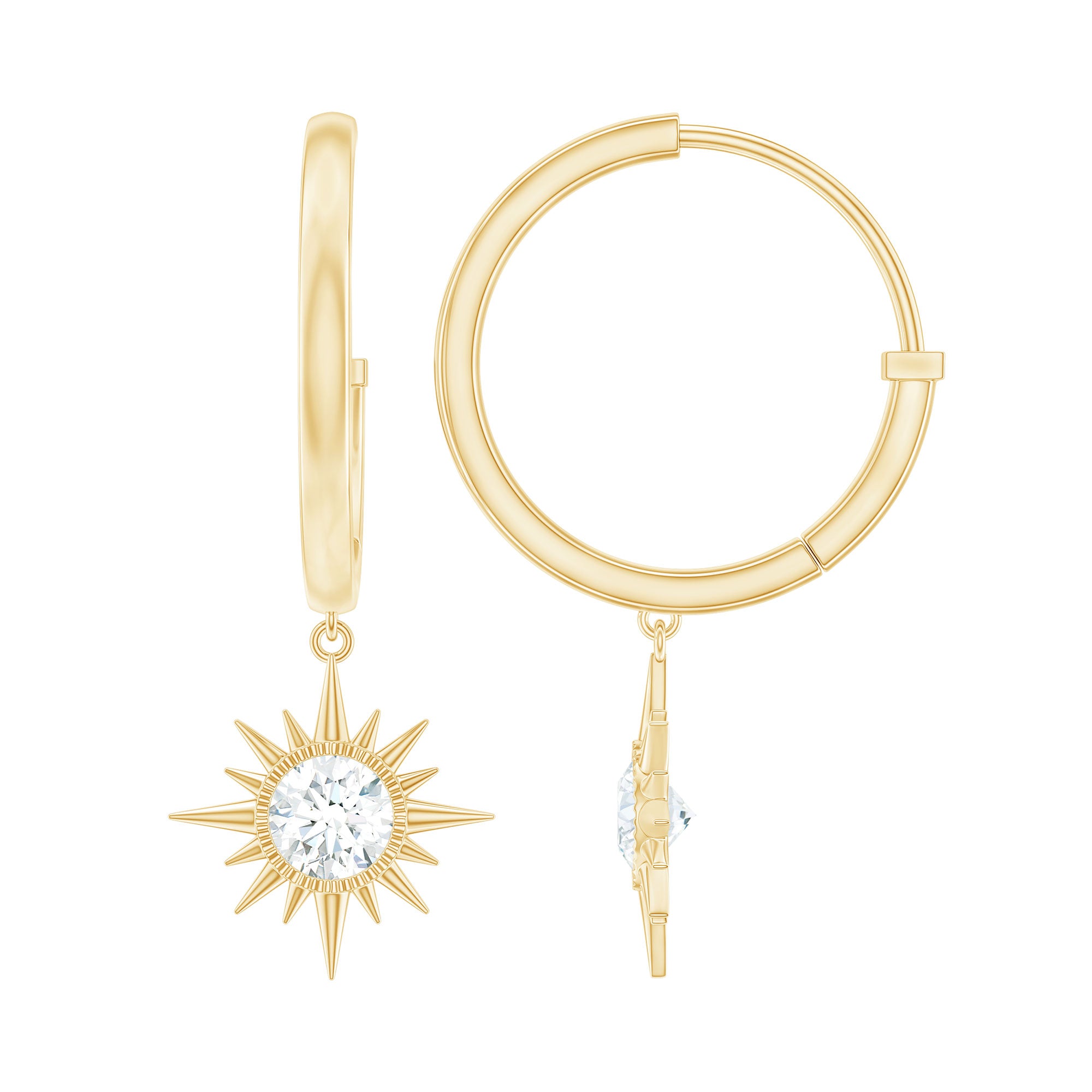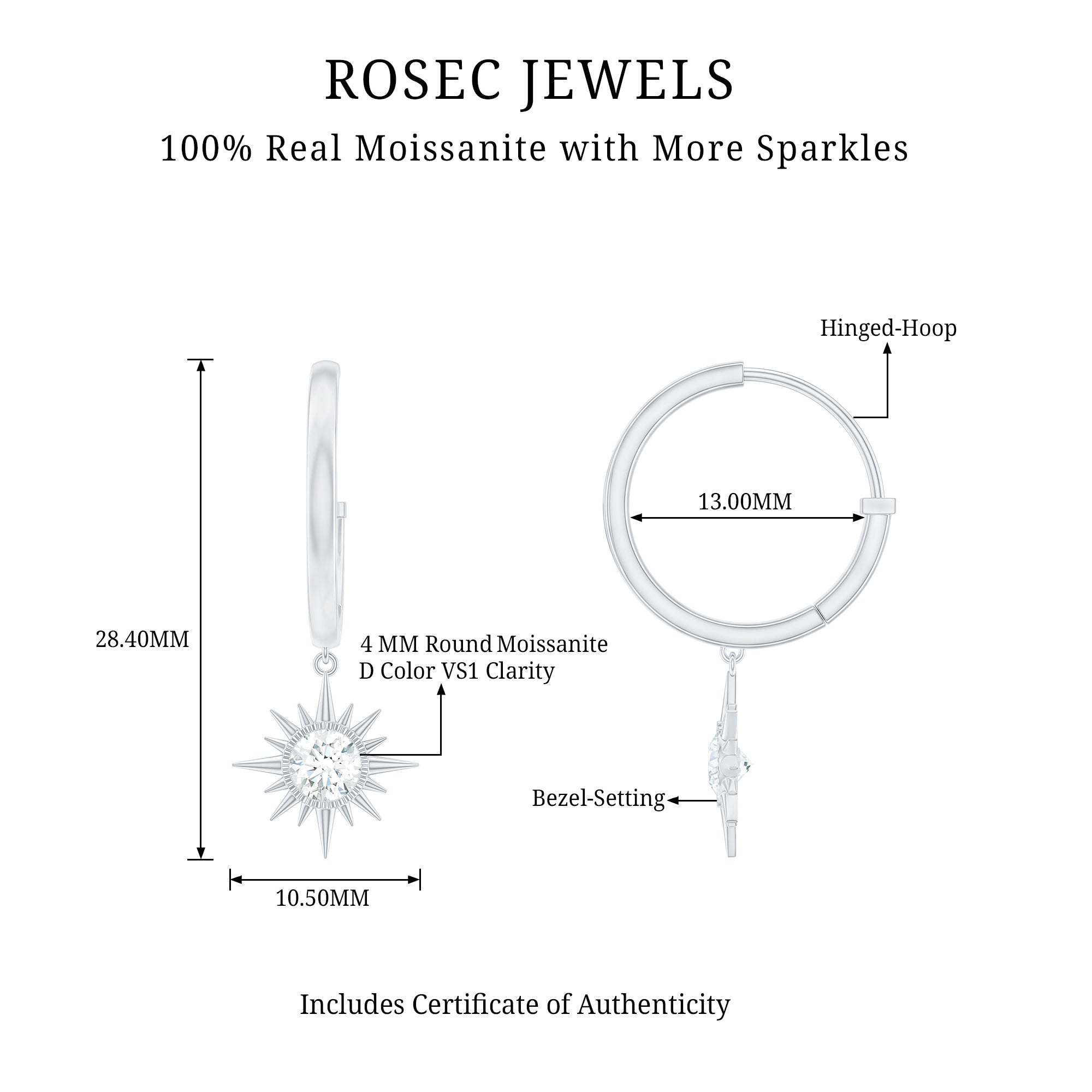 Bezel Set Round Moissanite Sunburst Hoop Drop Earrings
